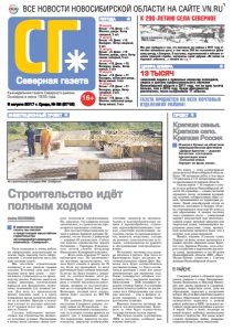 ПОГОДА Северная газета Еженедельная газета Северного района. Основана в июне 1935 года 9 августа 2017 г. Среда, № 32 (8712) 16+ ЦИФРА НОМЕРА 13 ТЫСЯЧ заявлений подано в приемные комиссии колледжев, лицеев и центров профессионального обучения Новосибирской области в 2017 году, что на одну тысячу больше, чем в 2016 году. Среди абитуриентов увеличилось число выпускников 11 классов. ВСЕ НОВОСТИ НОВОСИБИРСКОЙ ОБЛАСТИ НА САЙТЕ VN.RU ГАЗЕТА ПРОДАЁТСЯ ВО ВСЕХ ПОЧТОВЫХ ОТДЕЛЕНИЯХ РАЙОНА! Мы уже сообщали о том, что несколько сел района в 2017 году отмечают юбилейные даты, в том числе 290 лет исполняется районному центру, с.Северное. О выставке, подготовленной к юбилею отделом архивной службы, материалы новой рубрики «Их имена не подлежат забвенью…» читайте на стр. 4 10 августа Ночью: +10. Днем: +17. Облачно, дождь. Ветер северный, 3 м/с 11 августа Ночью: +9. Днем: +13. Пасмурно. Ветер северный, 3 м/с 12 августа Ночью: +9. Днем: +12. Облачно, дождь, гроза. Ветер северо-западный, 5 м/с 13 августа Ночью: +10. Днем: +16. Пасмурно, дождь. Ветер южный, 5 м/с 14 августа Ночью: +13. Днем: +17. Пасмурно, небольшой дождь. Ветер южный, 3 м/с 15 августа Ночью: +10. Днем: +17. Пасмурно, дождь. Ветер западный, 3 м/с 16 августа Ночью: +10. Днем: +16. Облачно, небольшой дождь. Ветер южный, 5 м/с ИНВЕСТИЦИОННЫЙ ПРОЕКТ ПРОЕКТ Крепкая семья. Крепкое село. Крепкая Россия 28 июля в Купино на областном межнациональном фестивале «Доброе братство — дороже богатства» состоялась презентация книги «Сельская семья. Портрет на фоне эпохи». Эта книга — плод коллективного труда жителей Новосибирской области. Более 350 авторских работ, в том числе 179 рисунков и 133 литературные рабо ты школьников из районов области. Основа книги — 36 очерков о семь ях из всех районов Новосибирской об ласти. Её страницы — словно частички огромного пазла, складывая который, мы получим собирательный образ се мей, проживающих на территории ре гиона. Такой своеобразный взгляд на прошлое, настоящее и будущее облас ти, отмечающей в этом году 80 летие со дня образования. А каждая частичка этого семейного пазла — уникальный портрет многодетной или многопоко ленной семьи; трудовой династии или творческой семьи, занимающейся на родными ремеслами; семьи, прошед шей испытание временем более чем в полувек, или семьи приемной. Выпуск издания «Сельская семья. Портрет на фоне эпохи» реализуется в рамках проекта «Крепкая семья. Креп кое село. Крепкая Россия», цель кото рого содействие в укреплении институ та семьи, проводимого в год 80 летия Новосибирской области АНО «Масс Медиа Центр» совместно с Союзом женщин Новосибирской области. В РАЙОНЕ Северный район в сборнике предс тавлен очерком о семье Циплаковых. Галина Васильевна и Николай Ивано вич всю жизнь прожили в Северном, трудились, вырастили детей, дали им образование, помогают в воспитании внуков. Их дети ВиталийНиколаевич и Лариса Николаевна после окончания мединститута вернулись в родной район, работают в ЦРБ, заслужили ав торитет среди жителей района и коллег. А внуки, Олег и Анна, несмотря на юный возраст, добились значительных успехов в творчестве. Эта семья может служить примером любви, уважения, взаимопомощи и связи поколений. К 290-ЛЕТИЮ СЕЛА СЕВЕРНОЕ Алёна МАТВЕЕВА В майском выпуске газеты мы писали о предстоящем масштабном строительстве лесоперерабатывающего комплекса «Северный». Тогда подходила к концу работа по офо
