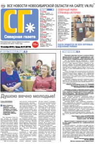 ПОГОДА Северная газета Åæåíåäåëüíàÿ ãàçåòà Ñåâåðíîãî ðàéîíà. Îñíîâàíà 20 èþëÿ 1935 ãîäà 10 октября 2018 г. Среда, № 41 (8773) 16+ ВСЕ НОВОСТИ НОВОСИБИРСКОЙ ОБЛАСТИ НА САЙТЕ VN.RU ГАЗЕТА ПРОДАЁТСЯ ВО ВСЕХ ПОЧТОВЫХ ОТДЕЛЕНИЯХ РАЙОНА! 11 октября Ночью: +3. Днем: +7. Пасмурно. Ветер южный, 7 м/с 12 октября Ночью: +5. Днем: +10. Пасмурно, небольшой дождь. Ветер южный, 7 м/с 13 октября Ночью: +3. Днем: +1. Пасмурно, небольшой снег. Ветер западный, 4 м/с 14 октября Ночью: -2. Днем: +2. Пасмурно. Ветер южный, 3 м/с 15 октября Ночью: -2. Днем: +1. Малооблачно. Ветер южный, 2 м/с 16 октября Ночью: -3. Днем: +1. малооблачно. Ветер юго-западный, 4 м/с 17 октября Ночью: -1. Днем: 0. Пасмурно, снег. Ветер западный, 4 м/с ДЕКАДА ПОЖИЛЫХ ЛЮДЕЙ СЕВЕРНЫЙ РАЙОН: СТРАНИЦЫ ИСТОРИИ Очередные VII районные краеведческие чтения «Северный район: страницы истории», посвященные 85-летию Северного района, прошли 5 октября в центральной библиотеке Северной ЦБС. О том, каких результатов добились краеведы, педагоги, работники библиотек, учащиеся школ в ходе исследовательских работ, читайте на стр. 4 Алёна МАТВЕЕВА День пожилого человека — это добрый и светлый праздник, в который мы окружаем особым вниманием наших родителей, бабушек и дедушек. Этот праздник очень ва жен сегодня, он позволяет привлечь внимание к пробле мам пожилых людей. На про тяжении всей декады мудрых во всех поселениях района проходило множество мероп риятий, на которых главными и почетными гостями были наши земляки, вступившие в самую мудрую и золотую пору своей жизни. В день открытия декады в КДЦ собрались все, кого объ единяет 1 октября. Праздник начался с поздравления главы Северного района Сергея Владимировича Коростелева: — Мы все сегодня собра лись для того, чтобы отметить замечательный праздник — Международный день пожи лых людей. В нашем понима нии пожилой человек — это человек зрелого возраста, ко торый зачастую прошел труд ный жизненный и трудовой путь. Я поздравляю вас с этим праздником, желаю всем здо ровья, благополучия, любви ваших близких, успехов. За активное участие в жиз ни Северного района почет ными грамотами и благодар ностями отмечены Надежда Владимировна Крестьянова, Раиса Ивановна Никулина, Тамара Владимирова Голубе ва, Нина Евгеньевна Лука шок, Надежда Иосифовна Шеина, Множество пожеланий услышали в свой адрес приглашенные. Им дарили свои музыкальные поздрав ления творческие коллек тивы района. А затем состоялась тради ционная творческая встреча клубов общения мудрых «В кругу друзей у самовара». В этом году тема встречи была посвящена музыке, звучав шей в самых знаменитых и любимых нами телевизион ных сериалах. Старт хороше му настроению дали участни ки клуба общения «Золотой возраст» села Бергуль. Своим озорным и веселым творчес ким номером, исполнив му зыкальную композицию «Ба бушки старушки» в очеред ной раз доказали, что и на зас луженном отдыхе жизнь мо жет быть активной и насы щенной. Всего своими музы кальными номерами порадо вали 14 клубов общения. Встреча прошла в самой теплой, доброй обстановке. Каждое выступление встреча ли аплодисментами, напевали знакомые нам всем песни, а некоторые не могли удер жаться и пускались в пляс, кружась в вальсе под люби мые мелодии. А потом за чаш кой ароматного чая еще дол го общались, и никому не хо телось уезжать домой. Уважаемые работники сельского хозяйства Новоси бирской области! 
