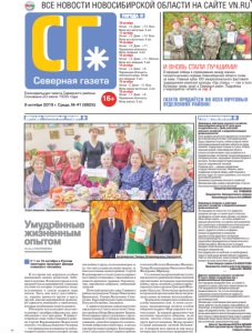ВСЕ НОВОСТИ НОВОСИБИРСКОЙ ОБЛАСТИ НА САЙТЕ VN.RU 9 октября 2019 г. Среда, № 41 (8825) 16+ Еженедельная газета Северного района. Основана 20 июля 1935 года ГАЗЕТА ПРОДАЁТСЯ ВО ВСЕХ ПОЧТОВЫХ ОТДЕЛЕНИЯХ РАЙОНА! ПОГОДА Северная газета 10 октября Ночью: +6. Днем: +14. Ясно. Ветер юго-восточный, 5 м/с 11 октября Ночью: +5. Днем: +14. Ясно. Ветер юго-восточный, 4 м/с 12 октября Ночью: +4. Днем: +11. Переменная облачность. Ветер западный, 4 м/с 13 октября Ночью: +5. Днем: +11. Облачно. Ветер юго-западный, 5 м/с 14 октября Ночью: +3. Днем: +9. Переменная облачность, небольшой дождь. Ветер юго-западный, 4 м/с 15 октября Ночью: -2. Днем: +5. Ясно. Ветер северо-восточный, 3 м/с 16 октября Ночью: +1. Днем: +9. Переменная облачность. Ветер южный, 5 м/с И ВНОВЬ СТАЛИ ЛУЧШИМИ! Очередная победа в соревновании между военнопатриотическими клубами Новосибирской области снова за нами. Главный кубок XXV межрегионального фестиваля традиционной воинской культуры «Где стоишь — там и поле Куликово» вновь уехал в Северный район. Подробнее о мероприятии читайте на стр. 5 ДЕКАДА ПОЖИЛЫХ ЛЮДЕЙ Алёна МАТВЕЕВА JJС 1 по 10 октября в России ежегодно проходит Декада пожилого человека. В это время мы окружаем особым вниманием наших родителей, бабушеки дедушек. Вкаждом городе и селе проходитмассамероприятий, главными гостями на которых становятся люди, вступившие в самую мудрую пору жизни. Здесь они могут расслабиться, хорошо провести время в кругу друзей, многие мероприятия позволяют привлечь внимание к проблемам, которые необходимо помочь решить. Вбольшомзале культурно-досуговогоцентра 1 октября собрались все, кого объединяет этот праздник. В приветственном слове глава Северного района Сергей Владимирович Коростелев отметил, чтоДекада пожилого человека —это прекрасная возможность поблагодарить наших отцовиматерей, ветера Награждение Тамары Владимировны Никитиной Умудрённые жизненным опытом Клуб общения «Вдохновение» (с. Остяцк) ПОЗДРАВЛЕНИЯ Уважаемые работники сельского хозяйства Новосибирской области! От всей души поздравляем вас с Днём работника сельского хозяйства и перерабатывающей промышленности! Свой профессиональный праздник вы встречаете достойными результатами. Благодаря вашему труду, преданности делу, любви к родной земле агропромышленный комплекс области по праву занимает лидирующие позиции в стране. Собран хороший урожай, Новосибирская область полностью обеспечивает свои потребности в продовольствии, поставляет сельхозпродукцию в соседние регионы, наращивает объемы аграрного экспорта. Активно ведется переоснащение отрасли современной техникой. Развитие села—важное направление государственной политики. Уверены, меры поддержки аграрной сферы, действующие в регионе, будут не только сохранены, но и получат дальнейшее развитие. Уважаемые труженики сельского хозяйства! Желаем вам мира, добра и процветания. Счастья, благополучия вам и вашим близким! Губернатор Новосибирской области А.А. ТРАВНИКОВ Председатель Законодательного собрания Новосибирской области А.И. ШИМКИВ *** Уважаемые ветераны и работники сельского хозяйства и перерабатывающей промышленности! Это праздник не только тех, кто трудится в аграрном секторе, но также просто сельских тружеников, кто всюжизнь прожил «на земле». Наша общая задача—не только добиваться хороших результатов, но и делать всё возможное для социального и м