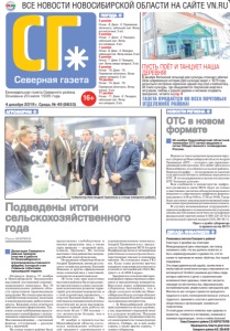 ВСЕ НОВОСТИ НОВОСИБИРСКОЙ ОБЛАСТИ НА САЙТЕ VN.RU 4 декабря 2019 г. Среда, № 49 (8833) 16+ Еженедельная газета Северного района. Основана 20 июля 1935 года ГАЗЕТА ПРОДАЁТСЯ ВО ВСЕХ ПОЧТОВЫХ ОТДЕЛЕНИЯХ РАЙОНА! Подведены итоги сельскохозяйственного года Раиса АКИЛИНА JJДелегация Северного района приняла участие в работе IV Новосибирского агропродовольственного форума, который стал главным событием прошедшей недели. Открылся форум 27 ноября в Новосибирском Экспоцентре выставкой достижений агропромышленного комплекса. Все 30 муниципальных районов области представили производимую продукцию. На стендах красовались хлебобулочные изделия, молочная имясная продукция, рыба имногое другое. Каждый стенд отличался оригинальнымоформлением. Так, наши соседи-куйбышевцыпредставилимакет «умнойфермы» с использованиемсовременных технологий, Маслянинский район—сметанный фонтан, а Сузунский — русскую печь с выпечкой. На стенде нашего района была представлена хлебобулочная и мясная продукция, мед, а также дары природы — кедровый орех, клюква, брусника. По итогам выставки стенд района был награжденМалой золотой медалью. По традиции губернатор области АндрейТравников, министр сельского хозяйства региона Евгений Лещенко и другие официальные лица ознакомились с выставкой, осмотрели каждый павильон. «В этом году при подготовке выставки районам было предложено презентовать в своих экспозициях комплексное развитие территорий, реализацию нацпроектов, и с этой задачей они справились, — отметил Евгений Лещенко. —Мы наблюдаем повышенный интерес посетителей ко всем выставкам, только в первый день работы их посетили более 3 500 человек — это значительно больше, чем в прошлом году». 29 ноября в правительстве Новосибирской области состоялось награждение победителей трудового соревнования в агропромышленном комплексе. Андрей Травников и и.о. председателя Заксобрания НСО Андрей Панфёров вручили отличившимся работникам сельхозотрасли благодарственные письма и денежные премии. На площадке перед ГКЗ им. Каца глава региона вручил аграриям-передовикам комплекты ключей от автомобилей «УАЗ-Патриот» и «LADA Largus». Завершился сельскохозяйственныйфорум торжественным собранием и праздничным концертом. Выступая перед собравшимися, губернатор подчеркнул, что в сфере сельского хозяйства Новосибирская область сегодня обладает среди регионов России большим и заслуженным авторитетом. — К Новосибирской области прислушиваются на всех уровнях, у нас перенимают передовой опыт и в сельском хозяйстве. Плодами своего труда вы, труженики отрасли, сегодня кормите не только родную область, Сибирь, но и всю нашу страну, а также другие страны, — заявил губернатор. ПОГОДА Северная газета 5 декабря Ночью: -8. Днем: -2. Переменная облачность, небольшой снег. Ветер юго-восточный, 5 м/с 6 декабря Ночью: -7. Днем: -2. Пасмурно, небольшой снег. Ветер юго-западный, 4 м/с 7 декабря Ночью: -8. Днем: -4. Пасмурно, небольшой снег. Ветер южный, 6 м/с 8 декабря Ночью: -7. Днем: 0. Пасмурно, снег. Ветер северо-западный, 9 м/с 9 декабря Ночью: -18. Днем: -10. Переменная облачность. Ветер северо-западный, 6 м/с 10 декабря Ночью: -14. Днем: -10. Переменная облачность. Ветер южный, 4 м/с 11 декабря Ночью: -11. Днем: -6. Пасмурно, небольшой снег. Ветер юго-западный, 9 м/с ПУСТЬ ПОЁТ И ТАНЦУЕТ НАША ДЕРЕВНЯ! В декабре Витинский сельский дом культу