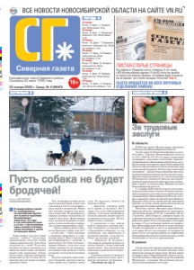 CMYK CMYK ВСЕ НОВОСТИ НОВОСИБИРСКОЙ ОБЛАСТИ НА САЙТЕ VN.RU 22 января 2020 г. Среда, № 4 (8840) 16+ Еженедельная газета Северного района. Основана 20 июля 1935 года ГАЗЕТА ПРОДАЁТСЯ ВО ВСЕХ ПОЧТОВЫХ ОТДЕЛЕНИЯХ РАЙОНА! ПОГОДА Северная газета 23 января Ночью: -8. Днем: -3. Пасмурно, снег. Ветер южный, 8 м/с 24 января Ночью: -6. Днем: -1. Переменная облачность, снег. Ветер южный, 7 м/с 25 января Ночью: -10. Днем: -7. Переменная облачность, небольшой снег. Ветер юго-западный, 4 м/с 26 января Ночью: -11. Днем: -8. Пасмурно, небольшой снег. Ветер юго-западный, 6 м/с 27 января Ночью: -10. Днем: -6. Пасмурно, небольшой снег. Ветер юго-западный, 5 м/с 28 января Ночью: -5. Днем: -8. Пасмурно, небольшой снег. Ветер южный, 7 м/с 29 января Ночью: -12. Днем: -3. Пасмурно, снег. Ветер юго-западный, 7 м/с ЛИСТАЯ СТАРЫЕ СТРАНИЦЫ Эта рубрика в «Северной газете» появилась 5 лет назад, к 80-летнему юбилею районки. В год 85-летия мы решили ее сделать регулярной. Думаем, что рубрика будет интересна как ветеранам, так и более молодым читателям. Стр. 5 АКТУАЛЬНО НОВОСТИ РЕГИОНА За трудовые заслуги В области В 2019 году звание «Ветеран труда» присвоено 2504 жителям Новосибирской области. За счет средств областного бюджета в соответствии с Законом Новосибирской области от 29.12.2004 № 253-ОЗ «О мерах социальной поддержки отдельных категорий граждан, проживающих в Новосибирской области» ветеранам труда и ветеранам труда Новосибирской области обеспечивается предоставление мер социальной поддержки. В числе мер социальной поддержки – ежемесячные денежные выплаты; компенсации расходов на оплату жилого помещения и коммунальных услуг; оплата в размере 50 процентов стоимости проезда железнодорожным транспортом в пригородном сообщении в сроки, установленные Правительством Новосибирской области. С 1 января 2020 года вступили в силу изменения регионального закона «О мерах социальной поддержки отдельных категорий граждан, проживающих в Новосибирской области», которые сохраняют право ветеранов труда Новосибирской области на ежемесячную денежную выплату в случае смены места жительства на территории Российской Федерации. Почетное звание «Ветеран труда Новосибирской области» присваивается гражданам, достигшим возраста 55 лет у женщин, 60 лет у мужчин, либо возраста, дающего право на страховую пенсию по старости, и имеющим стаж работы не менее 35 лет для женщин, из которых не менее 15 лет составляет работа на территории Новосибирской области и (или) военная служба независимо от места ее прохождения, и не менее 40 лет для мужчин, из которых не менее 20 лет составляет работа на территории Новосибирской области и (или) военная служба независимо от места ее прохождения. В районе Среди жителей Северного района в прошедшем году стало на 62 человека больше, кому присвоено звание ветерана труда. Из них звание ветерана труда Новосибирской области получили 56 человек, а Ветерана труда Российской Федерации – 6 человек. Все ветераны пользуются полагающимися льготами. Пусть собака не будет бродячей! Алёна МАТВЕЕВА JJВ нашем районе одной из злободневных на протяжении многих лет остается проблема безнадзорных животных. Из года в год повторяется одно и то же: с наступлением зимы хозяева спускают своих питомцев с цепей на вольную жизнь. Один вопрос: для чего люди заводят собак у? Осмелюсь предположить, для того, чтобы собака охраняла дом. Так зачем отпускать ее с цепи?