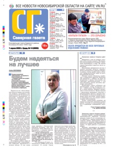 ПОГОДА Северная газета Åæåíåäåëüíàÿ ãàçåòà Ñåâåðíîãî ðàéîíà. Îñíîâàíà 20 èþëÿ 1935 ãîäà 1 апреля 2020 г. Среда, № 14 (8850) CMYK CMYK 16+ ВСЕ НОВОСТИ НОВОСИБИРСКОЙ ОБЛАСТИ НА САЙТЕ VN.RU ГАЗЕТА ПРОДАЁТСЯ ВО ВСЕХ ПОЧТОВЫХ ОТДЕЛЕНИЯХ РАЙОНА! 2 апреля Ночью: 0. Днем: +8. Ясно. Ветер южный, 5 м/с 3 апреля Ночью: 0. Днем: +4. Переменная облачность, небольшой дождь. Ветер западный, 5 м/с 4 апреля Ночью: -4. Днем: +4. Переменная облачность. Ветер юго-западный, 3 м/с 5 апреля Ночью: -5. Днем: +4. Ясно. Ветер восточный, 4 м/с 6 апреля Ночью: -3. Днем: +3. Переменная облачность. Ветер юго-восточный, 6 м/с 7 апреля Ночью: +1. Днем: +2. Пасмурно, дождь. Ветер юго-восточный, 5 м/с 8 апреля Ночью: 0. Днем: +9. Пасмурно, дождь. Ветер северный, 4 м/с АКТУАЛЬНО ОБРАЩЕНИЕ Уважаемые жители Северного райо на! Обращаюсь к вам по вопросу, кото рый сейчас волнует каждого. Мы видим, как остро развивается ситуация с эпиде мией коронавируса в мире. Во многих странах продолжает нарастать число за болевших. Абсолютным приоритетом для нас в данной ситуации является здоровье, жизнь и безопасность граждан Северно го района. Сейчас крайне важно соблю дать профилактические меры по расп ространению болезни. Текущая неделя объявлена нерабо чей, с сохранением зарплаты. Выходные дни продлятся с субботы 28 марта по воскресенье 5 апреля. Естественно, все структуры жизнеобеспечения, в том числе больница, аптеки, магазины, про должат свою работу. Необходимо строго соблюдать все рекомендации. Самое безопасное сей час — побыть дома. Надо поберечь и се бя, и своих близких, проявить дисцип лину и ответственность. Прошу граждан с предельным вниманием отнестись к рекомендациям врачей и органов влас ти. Особенно это касается наиболее уяз вимых групп населения: людей старше го поколения и тех, кто страдает хрони ческими заболеваниями. Только совместными усилиями мы сможем не допустить эпидемии в нашем районе. Спасибо за ответственный под ход и понимание сложившейся ситуа ции. Глава Северного района С.В. КОРОСТЕЛЕВ *** Уважаемые жители Северного района! В рамках борьбы с распространением коронавирусной инфекции пожилые граждане старше 65 лет и волонтеры мо гут обратиться с любыми проблемами на «горячую линию» министерства труда и социального развития Новосибирской области по телефону 8 800 100 00 82, ко торый с 25 марта работает в усиленном режиме. Граждане, находящиеся на социаль ном обслуживании в МКУ «КЦСОН Се верного района», будут получать услуги в обычном режиме. При дополнительной потребности в услугах, в том числе в обеспечении продуктами питания, лека рствами, предметами первой необходи мости одиноких пожилых граждан, не находящихся на социальном обслужива нии в МКУ «КЦСОН Северного райо на», разработан график дежурств соци альных работников 2 и 4 апреля. Заявки принимаются по телефону 22 343, с 10 до 15 часов. Алёна МАТВЕЕВА Распространение заболевания, вызванного коронавирусом, с каждым днем вызывает все большее и большее опасение. В стране, Новосибирской области и нашем Северном районе принимаются решительные меры, чтобы остановить инфекцию. Правительство Новосибирс кой области держит под контро лем вопросы, касающиеся эпи демиологической безопасности, деятельности медицинских уч реждений, снабжения региона продуктами питания, транспо ртного сообщения и другие. Гу бернатор Андрей Травников не однократно комментировал си туацию, в 