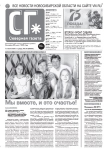 ВСЕ НОВОСТИ НОВОСИБИРСКОЙ ОБЛАСТИ НА САЙТЕ VN.RU 13 мая 2020 г. Среда, № 20 (8856) 16+ Еæåíåäåëüíàÿ ãàçåòà сåâåðíîãî ðàéîíà. оñíîâàíà 20 èþëÿ 1935 ãîäà ГАЗЕТА ПРОДАЁТСЯ ВО ВСЕХ ПОЧТОВЫХ ОТДЕЛЕНИЯХ РАЙОНА! ПОГОДА Северная газета 14 мая Ночью: +14. Днем: +27. Переменная облачность, дождь, гроза. Ветер восточный, 4 м/с 15 мая Ночью: +16. Днем: +26. Облачно, дождь. Ветер юго-восточный, 5 м/с 16 мая Ночью: +11. Днем: +19. Облачно, дождь. Ветер северный, 6 м/с 17 мая Ночью: +7. Днем: +23. Ясно. Ветер южный, 4 м/с 18 мая Ночью: +15. Днем: +26. Ясно. Ветер южный, 5 м/с 19 мая Ночью: +17. Днем: +25. Ясно. Ветер юго-восточный, 5 м/с 20 мая Ночью: +13. Днем: +17. Облачно, дождь. Ветер юго-западный, 5 м/с ВТОРОЙ ФРОНТ СИБИРИ Центр патриотического воспитания Новосибирской области реализует просветительский проект «Тыл — фронту». Несмотря на то, что Северный район в годы Великой Отечественной войны находился в глубоком тылу, жизнь людей была подчинена одной цели: помощи Красной Армии во имя победы. О трудовом подвиге жителей нашего района в годы войны читайте на стр. 4 15 МАЯ — МЕЖДУНАРОДНЫЙ ДЕНЬ СЕМЬИ ПОЗДРАВЛЕНИЕ Уважаемые жители Северного района! Поздравляем вас с Международным днем семьи! Крепкая и дружная семья —это результат нелегкого, кропотливого труда. Любовь, забота друг о друге, взаимное уважение, способность понимать и прощать—вот те важные качества, на которых строятся взаимоотношения. Очень важно, чтобы каждая семья жила в гармонии, согласии и комфорте, смело и уверенно смотрела в будущее. Чем больше будет таких семей, тем крепче государство. Особые слова благодарности и признательности выражаем многодетным семьям, семьям с приемными детьми за щедрость души, родительский труд, терпение и заботу. В этот праздничный день желаем, чтобы для каждого из вас семья всегда была надежным тылом. Пусть в ваших семьях царят понимание и поддержка, в домах раздается детский смех и во всех начинаниях помогает мудрость старших. Цените и уважайте крепость семейных традиций. Глава Северного района С.В. КОРОСТЕЛЕВ Председатель Совета депутатов Северного района И.В. ЗВЫКОВ Мы вместе, и это счастье! Алёна МАТВЕЕВА JСемье Николая и Алёны Подскребышевых исполнилось 17 лет. И для них каждый прожитый день вместе — большое счастье и самое главное в жизни. Николай и Алёна — многодетные счастливые родители. В их дружной семье растут сын Егор и дочери Вика и Арина. Почти 20 лет назад познакомились совсем еще юные Коля и Алёна. Совместная семейная жизнь началась далеко от райцентра — молодые переехали в отдаленный поселок Коб-Кордон, где молодому специалисту Алёне предложили работать фельдшером в ФАПе. Здесь они прожили три года, обрели друзей и знакомых, здесь начинали трудовую деятельность. Но самое главное воспоминание — рождение старшей дочери Арины. А потом молодые родители решились на переезд в райцентр, где все начинали заново. Несколько лет жили на съемных квартирах, а через несколько лет перебрались в собственный дом. Обустраивали дом, работали, пополнялась семья — родились Вика и Егор. Сегодня это уже взрослые самостоятельные дети. Егор в этом году заканчивает начальнуюшколу, Вика перейдет в 7 класс, Арина — в 9-й. — Как живем? Да, наверное, как и все семьи, — говорит Николай. — Работаем, воспитываем детей, не забываем и про увлечения. У нас их немало. Мыочень любим активный отдых всей семьей. Пикники, походы за грибамии яго