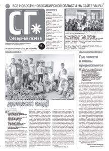 ВСЕ НОВОСТИ НОВОСИБИРСКОЙ ОБЛАСТИ НА САЙТЕ VN.RU 26 августа 2020 г. Среда, № 35 (8871) 16+ Еæåíåäåëüíàÿ ãàçåòà сåâåðíîãî ðàéîíà. оñíîâàíà 20 èþëÿ 1935 ãîäà ГАЗЕТА ПРОДАЁТСЯ ВО ВСЕХ ПОЧТОВЫХ ОТДЕЛЕНИЯХ РАЙОНА! ПОГОДА Северная газета 27 августа Ночью: +14. Днем: +17. Переменная облачность, дождь, гроза. Ветер юго-западный, 9 м/с 28 августа Ночью: +10. Днем: +21. Ясно. Ветер юго-западный, 6 м/с 29 августа Ночью: +13. Днем: +22. Переменная облачность, дождь. Ветер северо-западный, 5 м/с 30 августа Ночью: +12. Днем: +21. Переменная облачность. Ветер западный, 5 м/с 31 августа Ночью: +14. Днем: +22. Ясно. Ветер западный, 5 м/с 1 сентября Ночью: +14. Днем: +23. Ясно. Ветер юго-западный, 8 м/с 2 сентября Ночью: +14. Днем: +22. Переменная облачность, дождь. Ветер западный, 8 м/с ОБРАЗОВАНИЕ В ПРАВИТЕЛЬСТВЕ НСО Год памяти и славы продолжается JГубернатор Андрей Травников провел заседание областного оргкомитета «Победа». По его итогам утверждено место установки памятной стелы, а также грядущие мемориально-патриотические мероприятия, которые будут проведены в начале нового учебного года. В заседании приняли участие депутат Госдумы Герой России Александр Карелин, руководители органов исполнительной власти, советов ветеранов войны, труда, военной службы и правоохранительных органов всех муниципальных районов и городских округов Новосибирской области, представители волонтерских организаций. С докладом об увековечивании трудового подвига жителей Новосибирской области и реализации мероприятий по установке памятной стелы в честь присвоения Новосибирску почётного звания «Город трудовой доблести» выступил заместитель губернатора Сергей Нелюбов. Оргкомитет своим решением утвердил место для установки памятной стелы «Город трудовой доблести» — центральное кольцо на площади Калинина в Новосибирске. Также утвержден план по реализации мероприятий, направленных на увековечивание памяти трудового подвига новосибирцев. В частности, губернатор предложил приступить к разработке концепции памятника подвигу новосибирцев-тружеников тыла. В отличие от стелы — символа звания «Город трудовой доблести» — памятный комплекс должен быть доступен для возложения цветов, познавательных и туристических экскурсий и прочих посещений, должен нести в себе большое информационное содержание. Кроме того, Андрей Травников выразил уверенность в том, что, несмотря на предлагаемый федеральным центром единый макет стел, Новосибирская область должна отстаивать индивидуальность содержательной части этого символа. (Окончание на стр. 3) Пресс-служба губернатора и правительства НСО Алёна МАТВЕЕВА JПосле длительного перерыва возобновили работу детские дошкольные образовательные учреждения Новосибирской области. В Северном районе детский сад «Сказка» с 30 марта работал в режиме «дежурной группы». И вот 17 августа учреждение вновь гостеприимно распахнуло двери для своих воспитанников. Нина Леонтьевна Иванова, заведующая детским садом, рассказала, какие меры применяются для безопасности детей и их родителей, как после длительных каникул дети вновь адаптируются в коллективе. — Наш детский сад посещают 238 детей, — поясняет Нина Леонтьевна. — После длительного перерыва в группы вернулись пока только 126 ребят. Это обусловлено тем, что многие родители на лето оставили детей дома. И раньше в период отпусков посещаемость была вс
