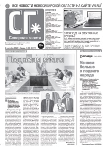 ВСЕ НОВОСТИ НОВОСИБИРСКОЙ ОБЛАСТИ НА САЙТЕ VN.RU 2 сентября 2020 г. Среда, № 36 (8872) 16+ Еæåíåäåëüíàÿ ãàçåòà сåâåðíîãî ðàéîíà. оñíîâàíà 20 èþëÿ 1935 ãîäà ГАЗЕТА ПРОДАЁТСЯ ВО ВСЕХ ПОЧТОВЫХ ОТДЕЛЕНИЯХ РАЙОНА! ПОГОДА Северная газета 3 сентября Ночью: +12. Днем: +22. Переменная облачность. Ветер юго-западный, 14 м/с 4 сентября Ночью: +8. Днем: +12. Переменная облачность, небольшой дождь. Ветер западный, 14 м/с 5 сентября Ночью: +9. Днем: +14. Переменная облачность, дождь, гроза. Ветер северо-западный, 15 м/с 6 сентября Ночью: +7. Днем: +11. Переменная облачность, небольшой дождь. Ветер западный, 11 м/с 7 сентября Ночью: +6. Днем: +10. Небольшой дождь. Ветер северо-западный, 10 м/с 8 сентября Ночью: +6. Днем: +10. Небольшой дождь. Ветер северо-западный, 8 м/с 10 сентября Ночью: +5. Днем: +14. Переменная облачность, слабый дождь. Ветер западный, 8 м/с О ПЕРЕХОДЕ НА ЭЛЕКТРОННЫЕ ТРУДОВЫЕ До 31 декабря работающие граждане должны сделать свой выбор и подать работодателю заявление, в каком формате будут заноситься сведения об их трудовой деятельности, — «на бумаге» или в электронном виде. Стр. 5 В СОВЕТЕ ДЕПУТАТОВ ГОД ПАМЯТИ И СЛАВЫ Узнаем больше о подвиге народа JВпервые Всероссийская патриотическая акция «Диктант Победы» прошла 7 мая 2019 года. В связи с пандемией коронавирусной инфекции в этом году провести её накануне Дня Победы не удалось. Но и отменить мероприятие, которое имеет глубокий патриотический смысл, также нельзя. В 2019 году в акции приняли участие более 110 тысяч человек из России и зарубежных стран. Новосибирская область была лидером среди сибирских регионов — 3232 человека, и заняла 8-е место по России. В Северном районе в Диктанте Победы приняли участие 46 человек — от школьников до пенсионеров. Лучший результат по правильности и времени показал учитель Северной средней школы Рашид Нургаянович Ганеев. Он принимал участие в церемонии награждения победителей в правительстве Новосибирской области. Диктант Победы-2020 пройдёт 3 сентября. Он будет значительно масштабнее прошлогоднего мероприятия. ВНовосибирской области определены 122 площадки, в том числе 102 на базе школ (в 2019-м было 48 площадок). Для старшеклассников результаты Диктанта Победы будут учитываться при аттестации во время сдачи тестов ЕГЭ по истории. В диктанте могут принять участие все желающие. В Северном районе Диктант Победы пройдет 3 сентября в 14.00 на базе Северной средней школы. Для того чтобы принять участие в акции, необходимо зарегистрироваться на сайте ( по ссылке https://диктантпобеды.рф/). Подготовила Раиса АКИЛИНА Последнее заседание Совета депутатов Северного района 3-го созыва Раиса АКИЛИНА J26 августа состоялась 33-я, заключительная, сессия депутатов Совета депутатов Северного района третьего созыва. На повестке дня значилось 20 вопросов. Несколько вопросов касались внесения изменений в действующие нормативно-правовые акты. Большая часть вопросов касалась предоставления из местного бюджета Северного района трансфертов в бюджеты муниципальных поселений. Так, из бюджета района были предоставлены трансферты в Бергульское (на сумму 97 тыс. руб.), Останинское (66 тыс. руб.), а также Северное (290 тыс. руб.) МО на ограждение кладбищ. Также выделено 220 тыс. руб. на снос аварийных деревьев на кладбище в с. Верх-Красноярка. На ремонт автомобильных дорог в Гражданцево (ул. Набережная) выделено 396700 рублей, в Биазе (улицы Бугаева и Молодежн