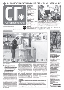 ВСЕ НОВОСТИ НОВОСИБИРСКОЙ ОБЛАСТИ НА САЙТЕ VN.RU 16 сентября 2020 г. Среда, № 38 (8874) 16+ еæåíåäåëüíàÿ ãàçåòà сåâåðíîãî ðàéîíà. Оñíîâàíà 20 èþëÿ 1935 ãîäà ГАЗЕТА ПРОДАЁТСЯ ВО ВСЕХ ПОЧТОВЫХ ОТДЕЛЕНИЯХ РАЙОНА! ПОГОДА Северная газета 17 сентября Ночью: +9. Днем: +17. Переменная облачность, дождь. Ветер юго-западный, 13 м/с 18 сентября Ночью: +7. Днем: +15. Переменная облачность, дождь. Ветер западный, 8 м/с 19 сентября Ночью: +7. Днем: +16. Переменная облачность. Ветер северо-западный, 12 м/с 20 сентября Ночью: +9. Днем: +18. Солнечно. Ветер западный, 12 м/с 21 сентября Ночью: +12. Днем: +19. Солнечно. Ветер юго-западный, 9 м/с 22 сентября Ночью: +9. Днем: +18. Переменная облачность. Ветер западный, 9 м/с 23 сентября Ночью: +8. Днем: +11. Пасмурно, дождь. Ветер западный, 16 м/с ПОМОЩЬ АДРЕСНАЯ И ДЕЙСТВЕННАЯ В Комплексном центре социального обслуживания населения Северного района создана школа неформального (родственного) ухода за гражданами пожилого возраста и инвалидами. Для чего и как организовано обучение рассказала директор КЦСОН Елена Крестьянова. Стр. 3 ВЫБОРЫ-2020 ПОЗДРАВЛЕНИЕ Раиса АКИЛИНА JИзбирательная кампания 2020 года с первых дней обещала быть не из легких. Предстояло выбрать депутатов всех уровней региональной и районной власти: от Законодательного собрания Новосибирской области до сельских советов. От этого выбора напрямую зависит дальнейшее развитие как области в целом, так и района, и каждого поселения. Но сделать свой выбор пришли только около 40% избирателей. К сожалению, это не лучший результат за последнее время. 10 политических партий вели активнуюборьбу за голоса избирателей, сами кандидатыпроводили встречи с избирателями, доносили до земляков свои взглядына развитие области, района, поселения. Особенностью нынешней избирательной кампании стало и то, что голосование проводилось с соблюдениемвсех противоэпидемических требований и в течение трех дней. Это помогло распределить количество голосующих и уменьшить риски, связанные с коронавирусной инфекцией. На всех участках присутствовали наблюдатели от политических партий и общественных организаций. Так, на участках 909 и 910 в райцентре в основной день голосования, 13 сентября, присутствовали 5 и 6 наблюдателей соответственно. Никаких нарушений за время голосования отмечено не было. Большое внимание привлекли выборы депутатов Законодательного собрания. Результаты голосования по партийному списку были вполне ожидаемыми. Наибольшее число голосов (из 3075 проголосовавших) было отдано за политическую партию «Единая Россия» — 1403 , затем идет КПРФ— 609 и замыкает тройку лидеров ЛДПР— 499. Среди кандидатов по одномандатному округу несомненным лидером стал В.В. Лаптев — за него проголосовали 1547 избирателей; за С.С. Зарембо — 854, за С.В. Гилева — 529 и за Н.Н. Ногаева — 145 человек. В выборах депутатов Совета депутатов Северного района также наибольшее число голосов было отдано за партию «Единая Россия» — 1535. Эту партию в районном Совете будут представлять 7 кандидатов по партийному списку, 5 по одномандатному и 3 по многомандатному округам. За кандидатов от КПРФ проголосовали 820 избирателей, за ЛДПР — 648. Также избраны депутаты 12 сельских советов. Им предстоит избрать глав поселений. ДОСЛОВНО Игорь ЗВЫКОВ, председатель Совета депутатов Северного района 3-го созыва: — Избирательная кампания 2020 года была напряженной. Конкурентная борьб