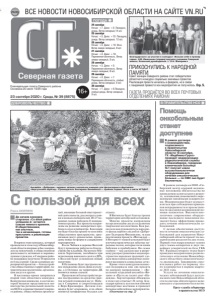 ВСЕ НОВОСТИ НОВОСИБИРСКОЙ ОБЛАСТИ НА САЙТЕ VN.RU 23 сентября 2020 г. Среда, № 39 (8875) 16+ Еæåíåäåëüíàÿ ãàçåòà сåâåðíîãî ðàéîíà. оñíîâàíà 20 èþëÿ 1935 ãîäà ГАЗЕТА ПРОДАЁТСЯ ВО ВСЕХ ПОЧТОВЫХ ОТДЕЛЕНИЯХ РАЙОНА! ПОГОДА Северная газета 24 сентября Ночью: +7. Днем: +9. Пасмурно, дождь. Ветер западный,14 м/с 25 сентября Ночью: +3. Днем: +10. Пасмурно, дождь. Ветер западный, 13 м/с 26 сентября Ночью: +3. Днем: +10. Ясно. Ветер северо-западный, 8 м/с 27 сентября Ночью: +3. Днем: +10. Переменная облачность. Ветер северо-западный, 9 м/с 28 сентября Ночью: +3. Днем: +9. Переменная облачность. Ветер северо-западный, 8 м/с 29 сентября Ночью: +3. Днем: +7. Переменная облачность, слабый дождь. Ветер западный, 9 м/с 30 сентября Ночью: +1. Днем: +6.Пасмурно, слабый дождь. Ветер западный, 9 м/с ПРИКОСНУЛИСЬ К НАРОДНОЙ ПАМЯТИ Совет женщин Северного района стал победителем областного конкурса социально значимых проектов. Реализация проекта началась в феврале, но в связи с пандемией провести все мероприятия не получилось. Стр. 5. ДОБРОВОЛЬЧЕСТВО В ПРАВИТЕЛЬСТВЕ НСО Помощь онкобольным станет доступнее JВ рамках договора о взаимодействии, подписанного в правительстве Новосибирской области 18 сентября, ГК «МедИнвестГрупп» проведет модернизацию радиологической службы в Новосибирске, городская клиническая больница №1 получит новое высокотехнологичное оборудование для лечения онкологических больных — по ОМС оно будет бесплатным. В рамках договора на ООО «Сибирский центр ядерной медицины» возложены обязательства по проведению капитального ремонта, оснащению помещений современными линейными ускорителями. Модернизация будет осуществляться при соблюдении принципов непрерывности и преемственности оказания медицинской помощи пациентам. Высокотехнологичное современное оборудование последнего поколения позволит более эффективно проводить лечение онкологических заболеваний. С целью обеспечения доступности лечения онкологических заболеваний для пациентов Новосибирской области проект по модернизации разделен на два этапа. Первый этап подразумевает замену двух гамма-аппаратов и двух линейных ускорителей на базе ГКБ №1. В рамках второго этапа будет проведена модернизация радиологического отделения Новосибирского областного онкологического диспансера. Завершение строительных работ по первому этапу планируется в первом квартале 2021 года. Услуги по лечению онкологических заболеваний будут доступны жителям Новосибирской области по системе обязательного медицинского страхования бесплатно. Пресс-служба губернатора и правительства НСО С пользой для всех Раиса АКИЛИНА JДо начала конкурса стартапов «Со мной район успешнее-2» остается совсем немного времени. И общественники, как опытные, так и начинающие, готовы приступить к реализации проектов. В первом этапе конкурса, который проводился в этом году в Новосибирской области впервые и был направлен на вовлечение в общественную деятельность активных и неравнодушных граждан, в Северном районе поддержку получили 10 проектов из 6 поселений. Среди основных мероприятий проектов — благоустройство общественных территорий, патриотическое воспитание, организация досуга и другие. В настоящее время завершился второй этап областного конкурса. Конкурсная комиссия, в состав которой входили представители министерства региональной политики НСО и администрац