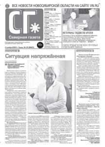 ВСЕ НОВОСТИ НОВОСИБИРСКОЙ ОБЛАСТИ НА САЙТЕ VN.RU 16+ Åæåíåäåëüíàÿ ãàçåòà Ñåâåðíîãî ðàéîíà. Îñíîâàíà 20 èþëÿ 1935 ãîäà ГАЗЕТА ПРОДАЁТСЯ ВО ВСЕХ ПОЧТОВЫХ ОТДЕЛЕНИЯХ РАЙОНА! 4 ноября 2020 г. Среда, № 45 (8880) Северная газета 5 ноября Ночью: 0. Днем: +4. Переменная облачность, небольшой снег, дождь. Ветер западный, 6 м/с 6 ноября Ночью: 0. Днем: +2. Пасмурно, небольшой дождь, снег. Ветер юго-западный, 4 м/с 7 ноября Ночью: +1. Днем: +5. Пасмурно, дождь. Ветер южный, 6 м/с 8 ноября Ночью: +2. Днем: +6. Переменная облачность, небольшой дождь. Ветер южный, 7 м/с 9 ноября Ночью: 0. Днем: +2. Пасмурно, небольшой дождь, снег. Ветер западный, 9 м/с 10 ноября Ночью: -6. Днем: 0. Пасмурно, снег. Ветер северо-западный, 5 м/с 11 ноября Ночью: -8. Днем: -5. Переменная облачность, снег. Ветер северо-западный, 3 м/с ВЕТЕРАНЫ ПОДВЕЛИ ИТОГИ Состоялась отчетно-выборная конференция районного Совета ветеранов. На повестке дня были доклады о работе за отчетный период, обмен опытом, выборы нового состава президиума и председателя, награждение активистов. Подробнее — на стр. 2. ПОГОДА Алёна МАТВЕЕВА JJМинздрав Новосибирской области усиливает работу первичного звена здравоохранения. Проведение аудита в поликлиниках, открытие специализированного колл-центра, внедрение телемедицинских консультаций — министерство здравоохранения Новосибирской области уделяет повышенное внимание работе первичного медицинского звена. На особом контроле находится ситуация с лекарственными препаратами в аптечных сетях. Об оказании медицинской помощи в регионе шла речь 28 октября на брифинге в правительстве Новосибирской области. «Первичное звено здравоохранения сейчас испытывает огромное напряжение, и мы стараемся максимально систематизировать нагрузку на первичное звено, равномерно распределить работу, учесть все нюансы. Регулярно проводится аудит в поликлиниках: мы проверяем соблюдение социальной дистанции, разведение потоков пациентов и выполнение других мер безопасности. Одно из важнейших направлений — обслуживание вызовов на дому, которые совершенно разные, как по степени тяжести, так и по неотложности. Открыт коллцентр, в «пилотном» режиме отрабатываются телемедицинские консультации. Первичное звено, в том числе и колл-центр, усилено студентами-медиками», — сообщила заместитель министра здравоохранения Новосибирской области Елена Аксенова. В Северном районе продолжают регистрировать случаи заболевания внебольничной пневмонией, ОРВИ и COVID-19. О том, как организована работа Центральной районной больницы в период так называемой «второй волны» коронавирусной инфекции, рассказывает главный врач ЦРБ Галина Владимировна Михайлова. — Галина Владимировна, как организована работа поликлиники сегодня? — Поток пациентов в детской поликлинике разведен полностью. Это значит, что маленьких пациентов с признаками ОРВИ принимают в отдельном кабинете с отдельным входом. Во взрослой поликлинике мы также стараемся разделить потоки, пациентов с признаками ОРВИ принимает отдельная бригада — фельдшер и медсестра. В общей очереди с остальными пациентами они не находятся. В этом кабинете применяются повышенные меры безопасности. Также отдельная бригада выезжает к заболевшим на дом. У нас введено такое правило: пациентам с хроническими заболеваниями, которые находятся на льготном лекарственном обеспечении, препараты д