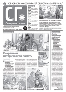 ВСЕ НОВОСТИ НОВОСИБИРСКОЙ ОБЛАСТИ НА САЙТЕ VN.RU 16+ Åæåíåäåëüíàÿ ãàçåòà Ñåâåðíîãî ðàéîíà. Îñíîâàíà 20 èþëÿ 1935 ãîäà ГАЗЕТА ПРОДАЁТСЯ ВО ВСЕХ ПОЧТОВЫХ ОТДЕЛЕНИЯХ РАЙОНА! 11 ноября 2020 г. Среда, № 46 (8882) Северная газета 12 ноября Ночью: -7. Днем: -2. Пасмурно, снег. Ветер юго-западный, 6 м/с 13 ноября Ночью: -7. Днем: -5. Пасмурно, снег. Ветер юго-восточный, 4 м/с 14 ноября Ночью: -11. Днем: -5. Пасмурно, снег. Ветер южный, 2 м/с 15 ноября Ночью: -11. Днем: -9. Переменная облачность. Ветер северо-восточный, 5 м/с 16 ноября Ночью: -14. Днем: -11. Пасмурно, снег. Ветер северо-восточный, 5 м/с 17 ноября Ночью: -15. Днем: -8. Пасмурно, снег. Ветер северо-восточный, 2 м/с 18 ноября Ночью: -12. Днем: -10. Пасмурно. Ветер северо-западный, 3 м/с ПОПОЛНИЛИ ИСТОРИЮ РАЙОНА На базе Дома детского творчества подходит к концу реализация социально-значимого проекта «О прошлом память сохраним», в рамках которого оформлена новая экспозиция «Северный район: страницы истории». Подробнее — на стр. 5. ПОГОДА Раиса АКИЛИНА Накануне Дня народного единства специалисты культурно-досугового центра предложили жителям Северного района принять участие в фотоакции «Россия#мыедины». Всем желающим было предложено сделатьфотографию в национальном костюме или с элементами костюма и опубликовать ее в социальной сети «Одноклассники» в группе «Культурно-досуговыйцентрСеверного района». Внашемрайоне проживают люди разных национальностей. Это сложилось исторически: при заселенииСибири сюда, на вольные земли, ехали украинцы, белорусы, жители среднейполосыРоссиии Поволжья—чуваши, мордва и другие. И каждый нес с собой свою культуру, свои обычаи. Более чем за вековуюисториюскладывались межнациональные семьи, и культура одной национальности переходила в культуру другой, дополняя своими обычаями. Сейчас трудно найти в нашемрайоне чисто белорусскуюили чувашскуюсемью, но традиции своих предков чтут и соблюдают многие, сохраняют историческую память. И в этом залог добрососедских отношений, уважения и взаимопонимания, залог единства российского народа. Фото участников акции В условиях распространения коронавирусной инфекции министерство труда и социального развития Новосибирской области принимает необходимые меры по поддержке жителей региона. На особом внимании находятся получение социальных услуг в дистанционном формате и автоматическое продление выплат. Автоматическое продление без подачи заявления и документов касается ежемесячных денежных выплат семьям в связи с рождением (усыновлением) первого ребенка, если в период с 1 октября 2020 по 1 марта 2021 года ребенок достигнет возраста одного года или двух лет. В настоящее время правительством НСО рассматривается вопрос пролонгации в беззаявительном порядке ежемесячных выплат семьям с детьми, у которых окончание выплатного периода приходится на период с октября по декабрь 2020 года: ежемесячное пособие на ребенка, ежемесячная денежная выплата в размере прожиточного минимума для детей, на третьего и последующих детей из числа многодетных семей, компенсация части родительской платы, выплачиваемой родителям (законным представителям) детей, посещающих детские сады. Автоматически продлевается и субсидия на оплату жилого помещения и коммунальных услуг. Если срок предоставления субсидии истекает в период с 1 октября по 31 декабря 2020 года, она пролонгируется на следующи