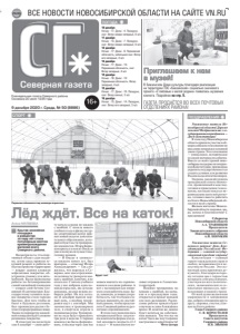 ВСЕ НОВОСТИ НОВОСИБИРСКОЙ ОБЛАСТИ НА САЙТЕ VN.RU 16+ Åæåíåäåëüíàÿ ãàçåòà Ñåâåðíîãî ðàéîíà. Îñíîâàíà 20 èþëÿ 1935 ãîäà ГАЗЕТА ПРОДАЁТСЯ ВО ВСЕХ ПОЧТОВЫХ ОТДЕЛЕНИЯХ РАЙОНА! 9 декабря 2020 г. Среда, № 50 (8886) Северная газета 10 декабря Ночью: -17. Днем: -4. Пасмурно, снег. Ветер северо-западный, 6 м/с 11 декабря Ночью: -13. Днем: -7. Пасмурно, снег. Ветер северо-западный, 6 м/с 12 декабря Ночью: -17. Днем: -9. Переменная облачность, небольшой снег. Ветер юго-западный, 4 м/с 13 декабря Ночью: -17. Днем: -13. Переменная облачность, снег. Ветер западный, 4 м/с 14 декабря Ночью: -18. Днем: -12. Переменная облачность. Ветер западный, 4 м/с 15 декабря Ночью: -17. Днем: -16. Пасмурно, снег. Ветер южный, 3 м/с 16 декабря Ночью: -15. Днем: -14. Пасмурно, снег. Ветер юго-западный, 5 м/с В Биазинском Доме культуры благодаря реализации на территории ТОС «Биазинский» социально значимого проекта «С любовью к малой родине» появилась музейная комната. Подробнее на стр. 5. ПОГОДА Уважаемые жители Новосибирской области! Дорогие земляки! Поздравляем вас с государственным праздником— Днем Конституции! В этом годуНовосибирская область приняла участие в общероссийском голосованиипо внесениюпоправок в основной закон страны. Это голосование — уникальное, историческое по своей значимости событие. Вместе со всей страной новосибирцыподдержалипоправки вКонституцию, призванные укрепить государственность и создать условия для развития Россиина десятилетия вперед. Уверены, высокий уровень гражданской ответственности, проявленный в ходе подготовки и проведения голосования, наглядно показал неравнодушие жителей региона, готовых вместе работать на благо Новосибирской области и всей страны. Желаем жителям Новосибирской области здоровья, мира, успеха и благополучия! С праздником! Губернатор Новосибирской области А.А. ТРАВНИКОВ Председатель Законодательного собрания Новосибирской области А.И. ШИМКИВ Уважаемые жители Северного района! День Конституции Российской Федерации — главный государственный праздник страны! Конституция — главный гарант гражданских прав и свобод, независимости и целостности России. Это памятный день принятия документа, благодаря которому сегодня мы с гордостью называем себя россиянами, участвуем во всех политических, экономических и социальных процессах, происходящих в нашей стране. От всей души желаем вам уверенности в завтрашнем дне, доброго отношения друг к другу, здоровья, счастья, успехов на благо района. Глава Северного района С. В. КОРОСТЕЛЕВ Председатель Совета депутатов Северного района И.В. ЗВЫКОВ ПОЗДРАВЛЕНИЯ СПОРТ Приглашаем к нам в музей! Алёна МАТВЕЕВА JJКрытая хоккейная площадка в райцентре за пару лет стала популярным местом времяпровождения жителей всего Северного района. Несмотря на то, что спортивный объект сдан недавно, летом здесь провели текущий ремонт и работы по благоустройству территории — вокруг здания уложили асфальтовое покрытие, обустроили стоянку для автомобилей. Были выполнены работы по бетонированию самой хоккейной площадки — уложен слой бетона толщиной 10 сантиметров. Благодаря этому заливать ледовое покрытие стало гораздо быстрее. Для того чтобы не было в будущем разломов, был произведен распил бетона (гидроразрывные швы). Также по периметру хоккейной площадки будет уложено резиновое покрытие. В этом году на лед встали уже 6 декабря — свою работ
