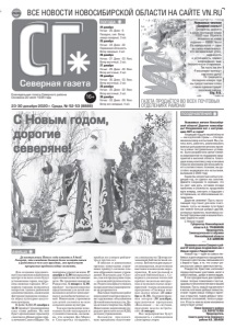 ВСЕ НОВОСТИ НОВОСИБИРСКОЙ ОБЛАСТИ НА САЙТЕ VN.RU 16+ Åæåíåäåëüíàÿ ãàçåòà Ñåâåðíîãî ðàéîíà. Îñíîâàíà 20 èþëÿ 1935 ãîäà ГАЗЕТА ПРОДАЁТСЯ ВО ВСЕХ ПОЧТОВЫХ ОТДЕЛЕНИЯХ РАЙОНА! 23-30 декабря 2020 г. Среда, № 52-53 (8888) Северная газета 24 декабря Ночью: -20. Днем: -6. Пасмурно, снег. Ветер северо-западный, 3 м/с 25 декабря Ночью: -34. Днем: -22. Переменная облачность. Ветер северный, 3 м/с 26 декабря Ночью: -37. Днем: -33. Ясно. Ветер восточный, 3 м/с 27 декабря Ночью: -35. Днем: -33. Ясно. Ветер восточный, 2 м/с 28 декабря Ночью: -36. Днем: -33. Ясно. Ветер восточный, 2 м/с 29 декабря Ночью: -35. Днем: -32. Ясно. Ветер восточный, 3 м/с 30 декабря Ночью: -33. Днем: -29. Ясно. Ветер юго-западный, 4 м/с ПОГОДА ПОЗДРАВЛЕНИЯ С Новым годом, дорогие северяне! Для создания праздничного настроения в районном центре и во всех селах будут установлены горки, построены снежные городки. ВСеверном городок возводится напротив здания районной администрации, снежными фигурами украшена площадка перед культурно-досуговым центром. В фойе КДЦ 25 декабря в 14.30 пройдет традиционная елка главы района. На ней будет организован просмотр спектакля «Новогодние приключенияСашииШуры».На повторное представление 27 декабря в 12.00 (воскресенье) приглашаютсявсежелающие дети. По традиции накануне Рождества, 6 января в 12.00, пройдет театрализованное представление для детей-инвалидов и детей из многодетных и малообеспеченных семей. Новогодние утренники для детей состоятся во всех сельских домах культуры. Так как проведение новогодних балов-маскарадов и гуляний отменено, возможно, что северян Дед Мороз и Снегурочка поздравят, пройдя по улицам райцентра и других сел. В школах и дошкольных группах новогодние утренники пройдут согласно планам образовательных учреждений. В детском саду «Сказка», какивпредыдущие годы, —длякаждой группыотдельно. Родителямприсутствовать напраздничныхмероприятиях не разрешается. Выставкитворческихработ новогоднейтематикипредставят кружковые объединения Детскойшколыискусств,Дома детского творчества,КДЦ. Новогодние композиции порадуют зрителейв холлеКДЦ, детских учреждениях. Большую праздничную программу подготовили специалисты Централизованной библиотечной системы. Библиотекари украсили помещения, подготовили выставки и новогодние мероприятия. В центральной и детской библиотеках с. Северного для юных читателей пройдет несколько интересных и познавательных мероприятий: театрализованная программа «Снежная нежная сказка зимы» (25 декабря в 11.30), беспроигрышная лотерея (30 декабря), праздничная программа «Веселимся — не скучаем, праздник весело встречаем!» (6 января). Все мероприятия будут проходить с соблюдением санитарных норм. АФИША До наступления Нового года остается 8 дней! Говорят, что ожидание бывает более волнительным и радостным чем сам праздник, оно продлевает прекрасные предновогодние моменты. Уважаемые жители Новосибирской области! Дорогие новосибирцы! Поздравляем вас с наступающим 2021-м годом! Уходящий год для нашей области — как и для всей страны— стал временем вызовов и испытаний. Мы учились жить, работать, реализовывать важные для развития региона проекты в новых экстремальных условиях. Была разработана целая линейка мероприятий по поддержке предприятий и жителей области. Благодаря всему комплексу мер ключевые отрасли экономики региона работают в соответствии с планами, мы д