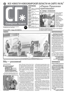 ВСЕ НОВОСТИ НОВОСИБИРСКОЙ ОБЛАСТИ НА САЙТЕ VN.RU 16+ Åæåíåäåëüíàÿ ãàçåòà Ñåâåðíîãî ðàéîíà. Îñíîâàíà 20 èþëÿ 1935 ãîäà ГАЗЕТА ПРОДАЁТСЯ ВО ВСЕХ ПОЧТОВЫХ ОТДЕЛЕНИЯХ РАЙОНА! 23 июня 2021 г. Среда, № 25 (8914) Северная газета 24 июня Ночью: +9. Днем: +16. Переменная облачность, небольшой дождь. Ветер северо-восточный, 6 м/с. 25 июня Ночью: +9. Днем: +16. Пасмурно. Ветер северный, 4 м/с. 26 июня Ночью: +11. Днем: +18. Пасмурно, небольшой дождь. Ветер северный, 4 м/с. 27 июня Ночью: +12. Днем: +20. Малооблачно, небольшой дождь, гроза. Ветер северо-западный, 3 м/с. 28 июня Ночью: +13. Днем: +20. Облачно, небольшой дождь, гроза. Ветер западный, 2 м/с. 29 июня Ночью: +14. Днем: +23. Переменная облачность, небольшой дождь. Ветер северо-западный, 3 м/с. 30 июня Ночью: +15. Днем: +25. Переменная облачность, небольшой дождь. Ветер северо-западный, 3 м/с. ПОГОДА ПОЗДРАВЛЕНИЕ ГОСУСЛУГИ ДАТА Алёна МАТВЕЕВА J12 июня мы отмечаем один из важнейших государственных праздников — День России. Для всех россиян — это важное патриотическое событие, которое является символом гражданского мира. Рождение праздника связано с распадом СССР и формированием на его территории новых, независимых государств. Именно 12 июня, более 30 лет назад съезд народных депутатов принял «Декларацию о суверенитете России». Именно такой праздник учредили в 1994 году —День принятия Декларации о государственном суверенитете. Современное же название —День России — в 2002 году дал президент Владимир Путин. День России— это не просто выходной, это праздник, масштаб которого растет с каждым годом. Фестивали, концерты и другие мероприятия охватывают всё больше площадок и участников. Жители Северного района также присоединились к празднованию. В сельских библиотеках были оформлены тематические книжные выставки, дома культуры провели концерты, для детей состоялись развлекательные мероприятия, прошли выставки рисунков и фото, спортивные мероприятия. В райцентре в парке культуры и отдыха состоялся праздничный концерт «Поём о тебе, дорогая Россия». Ведущие Елена Кривенко и Надежда Шаурко отметили: «Сегодня мы чествуем нашу великую страну, с её традициями, историей, с ее народами и победами. День России — это день величия нашего государства! Нам действительно есть с чем поздравить друг друга. Мы живем в великой стране с не менее великой историей. Нашими учеными сделаны важные открытия, а достояниям нашей культуры могут позавидовать многие другие народы мира». Со словами поздравлений к гостям праздника обратилась исполняющая обязанности главы Северного района Галина Михайловна Кайгородова. В нашем районе, как и по всей области, сложилась добрая и славная традиция: в День России юным северянам в торжественной обстановке вручают главный документ гражданина РФ — паспорт. В этот раз паспорта были вручены пятерым нашим землякам: Софье Тельной, Ульяне Гуриной, МарииМасловой, Дарье Старковой и Константину Плотникову. На празднике присутствовали и жители, которые успешно сдали нормы ГТО. В связи с этимМинистерство спорта РФ награждает их золотыми знаками отличия комплекса ГТО, это Ольга Николаевна Чикулаева, Светлана Васильевна Топорищева, Светлана Петровна Халява, Галина Никифоровна Портнова. Работники культуры подарили интересные и яркие концертные номера, которые не оставили никого равнодушным. Мы — россияне! С Днем России жителей района поздравляет в