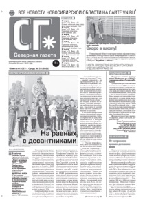 ВСЕ НОВОСТИ НОВОСИБИРСКОЙ ОБЛАСТИ НА САЙТЕ VN.RU 16+ Åæåíåäåëüíàÿ ãàçåòà Ñåâåðíîãî ðàéîíà. Îñíîâàíà 20 èþëÿ 1935 ãîäà ГАЗЕТА ПРОДАЁТСЯ ВО ВСЕХ ПОЧТОВЫХ ОТДЕЛЕНИЯХ РАЙОНА! 18 августа 2021 г. Среда, № 33 (8922) Северная газета 19 августа Ночью: +16. Днем: +21. Облачно, небольшой дождь, гроза. Ветер северо-западный, 5 м/с. 20 августа Ночью: +10. Днем: +18. Переменная облачность. Ветер северный, 3 м/с. 21 августа Ночью: +15. Днем: +26. Переменная облачность. Ветер западный, 5 м/с. 22 августа Ночью: +17. Днем: +26. Переменная облачность, небольшой дождь, гроза. Ветер северо-западный, 4 м/с. 23 августа Ночью: +15. Днем: +25. Облачно, небольшой дождь, гроза. Ветер южный, 2 м/с. 24 августа Ночью: +17. Днем: +27. Переменная облачность, гроза. Ветер южный, 2 м/с. 25 августа Ночью: +18. Днем: +28. Ясно. Ветер южный, 3 м/с. ПОГОДА ПОЗДРАВЛЕНИE ПАТРИОТИЧЕСКОЕ ВОСПИТАНИЕ Уважаемые жители Северного района! Поздравляем вас с Днем Государственногофлага РоссийскойФедерации! Трехцветныйфлаг с белой, синей и алойполосами с 1991 года является однимиз главных символов российской государственностии единства граждан нашей страны. Флаг РоссийскойФедерации, герб и гимн — это ее неотъемлемые атрибуты. Они с нами в каждую торжественнуюминуту, и самые яркие достижения гражданина или всей страныотмечаются поднятиемГосударственного флага под звуки Гимна России. Российский флаг — символ чести и славы наших предков, оннапоминает намо том, чтомы— граждане великой, свободной, сильной державыс героическойисторией и достойным будущим. Желаемблагополучия и крепкого здоровья, добра и согласия, мира и счастья. Глава Северного района Новосибирской области С.В. КОРОСТЕЛЕВ Председатель Совета депутатов Северного района Новосибирской области И.В. ЗВЫКОВ Скоро в школу! В Новосибирской области стартовала приемка образовательных организаций к началу учебного года. В Северном районе готовность школ к началу занятий комиссия управления образования администрации с привлечением специалистов других ведомств проверяет с 9 августа. Подробнее — на стр.4. Алёна МАТВЕЕВА JВ рабочем поселке Сузун прошла областная профильная смена «Опыт ветеранов ВДВ — будущим защитникам Отечества», посвященная 91-й годовщине образования воздушнодесантных войск. Участниками мероприятия стали курсанты лучших в области военнопатриотических клубов, юнармейских отрядов и допризывная молодежь Новосибирской области — всего 120 человек. Основной целью проведения профильной смены является совершенствование знаний, умений, навыков, полученных курсантами ВПК и объединений десантной направленности, допризывная подготовка молодежи, ориентация подростков на службу в ВДВ. С началом смены ребят поздравили представители администрации Сузунского района, межрегиональной общественной организации «Союз десантников Сибири», а также участник боевых действий, воин-десантник, проходивший службу в знаменитой 9-й роте, которая выстояла против сотен афганских моджахедов в бою за высоту 3234. Северный район на смене представляли 10 курсантов военно-патриотического клуба имени Артема Карелина, руководителем которого является Ибраним Тимофеевич Ульжебаев. Сопровождал команду представитель клуба, преподаватель физической культуры Северной средней школы Олег Сергеевич Ахметов. На протяжении 12 дней ребята осваивали ряд воинских дисциплин: огневая подготовка, стрельба, так
