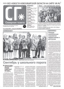 ВСЕ НОВОСТИ НОВОСИБИРСКОЙ ОБЛАСТИ НА САЙТЕ VN.RU 16+ Еженедельная газета Северного района. Основана 20 июля 1935 года ГАЗЕТА ПРОДАЁТСЯ ВО ВСЕХ ПОЧТОВЫХ ОТДЕЛЕНИЯХ РАЙОНА! 8 сентября 2021 г. Среда, № 36 (8925) Северная газета 9 сентября Ночью: +8. Днем: +13. Сильный дождь. Ветер северный, 13 м/с. 10 сентября Ночью: +7. Днем: + 16. Облачно, небольшой дождь. Ветер северо- западный, 13 м/с. 11 сентября Ночью: +9. Днем: +21. Облачно, небольшой дождь. Ветер северо- западный, 13 м/с. 12 сентября Ночью: +7. Днем: +9. Облачно, небольшой дождь. Ветер западный, 12 м/с. 13 сентября Ночью: + 5. Днем: +9, Облачно, небольшой дождь. Ветер юго- западный, 10 м/с. 14 сентября Ночью: + 6. Днем: + 10. Переменная облачность, возможен небольшой дождь. Ветер западный, 10 м/с. 15 сентября Ночью: +8. Днем: +13. Облачно, небольшой дождь. Ветер западный, 12 м/с. ПОГОДА АКТУАЛЬНО ДЕНЬ ЗНАНИЙ В ходе рабочей поездки в Новосибирский областной клинический онкологический диспансер губернатору Андрею Травникову представили возможности новых модульных корпусов медучреждения. Глава региона побывал в новом корпусе МРТ-диагностики, а также в лабораторном корпусе. Новые мощности созданы в рамках реализации утвержденной областными властями программы «Борьба с онкологическими заболеваниями» национального проекта «Здравоохранение». «Корпус химиотерапии: для пациентов и врачей созданы комфортные условия, и, самое главное, увеличен объем помощи. Второй проект — это корпус магнитно-резонансной томографии. Здесь смонтирован уникальный аппарат, который повышает качество диагностики. Третий корпус — очень важное отделение, где расположены современные лаборатории с высокотехнологичным оборудованием. Вместе с другими мероприятиями по модернизации онкопомощи открытие целой сети центров амбулаторной онкологической помощи, развитие медицинской информационной системы, возможность обмена данными и проведения телемедицинских консультаций в любом уголке нашего региона приблизило помощь к людям. Эту работу, безусловно, будем продолжать», — подчеркнул Андрей Травников. Говоря о развитии онкологической помощи в регионе, главный врач онкологического диспансера Олег Иванинский отметил: «Сейчас фактически формируется новая система оказания онкологической помощи. Сто миллионов рублей из бюджета Новосибирской области выделено только на эти здания, еще около трехсот миллионов рублей федеральных средств — на оснащение. Уже сейчас заметно возросли объемы химиотерапии. Мы помогаем людям успешно справиться с недугом». Пресс-служба губернатора и правительства НСО JГубернатор Андрей Травников поздравил всех учеников, их родителей и учителей на торжественной линейке в школе №211 имени Л.И. Сидоренко. Губернатор отметил, что эта школа была открыта в 2013 году и уже показала хорошие результаты. Среди учителей этого учебного заведения больше половины— высшей категории. И ребята показывают результаты: в прошедшем учебном году 10 учеников окончили школу с золотой медалью. Новый учебный год тоже очень важен: выпускники девятых классов (именно те ребята, которые поступали в самый первый класс открывшейся несколько лет назад школы) будут принимать решение о дальнейшей судьбе, дальнейшей учебе. При посещении школы Андрей Травников подчеркнул, что сегодня наблюдается растущий интерес не только к общему, но и к профессиональному и дополнительному о