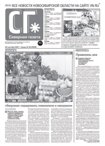 ВСЕ НОВОСТИ НОВОСИБИРСКОЙ ОБЛАСТИ НА САЙТЕ VN.RU 16+ Åæåíåäåëüíàÿ ãàçåòà Ñåâåðíîãî ðàéîíà. Îñíîâàíà 20 èþëÿ 1935 ãîäà ГАЗЕТА ПРОДАЁТСЯ ВО ВСЕХ ПОЧТОВЫХ ОТДЕЛЕНИЯХ РАЙОНА! 29 сентября 2021 г. Среда, № 39 (8928) Северная газета 30 сентября Ночью: +1. Днем: +8. Переменная облачность. Ветер северо-западный, 6 м/с. 1 октября Ночью: +2. Днем: +4. Пасмурно, небольшой дождь. Ветер северозападный, 8 м/с. 2 октября Ночью: +0. Днем: +3. Пасмурно, дождь со снегом. Ветер западный, 6 м/с. 3 октября Ночью: –3. Днем: +1. Переменная облачность, дождь. Ветер западный, 9 м/с. 4 октября Ночью: –3. Днем: +3. Переменная облачность, дождь. Ветер юго-западный, 9 м/с. 5 октября Ночью: +1. Днем: +3 . Пасмурно, дождь со снегом. Ветер западный, 8 м/с. 6 октября Ночью: +1. Днем: +6. Пасмурно, дождь. Ветер западный, 9 м/с. ПОГОДА О ГЛАВНОМ СОБЫТИЕ В 2021 году исполнилось 90 лет со дня рождения Сталя Анатольевича Шмакова, выдающегося советского педагога-новатора, в середине 1950-х годов начинавшего свою педагогическую деятельность в Северной средней школе. К юбилею Сталя Анатольевича «Северная газета» провела конкурс эссе. Итоги конкурса и работы двух победителей — на стр. 5 Фото Р. Акилиной Раиса АКИЛИНА JВкусное, яркое, громкое и певучее традиционное районное мероприятие «Закрома родного края» прошло в последнюю субботу сентября в районном центре. В ярмарке приняли участие восемь сельсоветов, общественные организации, индивидуальные предприниматели и все те, кто захотел поделиться с земляками плодами своих трудов. Были гости и из соседних районов, и из Омской области. По сложившейся традиции каждый сельсовет оформил свою палатку. Большинство постарались придать им праздничный вид: украсили букетами цветов, поделками из овощей, в Верх-Красноярском и Чебаковском сельсовете даже организовали фотозону. Ассортимент продукции был обширным, можно было купить практически все, чем богаты наши закрома. Молочная продукция (домашнее масло, творог, молоко), мясо и мясопродукты, рыба свежемороженая и копченая, рыбные деликатесы, домашние заготовки, ягоды и компоты, лечебные настойки, мед, иван-чай, который с каждым годом становится все более популярным, а еще брусника и клюква —наши знаменитые дикоросы. Постарались наши хозяйки и в приготовлении выпечки — на прилавках было все от домашнего хлеба до искусно украшенных пирогов. Без вкусной покупки не ушел никто! Большим спросом пользовались и саженцы плодовых и декоративных деревьев и кустарников, а также домашних цветов. Также на ярмарке было много изделий, изготовленных своими руками: теплые шерстяные носки и варежки, вязаные игрушки, фигурки из дерева, кружки-половички и многое другое. Все это выполнено с большим мастерством и любовью и будет радовать и согревать душевным теплом тех, кто их приобрел. Хочется отметить хотя бы несколько мастериц: Т.В. Иванова, Е.В. Лебедева, С.С. Бочарова из Остяцка и Д.В. Харитонова из Северного предлагали замечательные вязаные игрушки, З.В. Анищенко и Н.И. Яковлева — вязаные коврики. Но ярмарка — это не только торговля, это и культурная программа. Веселыми и озорными песнями порадовали земляков коллективы культурно-досугового центра. А творческий конкурс «Национальное блюдо» превзошел все ожидания. Мы расскажем о нем отдельно, опубликуем рецепты блюд и советы по приготовлению в одном из ближайших номеров «СГ». Победителями нынешнего мероприяти