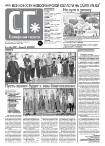 ВСЕ НОВОСТИ НОВОСИБИРСКОЙ ОБЛАСТИ НА САЙТЕ VN.RU 16+ Åæåíåäåëüíàÿ ãàçåòà Ñåâåðíîãî ðàéîíà. Îñíîâàíà 20 èþëÿ 1935 ãîäà ГАЗЕТА ПРОДАЁТСЯ ВО ВСЕХ ПОЧТОВЫХ ОТДЕЛЕНИЯХ РАЙОНА! 6 октября 2021 г. Среда, № 40 (8929) Северная газета 7 октября Ночью: –1. Днем: +6. Пасмурно, небольшой дождь. Ветер западный, 5 м/с. 8 октября Ночью: +3. Днем: +8. Переменная облачность. Ветер западный, 5 м/с. 9 октября Ночью: +2. Днем: +10. Ясно. Ветер юго-западный, 5 м/с. 10 октября Ночью: –1. Днем: +7. Ясно. Ветер юго-западный, 4 м/с. 11 октября Ночью: +1. Днем: +3. Пасмурно. Ветер северо-восточный, 4 м/с. 12 октября Ночью: –2. Днем: +1. Пасмурно. Ветер северо-восточный, 5 м/с. 13 октября Ночью: –2. Днем: +2. Пасмурно. Ветер восточный, 5 м/с. ПОГОДА ПОЗДРАВЛЕНИЕ ДАТА В последние выходные сентября в г. Татарске проходил III этап Кубка Новосибирской области по быстрым шахматам и блицу. В турнире принимали участие 10 шахматистов из Северного. О том, как проходили шахматные баталии и каких результатов добились наши спортсмены, читайте — на стр. 2 Фото Р. Акилиной Раиса АКИЛИНА JВторой год в связи с ограничениями, связанными с распространением коронавирусной инфекции, массовые мероприятия в нашем районе либо отменяются, либо проходят с небольшим количеством участников. К сожалению, открытие Декады пожилых людей не стало исключением. В культурно-досуговом центре собрались несколько десятков людей, как принято говорить в эти праздничные дни, мудрого возраста. Перед началом мероприятия они с удовольствием общались, фотографировались, познакомились с выставками картин и фотографий в фойе. С приветственным словом к собравшимся обратились и.о. главы Северного района, заместитель главы по социальным вопросам Галина Михайловна Кайгородова и председатель районной общественной организации ветеранов — пенсионеров войны, труда, военной службы и правоохранительных органов Григорий Федорович Киселев. Они отметили огромный вклад старшего поколения в развитие нашего государства, важную роль в сохранении исторической памяти и воспитании подрастающего поколения. Галина Михайловна Кайгородова отметила, что 65 ветеранов Великой Отечественной войны, тружеников тыла нашего района награждены памятным нагрудным знаком «Новосибирск — город трудовой доблести». —К сожалению, — отметила Галина Михайловна, — большинство этих ветеранов — люди очень пожилые, и мы не можем подвергать их риску, приглашая на массовое мероприятие. Поэтому нагрудные знаки будут вручены каждому ветерану на дому во время декады. Все прису тствующие смогли узнать имена награжденных: они транслировались на экране на сцене во время приветственного слова. Далее ветеранов ждала праздничная концертная программа от художественных коллективов КДЦ. Хор «Северяночка», фольклорный ансамбль «Добродея», творческие работники Надежда Шаурко, Леонид Добровольский, Сергей Иванов, Марина Муликова и Татьяна Куликова, а также участники детских коллективов Ксения Требуналова, Диана Еремеева, ансамбль «Семейка» доставили удовольствие зрителям хорошими номерами. Доброжелательная атмосфера, теплые поздравления, добрые пожелания порадовали пожилых людей, создали хорошее настроение на весь день. И это только начало декады мудрых. Впереди много интересных и полезных для ветеранов мероприятий. Уважаемые земляки! В первый день октября Новосибирская область вместе со всей с
