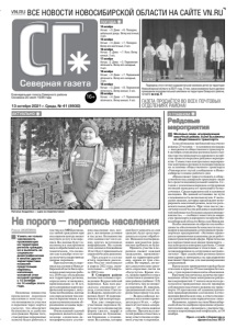 ВСЕ НОВОСТИ НОВОСИБИРСКОЙ ОБЛАСТИ НА САЙТЕ VN.RU 16+ Åæåíåäåëüíàÿ ãàçåòà Ñåâåðíîãî ðàéîíà. Îñíîâàíà 20 èþëÿ 1935 ãîäà ГАЗЕТА ПРОДАЁТСЯ ВО ВСЕХ ПОЧТОВЫХ ОТДЕЛЕНИЯХ РАЙОНА! 13 октября 2021 г. Среда, № 41 (8930) Северная газета 14 октября Ночью: +3. Днем: +6. Пасмурно, небольшой дождь. Ветер восточный, 3 м/с. 15 октября Ночью: +4. Днем: +7. Пасмурно. Ветер юго-восточный, 2 м/с. 16 октября Ночью: -3. Днем: +7. Ясно. Ветер южный, 2 м/с. 17 октября Ночью: -3. Днем: +5. Переменная облачность. Ветер юго-западный, 3 м/с. 18 октября Ночью: +3. Днем: +7. Переменная облачность. Ветер юго-западный, 3 м/с. 19 октября Ночью: +3. Днем: +8. Переменная облачность. Ветер южный, 5 м/с. 20 октября Ночью: +4. Днем: +7. Переменная облачность. Ветер южный, 4 м/с. ПОГОДА О ГЛАВНОМ АКТУАЛЬНО Подведены итоги летней оздоровительной кампании детей на территории Новосибирской области в 2021 году. О том, какое внимание было уделено проведению оздоровительной кампании на территории Северного района, читайте на стр. 4 Фото Алены МАТВЕЕВОЙ Раиса АКИЛИНА JУзнать не только численность проживающих на территории региона граждан, но и выяснить их социальнодемографические и многие другие характеристики позволит предстоящая перепись населения, основной этап которой пройдет с 15 октября по 14 ноября этого года. Основные новшества проведения переписи населения в этом году — это возможность участия в переписи через портал госуслуг, что обеспечит безопасность и удобство для граждан. Кроме того, стандартные переписные пункты будут работать в том числе в МФЦ региона, где любой гражданин при посещении центра может получить услугу и по переписи. Все данные будут заполняться в электронном виде и обрабатываться автоматически, что позволит уже в декабре этого года получить оперативные данные переписи. При подготовке к переписи населения в Новосибирской области была проведена комплексная работа с 2019 года: обследована вся территория региона, определены изменения, произошедшие за 10 лет, актуализирован картографический материал, получены необходимые данные для определения численности переписчиков, в каждом муниципальном образовании созданы переписные комиссии. Очень важной задачей переписи является определение социально-демографического состояния населения: пол, возраст, жилищные условия и так далее. Большинства этих данных нет ни в одних других источниках информации. На основе этих данных в ближайшие 10 лет будут приниматься управленческие решения. Пр е д в а ри т е л ь н ые итоги переписи населения Росстат опубликует в апреле 2022 года, окончательные — в IV квартале 2022 года. В Северном районе полностью готовы к проведению Всероссийской переписи. Как нам рассказала специалист отдела статистики Светлана Жарова, проводить перепись будут 16 переписчиков и три контролера. Как уже говорилось, участники переписи будут одеты в специальную форму (жилет, шарф) и оснащены не бумажными бланками, а планшетами. Все данные, которые они будут заносить со слов граждан, будут сразу передаваться в пункт обработки. Никаких подтверждающих документов переписчик требовать не будет. Принять участие в переписи сможет каждый гражданин, проживающий на территории района, одним из трех способов. Во-первых, он может самостоятельно заполнить опросные листы на «Госуслугах». Кроме этого, можно прийти в отдел статистики в администрации района (кабинет 312) и ответить 