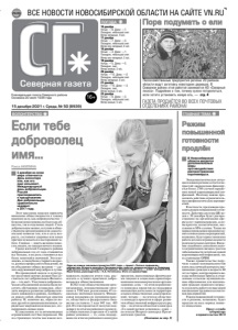 ВСЕ НОВОСТИ НОВОСИБИРСКОЙ ОБЛАСТИ НА САЙТЕ VN.RU 16+ Åæåíåäåëüíàÿ ãàçåòà Ñåâåðíîãî ðàéîíà. Îñíîâàíà 20 èþëÿ 1935 ãîäà ГАЗЕТА ПРОДАЁТСЯ ВО ВСЕХ ПОЧТОВЫХ ОТДЕЛЕНИЯХ РАЙОНА! 15 декабря 2021 г. Среда, № 50 (8939) Северная газета 16 декабря Ночью: —8. Днем: —7. Пасмурно, небольшой снег. Ветер западный, 4 м/с. 17 декабря Ночью: —7. Днем: —3. Пасмурно, небольшой снег. Ветер юго-западный, 6 м/с. 18 декабря Ночью: —3. Днем: —1. Пасмурно, небольшой снег. Ветер юго-западный, 5 м/с. 19 декабря Ночью: —5. Днем: —2. Пасмурно, снег. Ветер южный, 5 м/с. 20 декабря Ночью: —15. Днем: —2. Пасмурно, небольшой снег. Ветер западный, 6 м/с. 21 декабря Ночью: —15. Днем: —3. Пасмурно, снег. Ветер южный, 5 м/с. 22 декабря Ночью: —6. Днем: —3. Пасмурно, небольшой снег. Ветер южный, 5 м/с. ПОГОДА ГЛАВНАЯ ТЕМА ВОЛОНТЁРСТВО JВ Новосибирской области вводятся дополнительные меры противодействия распространению коронавируса. Эпидемиологическая ситуация в нашем регионе остается непростой: еженедельно фиксируется более 2700 случаев заражения новой коронавирусной инфекцией. Поэтому важно продолжать действие ограничительных профилактических мероприятий. В частности, предложено продлить режим повышенной готовности. Действие системыQR-кодов с 20 декабря будет распространено на организации сферы услуг: парикмахерские, салоны красоты, косметические, массажные и SPA-салоны. Также на период проведения предновогодних и новогодних мероприятий, возможно, будет приостановлена работа детских игровых комнат и развлекательных центров. Введение подобного дополнительного ограничения связано с ростом заболеваемости детей как новой коронавирусной инфекцией, так и сезонными ОРВИ. Также правительство поручило главам муниципалитетов взять под личный контроль вакцинацию граждан в возрасте 60 лет и старше, контролировать выезды мобильных бригад в отдаленные сельские муниципальные образования для вакцинации граждан пожилого возраста и усилить работу по выездной вакцинации трудовых коллективов предприятий. Режим повышенной готовности в регионе, возможно, будет продлен на весь период зимнего эпидсезона. Пресс-служба губернатора и правительства НСО Лесохозяйственные предприятия региона 20 районов области ведут заготовку новогодних деревьев. В Северном районе этой работой занимается АО «Северный лесхоз». Подробнее о том, почему нужно поторопиться, если хотите установить живую ель, — стр. 4 Пора подумать о ели Режим повышенной готовности продлён Раиса АКИЛИНА J5 декабря во всем мире отмечается День волонтера или, как его еще называют, Международный день добровольцев. Россия присоединилась к празднованию Дня добровольцев сравнительно недавно: в 2017 году. Этот праздник нацелен привлечь внимание общественности к такому важному делу, как добровольчество — безвозмездная помощь на благо как общества, так и отдельных людей. Стать добровольцем можно, вступив в общественную организацию или самостоятельно помогая тем, кто в силу возраста, состояния здоровья или иных причин нуждается в посторонней заботе. Главное — иметь желание помогать людям, не ожидая ничего взамен. Среди жителей Северного района добровольцев год от года становится все больше, и их роль становится все более заметной и значимой. Это и молодежь, и люди более старшего возраста, разных профессий и убеждений, но их объединяет общее желание — сделать окружающий мир 