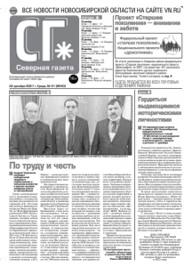 ВСЕ НОВОСТИ НОВОСИБИРСКОЙ ОБЛАСТИ НА САЙТЕ VN.RU 16+ Åæåíåäåëüíàÿ ãàçåòà Ñåâåðíîãî ðàéîíà. Îñíîâàíà 20 èþëÿ 1935 ãîäà ГАЗЕТА ПРОДАЁТСЯ ВО ВСЕХ ПОЧТОВЫХ ОТДЕЛЕНИЯХ РАЙОНА! 22 декабря 2021 г. Среда, № 51 (8940) Северная газета 23 декабря Ночью: —7. Днем: —4. Переменная облачность, небольшой снег. Ветер западный, 14 м/с. 24 декабря Ночью: —7. Днем: +1. Пасмурно, небольшой мокрый снег. Ветер юго-западный, 11 м/с. 25 декабря Ночью: —12. Днем: —8. Пасмурно, небольшой снег. Ветер юго-западный, 8 м/с. 26 декабря Ночью: —15. Днем: —8. Пасмурно, небольшой снег. Ветер южный, 8 м/с. 27 декабря Ночью: —15. Днем: —10. Пасмурно, небольшой снег. Ветер западный, 8 м/с. 28 декабря Ночью: —19. Днем: —13. Облачно, небольшой снег. Ветер южный, 10 м/с. 29 декабря Ночью: —18. Днем: —17. Малооблачно. Ветер юго-западный, 9 м/с. ПОГОДА ДАТА В ПРАВИТЕЛЬСТВЕ НСО ДЛЯ СПРАВКИ Указ Президента РФ №609 «О праздновании 350-летия со дня рождения Петра I» был подписан главой государства Владимиром Путиным 25.10.2018 года, учитывая большое значение реформ Петра I для истории России и в связи с 350-летием со дня его рождения, которое будет отмечаться в 2022 году. Работник ООО «Колос» С.В. Бунчак, глава Северного района С.В. Коростелев и глава КФХ В.А. Нефтис на мероприятии в правительстве НСО JVII парламентские встречи в рамках XXV Новосибирских рождественских образовательных чтений «К 350-летию со дня рождения Петра I: секулярный мир и религиозность» прошли в регионе 17 декабря. Руководство правительства, Законодательного собрания региона, Новосибирской Митрополии Русской Православной Церкви, местного самоуправления и общественных организаций обсудили вопросы развития духовно-нравственных ценностей и сохранения исторической памяти. Мероприятие прошло с соблюдением мер безопасности и в смешанном формате, в том числе в формате онлайн-трансляции. Тематика докладов была посвящена развитию Российской империи при Петре Великом, вопросам развития духовного образования и нравственного развития. Выступающие отметили необходимость усиления нравственных основ воспитания подрастающего поколения. В своем выступлении заместитель председателя правительства региона Игорь Яковлев подчеркнул: «Наша общая задача — бережно хранить историческую память, чтить и гордиться выдающимися историческими личностями Российского государства и церкви. В этом залог устойчивого и прогрессивного развития». С докладом «Петр I и наша историческая память» выступил глава Новосибирской Митрополии Русской Православной Церкви митрополит Новосибирский и Бердский Никодим, обозначив важность воспитания гражданственности и защиты духовно сильного, стабильного государства. Фото их архива администрации Северного района Об итогах реализации в Северном районе федерального проекта «Старшее поколение» национального проекта «Демография» за 2021 год редактору «СГ» рассказала директор Комплексного центра социального обслуживания населения Северного района Елена Крестьянова. Читайте интервью на стр. 4 Проект «Старшее поколение» — внимание и забота Гордиться выдающимися историческими личностями По труду и честь JАндрей Травников наградил победителей трудового соревнования в сельском хозяйстве и вручил лучшим аграриям ключи от автомобилей. Среди награжденных есть и труженики Северного района, о которых мы недавно рассказывали на страницах «СГ». Это глава крес