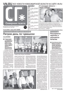 16+ Еженедельная газета Северного района. Основана 20 июля 1935 года ГАЗЕТА ПРОДАЁТСЯ ВО ВСЕХ ПОЧТОВЫХ ОТДЕЛЕНИЯХ РАЙОНА! ВСЕ НОВОСТИ НОВОСИБИРСКОЙ ОБЛАСТИ НА САЙТЕ VN.RU 6 июля 2022 г. Среда, №27 (8968) Северная газета 7 июля Ночью: +14. Днем: +24. Переменная облачность, небольшой дождь. Ветер северный, 4 м/с. 8 июля Ночью: +14. Днем: +24. Переменная облачность, небольшой дождь. Ветер северо-восточный, 5 м/с. 9 июля Ночью: +15. Днем: +26. Переменная облачность, небольшой дождь. Ветер северо-восточный, 5 м/с. 10 июля Ночью: +15. Днем: +27. Облачно, небольшой дождь. Ветер северо-восточный, 4 м/с. 11 июля Ночью: +17. Днем: +29. Переменная облачность. Ветер северо-восточный, 4 м/с. 12 июля Ночью: +19. Днем: +30. Ясно. Ветер северо-восточный, 3 м/с. 13 июля Ночью: +20. Днем: +28. Переменная облачность, дождь. Ветер северный, 3 м/с. ПОГОДА К наградам области — ваши победы! Фото из семейного альбома В Новосибирской области завершились Губернаторские дни, посвященные лучшим выпускникам школ, их педагогам и родителям. На губернаторском приеме выпускников общеобразовательных организаций, получивших аттестат о среднем общем образовании с отличием «Золотые надежды России», побывали трое выпускниковмедалистов Северной средней школы. Все подробности — на стр. 4 Расширяется перечень и улучшается качество JНовосибирская область вошла в топ-10 регионов России по качеству оказания электронных госуслуг. Наш регион, как и в прошлом году, разместился на 6-й строчке, набрав почти 73% из 100% возможных. Совершенствование качества предоставления услуг в электронном виде соответствует реализации национальной цели «Цифровая трансформация». Мониторинг охватил наиболее востребованные массовые социально значимые услуги, опубликованные на портале. При составлении рейтинга эксперты анализировали полноту сведений об услуге, удобство подачи заявления, информирование о статусе рассмотрения заявления в личном кабинете, сокращение количества очных посещений ведомств и др. В перечень массовых социально значимых услуг входит 83 региональные услуги Новосибирской области, а также 87 услуг федеральных ведомств. В дальнейшем ожидается расширение данного перечня. В 2022 году наиболее популярными у граждан продолжают оставаться электронные сервисы по записи к врачу и записи на вакцинацию от COVID-19. Почти мгновенно по запросу из личного кабинета ЕПГУ приходят сведения о трудовой деятельности. Большое количество электронных заявлений по предоставлению денежной выплаты на ребенка в возрасте от трех до семи лет, выдаче справки об отсутствии судимости, получению загранпаспорта. В электронном формате гражданам удобно подавать заявления на получение разрешения на охоту, запись в школу, предоставление пособия на ребенка, предоставление компенсаций расходов на оплату жилого помещения и (или) коммунальных услуг. Пресс-служба губернатора и правительства НСО Петров день по-чувашски Алёна МАТВЕЕВА JСеверный район — малая родина для людей разных национальностей. Среди нас есть русские, татары, немцы, белорусы, латыши, украинцы, чуваши и другие. Одной из многочисленных национальностей являются чуваши. У чувашей очень много обрядовых праздников и традиции, которые они неукоснительно соблюдают на протяжении столетий. В рамках реализации социально значимого проекта «Чуваши в дружбе хороши», руководителем которого является Надежда Тих