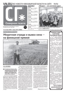 16+ Еженедельная газета Северного района. Основана 20 июля 1935 года ГАЗЕТА ПРОДАЁТСЯ ВО ВСЕХ ПОЧТОВЫХ ОТДЕЛЕНИЯХ РАЙОНА! ВСЕ НОВОСТИ НОВОСИБИРСКОЙ ОБЛАСТИ НА САЙТЕ VN.RU 12 октября 2022 г. Среда, №41 (8982) Северная газета 13 октября Ночью: +4. Днем: +11. Переменная облачность. Ветер южный, 3 м/с. 14 октября Ночью: +2. Днем: +11. Переменная облачность. Ветер юго-восточный, 5 м/с. 15 октября Ночью: +5. Днем: +13. Переменная облачность, небольшой дождь. Ветер южный, 4 м/с. 16 октября Ночью: +4. Днем: +11. Переменная облачность. Ветер западный, 4 м/с. 17 октября Ночью: +2. Днем: +10. Переменная облачность. Ветер северо-восточный, 5 м/с. 18 октября Ночью: +2. Днем: +5. Пасмурно, дождь. Ветер северо-восточный, 6 м/с. 19 октября Ночью: +1. Днем: +4. Пасмурно, дождь. Ветер восточный, 4 м/с. ПОГОДА О том, как прошла декада пожилых людей в Северном районе, читайте на стр. 5 СЕЛЬСКОЕ ХОЗЯЙСТВО Уборочная страда и вывоз сена — на финишной прямой Алёна МАТВЕЕВА JВ хозяйствах Северного района продолжается горячая пора, уборочная кампания подходит к своему завершению. До того момента, как последние комбайны уйдут с полей, осталось совсем немного времени. В этом году в посевную кампанию вступили два индивидуальных предпринимателя и два хозяйства: ИП Глава КФХ «Невтис», КФХ «Цирукин», ООО «Колхоз Наша Родина» и ООО «Колос». Всего под яровой сев хозяйства заняли порядка 4700 гектаров площади, из которых 2845 гектаров — под зерновые культуры. Также в нашем районе появилась новая культура. 200 гектаров в ООО «Колхоз Наша Родина» засеяно горохом. Традиционно самые большие посевные площади — в ООО «Колхоз Наша Родина». Хозяйством засеяно 52% всех посевных площадей района. В ООО «Колос» в этом году решили увеличить площадь посевов на 200 гектаров. По состоянию на 5 октября в хозяйствах убрано 2615 гектаров, из которых 2415 — зерновые культуры, 200 гектаров — горох. Намолочено 53 010 центнеров зерна. Средняя урожайность составила 20,3 центнера с гектара. 5 октября ИП Глава КФХ «Невтис» и КФХ «Цирукин» завершили уборочную в полном объеме. Хочется отметить, что на указанную дату в ООО «Колос» хорошие показатели урожайности— 26 центнеров с гектара. Параллельно с уборочной страдой в районе продолжается вывоз кормов к местам зимовки скота. Всего в двух хозяйствах и в восьми хозяйствах индивидуальных предпринимателей, занимающихся животноводством, по состоянию на 1 октября текущего года содержатся 1745 голов крупного рогатого скота. План по заготовке сена выполнен на 100%. Для того чтобы зимне-стойловый период прошел в штатном режиме, необходимо 5275 тонн сена, и плюс к этому хозяйства района заготовили солому и фураж. Среди личных подсобных хозяйств солома в этом году также пользуется большим спросом. О том, как обстоят дела в хозяйстве ИП Глава КФХ «Невтис», с какими успехами он подходит к завершению очередного нелегкого года, мы поговорили с Вячеславом Анатольевичем. Уборочную кампанию молодой фермер завершил еще в конце сентября. Результатами он доволен. — В этом году на посевную кампанию я приобрел новый сорт пшеницы «Элемент-22», — отмечает Вячеслав Анатольевич. — Этот сорт в нашем регионе используется впервые. Изначально у меня на него были большие надежды, и мои ожидания оправдались. В среднем урожайность вышла 22 центнера с гектара. Это хороший сорт пшеницы, ближе к позднеспелому. Через месяц буду закупать еще одну тонну семян хорошего