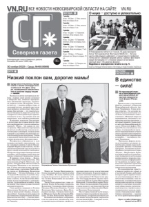 16+ Еженедельная газета Северного района. Основана 20 июля 1935 года ГАЗЕТА ПРОДАЁТСЯ ВО ВСЕХ ПОЧТОВЫХ ОТДЕЛЕНИЯХ РАЙОНА! ВСЕ НОВОСТИ НОВОСИБИРСКОЙ ОБЛАСТИ НА САЙТЕ VN.RU 30 ноября 2022 г. Среда, №48 (8989) Северная газета 1 декабря Ночью: –26. Днем: –17. Ясно, солнечно. Ветер юго-западный, 6 м/с. 2 декабря Ночью: –22. Днем: –17. Ясно, солнечно. Ветер юго-западный, 7 м/с. 3 декабря Ночью: –25. Днем: –17. Переменная облачность. Ветер западный, 2 м/с. 4 декабря Ночью: –25. Днем: –19. Переменная облачность. Ветер юго-западный, 6 м/с. 5 декабря Ночью: –23. Днем: –19. Переменная облачность. Ветер юго-западный, 11 м/с. 6 декабря Ночью: –18. Днем: –14. Пасмурно, небольшой снег. Ветер юго-западный, 10 м/с. 7 декабря Ночью: –15. Днем: –13. Пасмурно, снег. Ветер юго-западный, 12 м/с. ПОГОДА В Новосибирской области в течение 12 дней проходили более 160 мероприятий Фестиваля NAUKA 0+. На базе центра образования цифрового и гуманитарного профилей «Точка роста» Северной средней школы в рамках фестиваля среди обучающихся 7-х классов прошел естественнонаучный квест «По дорогам физики». Подробнее о мероприятиях читайте на стр. 4. ДАТА Низкий поклон вам, дорогие мамы! JСреди многочисленных праздников в нашем календаре есть особенный. Это День матери, посвященный самым близким и дорогим сердцу людям — мамам. Великая и святая материнская любовь с первых дней жизни согревает и оберегает нас, помогает преодолевать жизненные невзгоды, надеяться, верить в успех. И неважно, сколько нам лет, —мамино доброе слово, ее ласковый взгляд, мудрый совет нужны и ребенку, и взрослому. Празднование Дня матери — это замечательная возможность выразить свою благодарность и безграничную признательность за все, что делают для нас наши мамы, за их любовь и понимание. В пятницу, накануне Дня матери, в культурно-досуговом центре прошло мероприятие с трогательным названием: «Мама… чье сердце не знает границ». Праздничная программа включала в себя мастер-классы по изготовлению сувениров, награждение матерей за достойное воспитание детей и концертную программу. Также к празднику были подготовлены выставки рукоделия и фотовыставки. Поздравляя собравшихся в зале женщин-матерей с праздником, глава Северного района Сергей Владимирович Коростелев отметил, что великий материнский труд всегда был и будет самым почетным и значимым. Он вручил благодарственные письма матерям, чей бескорыстный труд уже принес и приносит прекрасные плоды. И первая в этом списке — Валентина Ивановна Альмухаметова. Она мама восьми дочерей. Много сил, терпения, материнской заботы вложила Валентина Ивановна в их воспитание. Сейчас шестеро из них уже имеют свои семьи, а младшие Люба и Вера учатся в г. Куйбышеве. Валентина Ивановна — богатая бабушка, у нее 11 внуков! И каждому из детей и внуков она уделяет внимание, дарит любовь и заботу. А еще Валентина Ивановна всегда позитивна и жизнерадостна, трудолюбивая хозяйка. А еще активная участница художественной самодеятельности. Глава района наградил и Галину Николаевну Кулакову, которая воспитала троих детей: Андрея, Александра и Ольгу. Сыновья и дочь выросли достойными и порядочными людьми. Доказательство тому — участие сыновей в специальной военной операции на Украине. Много лет Галина Николаевна работала медицинской сестрой в детском саду «Улыбка». Ее очень любили дети и уважали коллеги и родители. Сейчас Гал