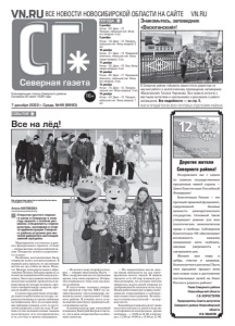 16+ Еженедельная газета Северного района. Основана 20 июля 1935 года ГАЗЕТА ПРОДАЁТСЯ ВО ВСЕХ ПОЧТОВЫХ ОТДЕЛЕНИЯХ РАЙОНА! ВСЕ НОВОСТИ НОВОСИБИРСКОЙ ОБЛАСТИ НА САЙТЕ VN.RU 7 декабря 2022 г. Среда, №49 (8990) Северная газета 8 декабря Ночью: –20. Днем: –15. Пасмурно, небольшой снег. Ветер юго-западный, 6 м/с. 9 декабря Ночью: –18. Днем: –13. Пасмурно, небольшой снег. Ветер западный, 6 м/с. 10 декабря Ночью: –21. Днем: –13. Переменная облачность, небольшой снег. Ветер северо-западный, 5 м/с. 11 декабря Ночью: –26. Днем: –19. Ясно. Ветер северо-западный, 2 м/с. 12 декабря Ночью: –26. Днем: –17. Переменная облачность, небольшой снег. Ветер юго-западный, 4 м/с. 13 декабря Ночью: –16. Днем: –12. Пасмурно, сильный снег. Ветер северный, 5 м/с. 14 декабря Ночью: –24. Днем: –13. Пасмурно, небольшой снег. Ветер северный, 7 м/с. ПОГОДА В Северном районе побывала заместитель директора по научной работе и экологическому просвещению заповедника «Васюганский» Татьяна Черникова. Она провела встречи с местными жителями и школьниками и рассказала о работе заповедника. Все подробности — на стр. 5. СОБЫТИЕ Все на лёд! Алёна МАТВЕЕВА JОткрытие крытого ледового катка в Северном в этом году прошло с особым размахом. Специалисты отдела культуры, молодежи и спорта администрации Северного района устроили для жителей райцентра настоящий зимний праздник. Мероприятие состоялось в рамках федерального проекта «Спорт —норма жизни» всероссийской акции «Открытие зимнего спортивного сезона». Особенно долгожданным было открытие катка для школьников. В первый день проката от желающих встать на лед отбоя не было. Педагог Центра дополнительного образования Полина Лебедева провела со всеми желающими небольшую разминку. Было предложено выполнить несколько заданий: прокатиться паровозиком по четыре человека, проехать змейкой вокруг конусов, провести шайбу клюшкой. Создать праздничную атмосферу помогли работники культуры, перевоплотившись в героев любимых мультфильмов. Кто-то сегодня впервые примерил коньки, а кто-то достаточно уверенно стоит на льду. В любом случае положительные эмоции получили все: и те, кто прокатился, и те, кто был в группе поддержки. —На каток я хожу второй год подряд, — говорит школьница Настя. — Мы с подружками весело проводим время, нам очень нравится. Открытия площадки в этом году мы ждали особенно. В подготовке ледового покрытия приняли участие МКУ по хозяйственному обслуживанию муниципальных учреждений Северного района. В течение всего сезона именно они будут проводить обслуживание катка. Администратор при хоккейной площадке Дмитрий Багров отмечает, что в день открытия был особенный ажиотаж: — По нормативам мы не имеем права выпускать на лед одновременно много людей. В нашем прокате есть 60 пар коньков разных размеров, но сегодня многим пришлось ждать своей очереди из соображения безопасности на льду. Наши работники регулярно напоминали отдыхающим о соблюдении скоростного режима. Безопасность наших посетителей—на первом месте. Хоккейная площадка ждет своих посетителей шесть дней в неделю: со вторника по воскресенье, кроме пятницы— с 14:00 до 21:00; в пятницу с 12:00 до 14:00 и с 15:00 до 21:00. Знакомьтесь, заповедник «Васюганский»! Фото А. Матвеевой На открытии крытого катка было многолюдно и весело Дорогие жители Северного района! Поздравляем вас с одним из главных государственных празднико