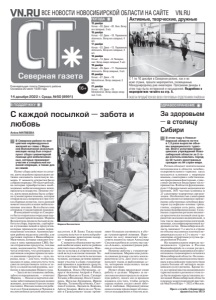 16+ Еженедельная газета Северного района. Основана 20 июля 1935 года ГАЗЕТА ПРОДАЁТСЯ ВО ВСЕХ ПОЧТОВЫХ ОТДЕЛЕНИЯХ РАЙОНА! ВСЕ НОВОСТИ НОВОСИБИРСКОЙ ОБЛАСТИ НА САЙТЕ VN.RU 14 декабря 2022 г. Среда, №50 (8991) Северная газета 15 декабря Ночью: –26. Днем: –20. Ясно. Ветер юго-западный, 3 м/с. 16 декабря Ночью: –22. Днем: –18. Переменная облачность. Ветер юго-западный, 4 м/с. 17 декабря Ночью: –22. Днем: –13. Переменная облачность. Ветер юго-западный, 4 м/с. 18 декабря Ночью: –14. Днем: –9. Пасмурно, снег. Ветер северо-западный, 5 м/с. 19 декабря Ночью: –26. Днем: –11. Переменная облачность. Ветер северный, 3 м/с. 20 декабря Ночью: –27. Днем: –19. Малооблачно. Ветер северный, 2 м/с. 21 декабря Ночью: –26. Днем: –16. Малооблачно. Ветер северо-западный, 5 м/с. ПОГОДА С 1 по 10 декабря в Северном районе, как и во всей стране, прошли мероприятия, посвященные Международному дню инвалидов. Программа декады в этом году была интересной и насыщенной. Подробнее о мероприятиях читайте на стр. 5. В ПОДДЕРЖКУ С каждой посылкой — забота и любовь Алёна МАТВЕЕВА JВ Северном районе по инициативе неравнодушных жителей во главе с Мариной Волокитиной несколько месяцев назад был открыт пункт сбора гуманитарной помощи для мобилизованных, которые принимают участие в специальной военной операции, а также для их семей. Пункт сбора действует и сегодня, жители района продолжают активно оказывать посильную помощь. С момента открытия было собрано порядка 350 тысяч рублей, на которые приобретались необходимые мобилизованным вещи, продукты и лекарства. Помимо этого, жителями района была собрана гуманитарная помощь, которая отправлялась напрямую в три точки сборных пунктов, где в данный момент находятся наши мобилизованные земляки. Всего было семь отправок гуманитарной помощи. В минувший четверг из Северного была отправлена очередная партия гуманитарной помощи. Марина Волокитина провела большую работу по сбору, перевозке, сортировке и упаковке вещей и продуктов, которые приносили наши неравнодушные земляки. Администрация района выделила автобус для доставки партии в Новосибирск. Мужчинам, которые ожидают отъезда в зону проведения СВО, были отправлены продукты, теплые вещи, медикаменты. Отдельно хочется отметить, что для наших защитников северяне принесли много домашних продуктов — сала, варенья, меда — для того, чтобы там, вдалеке от дома, они хоть чуть-чуть смогли почувствовать тепло и заботу со своей малой родины, особенно в преддверии Нового года. — Здесь во все вложены любовь, забота и переживания, — отмечает Марина. —Носки и перчатки связаны заботливыми руками наших женщин, дети пишут трогательные послания. Письма написали ребята из сел Гражданцево и Чуваши и воспитанники детской школы искусств им. А.И. Баева. Также наши солдаты получат от жителей района небольшие новогодние подарки — порядка 50 штук. С момента объявления частичной мобилизации жители района действительно объединились. Многие не остались в стороне и внесли свой вклад в оказание помощи. Хочется отдельно отметить несколько человек, которые активно принимают участие в сборе гуманитарной помощи и денежных средств, это Валентина Петрова, Любовь Кошарная, Ольга Путинцева, супруги Акилины Андрей и Раиса, ПримакМихаил и Елена, Сихварт Татьяна и Владимир, Ольга Гламаздина, Наталья Лихварева, Ирина Орлова, Татьяна Кулачкова, Светлана Голдина, Люд