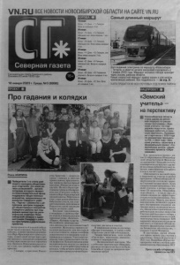 VN .RU ВСЕ НОВОСТИ НОВОСИБИРСКОЙ области на сайте v n . ru Еженедельная газета Северного района. Основана 20 июля 1935 года 18 января 2023 г. Среда, №3 (8996) ПОГОДА * 19 января Ночью: -1 4 . Днем: -1 1 . Пасмурно. Ветер юго-западный, 4 м/с. 20 января Ночью: -1 6 . Днем: -1 3 . Пасмурно, небольшой снег. Ветер северный, 1 м/с. 21 января Ночью: -1 6 . Днем: -1 2 . Пасмурно, небольшой снег. Ветер северо-западный, 2 м/с. 22 января Ночью: -1 4 . Днем: -1 0 . Пасмурно, снег. Ветер северо-западный, 3 м/с. 23 января Ночью: -2 1 . Днем: -9 . Пасмурно, небольшой снег. Ветер юго-западный, 4 м/с. 24 января Ночью: -2 6 . Днем: -2 3 . Переменная облачность. Ветер юго-западный, 4 м/с. 25 января Ночью: -2 8 . Днем: -2 2 . Ясно. Ветер юго-западный, 3 м/с. Самый длинный маршрут Долгожданная электричка по маршруту «Новосибирск - Татарок» и обратно начала ежедневно курсировать с 1 января 2023 года. Маршрут экспресс-поезда проходит через восемь районов области. Новый скоростной маршрут крайне важен и для многих прилегающих районов. Все подробности — на стр. 3. ГАЗЕТА ПРОДАЁТСЯ ВО ВСЕХ ПОЧТОВЫХ ОТДЕЛЕНИЯХ РАЙОНА! ВЕШ аИЕД НАЦПРОЕКТ У ч астни к иIпраздника?« ёождё^врТв|крулЯдрузчэй »] Про гадания и колядки Раиса АКИЛИНА Ш Победители 1-го этапа рай- онного конкурса обществен ных стартапов «Со мной ре гион успешнее#3», органи заторами которого являют ся благотворительный фонд поддержки общественных инициатив, направленных на развитие Северного райо на, «Тартас» совместно с ре сурсным центром поддерж ки общественных инициатив Северного района при под держке министерства реги ональной политики Ново сибирской области и адми нистрации Северного райо на приступили к реализации проектов. Автор проекта «Ав нашей избуш ке вот такие игрушки» ЛюдмилаТря- сейкина, художественный руководи тель Верх-Красноярского дома куль туры, ставит своей целью через пре емственность поколений сохранение и популяризацию русских народных игр. Людмила Николаевна рассказа ла о том, как прошло первое меро приятие: — 7 января, в праздник Рожде ства Христова — одного из самых главных и светлых православных праздников, мы провели фольклорный праздник «Рождество в кругу друзей». На него были при глашены члены клуба выход ного дня «Светелка» и обуча ющиеся Верх-Красноярской средней школы. Ребята не из книг, а при живом общении с бабушками узнали, как стар шее поколение праздновало Рождество, какие традиции дошли до наших дней. Ведущие предложили, а молодежь с удовольстви ем играла в зимние русские народные игры: «Колечко», «Пирог», «Кузовок» идругие. Но особенно заинтересова лись девушки (да и мальчишки тоже!) гаданиями. Женщины старшего по коления рассказали, как они гадали в детстве и юности, какая атмосфера таинственности и ожидания чуда со провождала гадания. Участники по сиделок тоже с удовольствием погада ли на фасоли. Каждое предсказание воспринималось весело, со смехом и шутками. Азатем ребята разучивали колядки, чтобы вечером пройти по се лу и пожелать односельчанам благо- Гадаем: чтоГтам выпадет? получия, достатка и счастья. В завершение вечера по русскому обычаю и молодежь, и члены клуба «Светелка» пили чай и беседовали. Тамара Бридигина, член клуба «Светелка», поделилась впечатле ниями от мероприятия: — Великолепный праздник. Мы с ребятами замечательно общались, разницы в возрасте как будто не было. Спасибо от души за прекрасно про веденное время! «Земский учи
