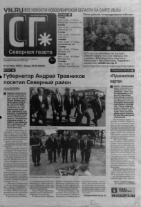 VN .RU ВСЕ НОВОСТИНОВОСИБИРСКОЙ области на сайте vn . ru Еженедельная газета Северного района. Основана 20 июля 1935 года 6 сентября 2023 г. Среда, №36 (9029) ПОГОДА * 7 сентября Ночью: + 5 . Днем: + 1 5 . Облачно, небольшой дождь. Ветер южный, 1 м/с. 8 сентября Ночью: + 6 . Днем: + 1 6 . Малооблачно. Ветер восточный, 1 м/с. 9 сентября Ночью: + 6 . Днем: + 1 6 . Ясно. Ветер южный, 2 м/с. 10 сентября Ночью: + 5 . Днем: + 1 7 . Пасмурно. Ветер юго-восточный, 3 м/с. 11 сентября Ночью: + 8 . Днем: + 1 9 . Облачно. Ветер южный, 3 м/с. 12 сентября Ночью: + 7 . Днем: + 2 0 . Пасмурно. Ветер южный, 2 м/с. 13 сентября Ночью: + 1 0 . Днем: + 2 2 . Малооблачно. Ветер южный, 2 м/с. Сёла района отпраздновали юбилеи 2023 год стал юбилейным как для всего Северного района, так и для отдельных сел и деревень. Юбилейные даты отметили в Новотроицке и Верх-Красноярке. Подробнее о мероприятиях читайте на стр. 5 ГАЗЕТА ПРОДАЁТСЯ ВО ВСЕХ ПОЧТОВЫХ ОТДЕЛЕНИЯХ РАЙОНА! ВИЗИТ $ • В ПРАВИТЕЛЬСТВЕ НСО ^ Губернатор Андрей Травников посетил Северный район Алёна МАТВЕЕВА В Первым объектом по- сещения главой реги она стал Парк культу ры и отдыха. Данный объект введен в экс плуатацию в 2019 го ду. Замглавы адми нистрации по градо строительству, ком мунальному хозяй ству, транспорту и зе мельным отношениям Александр Шастов до ложил о реализации проекта «Комфортная городская среда», а также о том, какие ра боты проведены в до полнение к проекту после 2019 года. Андрей Травников с де легацией посетил Мону мент Славы, где возложил цветы к Вечному огню. Уча стие в мероприятии приняли юнармейцы Центра дополни тельного образования. ВСеверной средней школе глава региона посетил «Точ ку роста». Было отмечено, что в Се верной средней школе обуча ются 643 ученика. «Точка ро ста» создана на базе Северной и Бергульской средних школ. 12 сентября планируется от крытие «Точки роста» на ба зе Верх-Красноярской сред ней школы. Педагоги школы рассказали о достижениях об учающихся и о ближайших планах. Андрей Травн иков также посетил открытие детской мо дельной библиотеки. Губер натор поздравил северян с этим значимым событием и отметил, что библиотека за жила по-новому: —Модельная библиотека — это не только новые сте ны, — сказал губернатор, — это новое оборудование, но вая жизнь. Библиотеки пре вращаются из мест хранения книг в места для общения. Глава региона пообщал Визит губернатора в Северный район Возложение цветов на Монументе Славы ся с первыми посетителями библиотеки. Ребята расска зали губернатору о том, что уже успели посмотреть и что 1 больше понравилось. Также Андрей Травников провел встречу с военнослу- жащими и их семьями. В продолжение рабочей поездки губернатор Андрей Травников и председатель За конодательного собрания Ан дрей Шимкив пообщались с местным активом района. Встреча состоялась в зри тельном зале культурно-до сугового центра. Глава реги она рассказал собравшимся о цели своего визита —посмо треть, как развивается рай он, исполняются ранее при нятые решения, реализуются поставленные задачи, а так же обозначить новые вопро сы и цели. (Продолжение на стр. 3) «Пушкинская карта» 1 Проект «Пушкинская ™ карта» пользуется по пулярностью у ново сибирцев: 186,5 тыся чи школьников и сту дентов Новосибир ской области получи ли карту. По результа там федерального мо ниторинга Новосибир ская область возглав ляет список лидеров среди сибирских реги онов по охвату а