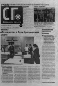 VN.RU ВСЕ НОВОСТИ НОВОСИБИРСКОЙ о б л а с т и н а с ай те v n . ru Еженедельная газета Северного района. Основана 20 июля 1935 года 20 сентября 2023 г. Среда, № 38 19031) ПОГОДА ^ 21 сентября Ночью: + 9 . Днем: + 1 8 . Облачно, небольшой дождь. Ветер северный, 2 м/с. 22 сентября Ночью: + 7 . Днем: + 1 8 . Пасмурно, без осадков. Ветер западный, 3 м/с. 23 сентября Ночью: + 9 . Днем: + 2 0 . Пасмурно, без осадков. Ветер юго-западный, 3 м/с. 24 сентября Ночью: + 1 2 . Днем: + 1 6 . Пасмурно, небольшой дождь. Ветер западный, 3 м/с. 25 сентября Ночью: + 7 . Днем: + 1 1 . Пасмурно, небольшой дождь. Ветер северный, 2 м/с. 26 сентября Ночью: + 4 . Днем: + 1 1 . Пасмурно, без осадков. Ветер северо-западный, 1 м/с. 27 сентября Ночью: + 5 . Днем: + 1 3 . Пасмурно, без осадков. Ветер юго-восточный, 2м/с. Помощь от учеников Обучающиеся 11 класса Северной средней школы совместно с ребятами из школьного юнармейского отряда «Дети России» и бойцами волонтерского отряда «Бумеранг» помогают семьям участников СВО выполнять работы по хозяйству. Подробнее об этом читайте на 2~й странице. ГАЗЕТА ПРОДАЁТСЯ ВО ВСЕХ ПОЧТОВЫХ ОТДЕЛЕНИЯХ РАЙОНА! НАЦПРОЕКТ НОВОСТИ РЕГИОНА Образование по-новому К В Новосибирской области * созданы условия для записи детей более чем на семь ты сяч дополнительных образо вательных программ, опубли кованных в ГИС «Навигатор дополнительного образова ния Новосибирской области», и работа по актуализации программ допобразования в регионе будет продолжена. Вопросы текущей деятельности образовательных организаций региона к новому 2023-2024 учебному году, организации питания обучающихся, работы советников директоров по воспитанию и взаимодействию с детскими общественными объединениями, готовности программ дополнительного образования детей к новому учебному году и другие рассмотрены в правительстве региона на заседании опер- штаба по образованию, прошедшего под председательством заместителя губернатора Сергея Нелюбова. В ходе заседания отмечено, что приоритетами правительства при организации нового учебного года остаются жизнь и здоровье детей. Также важнейшими вопросами являются организация горячего питания и подвоза школьников, обеспечение антитерро- ристической, санитарно-эпидемиологической безопасности. Приоритетом в период межсезонья стала подготовка к отопительному периоду. Как доложил заместитель министра образования Новосибирской области Владимир Щукин, в настоящее время ведется работа по подготовке к старту занятий допобразовация —запись детей, определение расписания, занятия стартуют с I октября. Также отмечалось, что в школах региона с I сентября 2023 года начали работу советники директоров по воспитанию и взаимодействию с детскими общественными объединениями. В настоящее время подготовлены системы отопления в270 образовательных организациях региона. С 1 сентября 2023 года организован ежедневный контроль подвоза детей в школы области. Продолжается и работа по организации льготного питания обучающихся 5 - 11-х классов — детей участников СВО . Страницу подготовила Алена Матвеева Новый центр расширит возможности учеников в освоении предметов. В Верх-Красноярской сред ней школе 13 сентября со стоялось знаменательное событие — в рамках феде рального проекта «Совре менная школа» нацпроек та «Образование» открыл ся «Центр образования есте ственно-научной и техноло гической направленностей «Точка рос