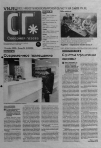 VN.RU ВСЕ НОВОСТИ НОВОСИБИРСКОЙ ОБЛАСТИ НА САЙТЕ VM.RU 15 ноября 2023 г. Среда, № 46 (9039) ПОГОДА 16 ноября Ночью: -1. Днем: +2. Облачно, без осадков. Ветерюжный,3 м/с. 17 ноября Ночью: +2. Днем: +4. Пасмурно, без осадков. Ветер юго-западный, 4 м/с. 18 ноября Ночью: +2. Днем: +4. Пасмурно, снег с дождем. Ветерюго-западный, 2 м/с. 19 ноября Ночью: -4. Днем: 0. Пасмурно,небольшой мокрыйснег. Ветерсеверный, 3 м/с. 20 ноября Ночью: -7. Днем: -4. Малооблачно, без осадков. Ветер северо-восточный, 2 м/с. 21 ноября Ночью: -8. Днем: -5. Малооблачно, без осадков. Ветер юго-западный 2 м/с. 22 ноября Ночью:-5. Днем: 0. Пасмурно, без осадков. Ветер юго-западный, 3 м/с. Мы вместе Так назывался фестиваль национальных культур, который прошел в Северном районе в рамках празднования Дня народного единства. Подробнее о мероприятии читайте на стр. 5 ГАЗЕТА ПРОДАЁТСЯ ВО ВСЕХ ПОЧТОВЫХ ОТДЕЛЕНИЯХ РАЙОНА! СОБЫТИЕ ЗАКСОБРАНИЕ НСО ^ Современное помещение После ремонта почта принимает клиентов С учётом ограничений здоровья Алёна МАТВЕЕВА В Н овосибирской об ласти полным хо дом идет м асш табная про грам м а ремонтов сел ьс ких почтовых о т дел ений . «Почта России» прово дит модернизацию по пору чению президента РФ Влади мира Путина и при поддерж ке партии «Единая Россия». Обновление касается сель ских офисов в отдаленных и труднодоступных территори ях, чтобы повысить доступ ность услуг и качество обслу живания. В 2022 году по этой про грамме в Новосибирской об ласти отремонтировано четы ре отделения, а уже в 2023 го ду «Почта России» модерни зирует в регионе 30 сельских отделений. Одно из них — в селе Северное. Здание, в котором распо лагается отделение, построе но в 1978 году. За 45-летнюю историю здесь, конечно, тре бовался ремонт и обновление помещения. Капитальный ре монт начался летом, а в кон це октября в обновленном от делении уже приняли первых клиентов. Отремонтирована кровля здания, фасад, вход ная группа, обеспечив доступ ность для маломобильных клиентов. В полном объеме проведена замена внутренних инженерных сетей (электри чество, водоснабжение, ото пление), окна, оборудованы санитарные узлы, обновлена мебель для клиентов и рабо чие зоны для сотрудников, а также установлен бойлер для горячей воды, кондиционеры и видеокамеры. Стоимость работ составила около 10 миллионов рублей. Офис после ремонта транс формировался в современное, красивое, удобное и функци ональное отделение —много- профильный центр оказания самых разных услуг, начиная от оформления подписки на издания и отправки посылок и корреспонденции, заканчи вая покупкой необходимых продуктов. Кроме того, в мо дернизированных отделени ях клиенты смогут подтвер дить или восстановить учет ную запись на портале госус- луг, а также самостоятельно измерить основные показа тели здоровья. Сотрудники отделения и посетители в полной мере оценили обновленное поме щение. —Очень все понравилось, поделилась своими впечат лениями посетительница по чтового отделения. — Здесь хорошее обслуживание, ока зывают широкий спектр ус луг, а еще все стало красиво и уютно. Меры поддержки ин валидов рассмотрел комитет Законода тельного собрания Но восибирской области по социальной полити ке, здравоохранению, охране труда и занято сти населения. Председатель комитета Игорь Гришунин представил во втором чтении законопро ект «О внесении изменения в статью 7 Закона Новосибир ской 