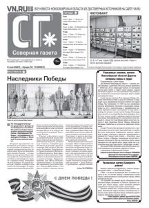 16+ Еженедельная газета Северного района. Основана 20 июля 1935 года ГАЗЕТА ПРОДАЁТСЯ ВО ВСЕХ ПОЧТОВЫХ ОТДЕЛЕНИЯХ РАЙОНА! 8 мая 2024 г. Среда, № 19 (9064) Северная газета 9 мая Ночью: 0. Днем: +7. Облачно, без осадков. Ветер северный, 3 м/с. 10 мая Ночью: –2. Днем: +10. Малооблачно, без осадков. Ветер северный, 4 м/с. 11 мая Ночью: +1. Днем: +15. Облачно, без осадков. Ветер западный, 6 м/с. 12 мая Ночью: +3. Днем: +13. Облачно, небольшой дождь. Ветер северный, 3 м/с. 13 мая Ночью: +4. Днем: +14. Малооблачно, без осадков. Ветер западный, 4 м/с. 14 мая Ночью: +9. Днем: +16. Пасмурно, без осадков. Ветер северо-западный 4 м/с. 15 мая Ночью: +9. Днем: +17. Малооблачно, без осадков. Ветер западный, 3 м/с. ПОГОДА ВСЕ НОВОСТИ НОВОСИБИРСКА И ОБЛАСТИ ИЗ ДОСТОВЕРНЫХ ИСТОЧНИКОВ НА САЙТЕ VN.RU Со 2 по 7 мая в фойе КДЦ прошла выставка «Герои с вечно русским сердцем». ФОТОФАКТ ФЕСТИВАЛЬ Наследники Победы J На площадке культур- но-досугового центра се- ла Северного состоялся XII районный фестиваль военно-патриотической песни «Наследники По- беды», посвященный го- довщине Победы в Вели- кой Отечественной вой- не. Открыли праздничное ме- роприятие участники хорово- го коллектива «Акварель» Се- верной средней школы под ру- ководством Натальи Баннико- вой с песней «Россия — это мы». Песня во все времена была вер- ной подругой и помощницей сол- дат. Она вселяла бодрость, буди- ла в сердцах отвагу, воодушев- ляла на подвиги. У каждой пес- ни, как у любого человека, своя судьба, своя биография. И в пред- дверии праздника Великой По- беды со сцены культурно-досу- гового центра звучали знакомые всем мелодии и слова тех песен, которые были, есть и будут не- отъемлемым духовным богат- ством России. Участие в фестивале воен- но-патриотической песни при- няли солисты и коллективы дет- ской школы искусств, детского сада «Сказка», Северной сред- ней школы, культурно-досугово- го центра, Бергульского, Биазин- ского, Остяцкого, Чувашинско- го, Гражданцевского, Витинско- го, Новотроицкого, Верх-Крас- ноярского, Останинского, Удар- ницкого и Большекуликовско- го домов культуры. Такие ком- позиции, как «Вальс Победы», «Отмените войну», «Солдатики», «Не женщины придумали вой- ну», «Письма фронтовые», «Это просто война» и многие другие позволили зрителям окунуться в те воспоминания, которые слы- шали от своих дедов и прадедов, ведь страшная война своим чер- ным крылом коснулась практи- чески каждой советской семьи. Участники и зрители фестива- ля почтили память всех погиб- ших минутой молчания. Наша Родина имеет богатую историю. Много периодов было связано с войнами, когда народу русскому необходимо было за- щищать свое Отечество. Но ка- ждая страница истории вызы- вает у нас неподдельное чувство гордости. Очень тяжело далась нашим дедам и прадедам Побе- да. Теперь каждую весну в нашей стране отмечается самый свет- лый праздник — День Победы. С праздником, дорогие земляки! Алёна МАТВЕЕВА Уважаемые земляки, жители Новосибирской области! Дорогие ветераны войны и труда! Поздравляем вас с Днем Победы! Для жителей Новосибирской области — региона вои- нов-сибиряков, защитников Отечества, региона тружеников — 9 Мая было, есть и всегда будет особым, по-настоящему святым днем. Память о подвиге наших предков, старших поколений, на фронте и в тылу защитивших нашу Родину и все человечество от нацистских агрессоров, живет в каждой новосибирской семье. В этом году мы отмеч