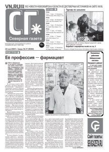 16+ Еженедельная газета Северного района. Основана 20 июля 1935 года ГАЗЕТА ПРОДАЁТСЯ ВО ВСЕХ ПОЧТОВЫХ ОТДЕЛЕНИЯХ РАЙОНА! 22 мая 2024 г. Среда, № 21 (9066) Северная газета 23 мая Ночью: +7. Днем: +19. Малооблачно, небольшой дождь. Ветер западный, 4 м/с. 24 мая Ночью: +8. Днем: +20. Малооблачно, дождь, гроза. Ветер северный, 3 м/с. 25 мая Ночью: +7. Днем: +20. Малооблачно, без осадков. Ветер западный, 3 м/с. 26 мая Ночью: +11. Днем: +16. Пасмурно, небольшой дождь. Ветер северный, 3 м/с. 27 мая Ночью: +9. Днем: +17. Пасмурно, дождь. Ветер северный, 3 м/с. 28 мая Ночью: +8. Днем: +17. Облачно, небольшой дождь. Ветер северный 3 м/с. 29 мая Ночью: +9. Днем: +18. Малооблачно, без осадков. Ветер западный, 4 м/с. ПОГОДА Сайт газеты: SEVGAZETA.RU ВСЕ НОВОСТИ НОВОСИБИРСКА И ОБЛАСТИ ИЗ ДОСТОВЕРНЫХ ИСТОЧНИКОВ НА САЙТЕ VN.RU В Биазинском ДК состоялся сборный шашечной турнир среди девушек и юношей. Подробнее о мероприятии читайте на стр. 2 Турнир по шашкам ЛЮДИ ТРУДА Её профессия — фармацевт J Работа фармацев- та не просто сложная, она очень ответствен- ная. Специалисты этой сферы — важная часть системы здравоохра- нения любой цивили- зованной страны. Не- даром у них и профес- сиональный праздник свой есть — День фар- мацевтического ра- ботника в России, ко- торый отмечается 19 мая. В аптечном пункте ООО «Тамара» трудится Людмила Кузьменкова — фармацевт с огромным стажем и опытом работы. Ее знает подавляющее большинство жителей Север- ного района. «Людмила Егоровна рабо- тает в нашем коллективе уже 10 лет. До того, как прийти к нам, она не один десяток лет отработала в государственной аптеке, пока ее не закрыли, — рассказывает заведующая ап- течным пунктомНаталья Аве- рьянова. —Про таких, как она, говорят, что человек на своем месте. Ей вполне можно до- вериться как грамотному со- труднику». Ведь и впрямь можно. Об- щий фармацевтический стаж у Людмилы Егоровны — це- лых 48 лет, а это почти полвека! Поскольку жизнь и наука не стоят на месте, появляют- ся новые лекарственные сред- ства, фармацевт всегда должен держать руку на пульсе. Поэ- тому каждые пять лет они про- ходят обязательную специали- зацию. Кроме того, есть груп- па лекарств, на отпуск кото- рых у фармацевта должен быть специальный допуск, оформ- ляемый органами внутренних дел. Не надо забывать, что фар- мацевт работает с людьми, причем чаще всего с больны- ми. С разными характерами, своими проблемами и претен- зиями, порой непониманием, что фармацевт не имеет права продать то или иное лекарство без рецепта врача. А вот посо- ветовать обратившемуся за по- мощью с простыми недомога- ниями может. Для этого он по- стоянно работает со справоч- ной литературой, изучает ан- нотации к новым лекарствам. «Она консультирует поку- пателей на высоком професси- ональном уровне, за что лич- но я ее и уважаю. И лекарство предложит, и о его свойствах расскажет, и как его правиль- но принимать, посоветует. При этом всегда с доброй улыбкой на лице. Люда очень привет- ливая, отзывчивая и добро- желательная», — поделилась одна из ее постоянных поку- пателей. Людмила Кузьменкова ро- дилась 1 ноября 1957 года в селе Биаза Северного района, там же окончила школу. Так как биология и химия вызывали в ней особый интерес, она ре- шила освоить профессиюфар- мацевта. В 1976 году она окончила Новосибирское фармацевти- ческое училище и вернулась жить в Биазу, где устроилась работать по специальности в местную аптеку. После ее за