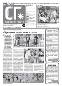 16+ Еженедельная газета Северного района. Основана 20 июля 1935 года ГАЗЕТА ПРОДАЁТСЯ ВО ВСЕХ ПОЧТОВЫХ ОТДЕЛЕНИЯХ РАЙОНА! 21 августа 2024 г. Среда, № 34 (9079) Северная газета ПОГОДА ВСЕ НОВОСТИ НОВОСИБИРСКА И ОБЛАСТИ ИЗ ДОСТОВЕРНЫХ ИСТОЧНИКОВ НА САЙТЕ VN.RU Игровая программа для детей прошла во дворе дома на улице Победы в Северном. Подробности читайте на стр. 2 Ах, лето! МЕЖНАЦИОНАЛЬНОЕ ЕДИНСТВО Фото детской библиотеки 22 августа Ночью: +10. Днем: +20. Малооблачно, небольшой дождь. Ветер южный, 8 м/с. 23 августа Ночью: +13. Днем: +19. Пасмурно, дождь, гроза. Ветер юго-западный, 9 м/с. 24 августа Ночью: +11. Днем: +15. Облачно, дождь. Ветер западный, 10 м/с. 25 августа Ночью: +13. Днем: +17. Пасмурно, дождь. Ветер западный, 8 м/с. 26 августа Ночью: +14. Днем: +21. Пасмурно, небольшой дождь. Ветер западный, 5 м/с. 27 августа Ночью: +12. Днем: +19. Облачно, небольшой дождь. Ветер западный, 8 м/с. 28 августа Ночью: +11. Днем: +17. Ясно. Ветер западный, 12 м/с. «Чуклеме» зовёт всех в гости J На берегу реки Тар- тас в селе Чува- ши 16 августа бы- ло многолюдно и ве- село. Здесь прохо- дил чувашский на- циональный празд- ник урожая, песен и веселья «Чуклеме». Гостей мероприятия ждали концертная программа, чуваш- ская кухня, выстав- ка декоративно-при- кладного творче- ства, фотозоны, игры и конкурсы. На праздник к чувашам были приглашены почет- ные гости: глава Северно- го района Сергей Коросте- лев, председатель Совета де- путатов Северного района Игорь Звыков, помощник депутата Государственной думы Олега Иванинского Сергей Смирнов, замести- тель главы администрации по социальным вопросам Галина Кайгородова, на- чальник отдела культуры, молодежи и спорта админи- страции Северного района Наталья Коростелёва, руко- водитель благотворитель- ного фонда «Тартас» Раи- са Акилина, директор КДЦ Надежда Хлопотова, пред- седатель общества инвали- дов ВалентинаШешегова и почетный работник культу- ры Сергей Осипов. С поздравлениями на праздник приехали твор- ческие коллективы из Биа- зинского, Витинского и Че- баковского СДК. С привет- ственным словом к гостям обратился глава Чувашин- ского сельсовета Николай Краснов. Праздники в Чувашах всегда проходят дружно, весело, по-домашнему. На чувашской земле всег- да рады гостям, и каждому здесь уделяется внимание. На празднике урожая, пе- сен и веселья развлечения были подготовлены на раз- ные возрасты. У чувашей ни один праздник не обхо- дится без хороводов, ведь это символ единения наро- дов. Гости с удовольствием встали в большой хоровод вокруг пшеничного снопа. Также было предложено в рамках традиции праздно- вания испробовать хлеб и квас, приготовленный по старинному рецепту. Со сцены звучали музы- кальные композиции в ис- полнении творческих кол- лективов и солистов домов культуры Северного райо- на. Прозвучало также много песен на чувашском языке. Не оставили без внимания и тему специальной воен- ной операции. Все желающие смогли принять участие в нацио- нальных играх и конкур- сах. Праздник состоялся благодаря участию в кон- курсе проектов ТОСов Се- верного района. На полу- ченные 70 000 рублей бы- ли приобретены шатры и печки с казанами, а также сценическое оформление праздника. Алёна МАТВЕЕВА Уважаемые земляки! Поздравляем вас с Днем Государ- ственного флага Российской Федерации! Бело-сине-красный Государственный флаг, впервые поднятый Петром Великим более трех веков назад, и сегод