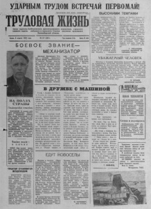 УД А РНЫ М ТРУДОМ ВСТРЕЧАЙ ПЕРВОМАЙ! Пролета рии всех стран, соединяйтесь! ТРУДОВАЯЖИЗНЬ « Орган парткома К уйбыш ев ско го п р ои зв од с тв е н н о го у п р а в л ен и я , городского комитета партии, районного и г ор од с к о г о Советов д еп у та т ов т р у д ящ и х с я Н ово си бирской обла сти В Ы С О К И М И ТЕМПАМИ Среда, 8 апреля 1 9 6 4 года. № 5 7 ( 3 8 1 ) . Год издани я 2 - й . Цен а 2 к о п . Б О Е В О Е З В А Н И Е — шт МЕХАНИЗАТОР Н А П О Л Я Х С Т Р А Н Ы П о д к о р м к а о з и м Ы х ВО РО Н ЕЖ . В южных р а й онах м еханизаторы при ступают к подкормке озимых. Под этими культурами в области з ан ято свыше миллиона гектаров — намного больше, чем в прошлые годы. Самую разнообразную те хнику используют хозяйства на внесении минеральных удобрений. Оборудованы приспособлениями д л я рассев а туков зерновые и свекловичные сеялки . Включаютс я в э ту работу агрегаты, созд ан ны е в сель ски х мастерских. Т а л Ь е водЫ — в п о ч в у О Р Е Л . Как тольк о н ачал та я т ь снег, м еханизаторы совхоза «Рж ав ецкий» вывели на поля б у л ьд о зеры д л я н а р е з ки борозд. Широко р а з в е р н у ли з ад ерж ани е талых вод мех ани заторы совхозов имени XVII п а р т с ъ е з д а , «Ливен- ский», «Тиняковский» и многих других хозяйств . Т Р А К Т О Р СТАНОВИТСЯ ВЕЗДЕ ХО ДОМ Б О Б Р У Й С К (Могилевс к а я область), Массовое производство полугусеничных ходов — специальных приспособлений д л я ко лесных тракторов « Б е л ар у сь » — наладил Б о б руйский завод а в т о т р а к торных деталей. Полугусеничный ход состоит из двух р е зино-к апроновых гусениц. Применение его р е зко повышает ' проходимость машины при работе н а п ер е у вл аж н е н ных и рых лы х почвах, полностью у стр ан яет б уксование колес. Дмитрий Дмитриевич Осипов — лучший тракторист первой фермы Комсомольского совхоза. Трудно подсчитат ь , сколько гектаров земли обработал он н а своей м ашине, сколько п еревез р а з л и ч ных грузов. З а последние годы не было еще сл учая , чтобы т р а к т о р остановился в борозде или вы ш ел из строя в пути. Дмитрий Дмитриевич, прежде чем за пустить мотор, вс егд а проверит его с о сто я ние. Он своевременно и к а чественно проводит технические уходы и ремонты. Надежно подготовил к р а боте м еханизатор свой тягач и нынче. Вместе с другими его тр а к т ор давно готов к полевым работам. З а добросовестный тр уд и обра зцовое содержание те хники Д. Д. Осипов а уважают односельчане и дирекци я совхоза . Почти ежегодно, когда бригадир уходит в отпуск, лучший м ех а н и за тор исполняет его обязанности . На снимке: Д. Д. ОСИПОВ. Фото В. ПОЛЯКОВА, Усилия м еханизаторов Ву- латоцекого с о вхо за н апр авлены сейчас на то, чтобы всесторонне подготовиться к весеннему севу. На ремонт в мастерские поступили последние шесть тракторов. Через шесть-восемь дней вся техника будет подготовлена и поставлена на линейку готовности. Ремонт в эти дни в ед ется высокими тем пами. Токари работают в две смены. Лучший и з них Анатолий Попов ежедневно перевыполняет свое задание. Наряду с подготовкой техники и сель хозинвентаря ра бочие большое внимание у д е ляют вывозке сеМян и дове дению их до посевной кондиции. Недавно с четвертой фермы на первую вы ве зл и и очистили от сорняков четы рест а центнеров пшеницы. Кроме того, трактористы и шоферы приступили к тр ан с портировке семенного м ат е р и ал а из хлебоприемного пункта. Им предстоит д оставить на фермы в порядке обм