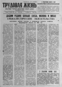 Пролетарии всех стран, соединяйтесь! ТРУДОВАЯЖИЗНЬ Орган парткома Куйбышевского производственного у правл ен ия , городского комитета картин, районного н городского Советов депутатов труд ящ их ся Н овосибирской области Вторник, 14 апреля 1 9 6 4 года. № 6 0 ( 3 8 4 ) . Год издания 2 -й . Цена 2 коп. О ПРДЕСТОЯЩЕМ ВИЗИТЕ В СССР ПОЛЬСКОЙПАРТИЙНО-ПРАВИТЕЛЬСТВЕННОЙДЕЛЕГАЦИИ По 'приглашению ЦК КПСС и Советского правительства на днях в Советский Союз с официальным дружеским визитом прибывает партийно-правительственная делегация Польской Народной Республики, возглавляемая Первым секретарем Центрального Комитета Польской объединенной рабочей партии товарищем Владиславом Гомулкой и Председателем Совета Министров Польской Народной Республики товарищем Юзефом Циранкевичем. ДАДИМ РОДИНЕ БОЛЬШЕ ХЛЕБА, МОЛОКА И МЯСА! С О Ц И А Л И С Т И Ч Е С К И Е О Б Я З А Т Е Л Ь С Т В А колхозников, рабочих со в хо зо в и специалистов сельско го хоз я й с т в а Новосибирской области на 1964 год Колхозники, рабочие совхозов и специалисты сельского хозя йства нашей области настойчиво трудятся над осуществлением величественных планов строительства коммунизма, выработанных XXII съе зд ом Коммунистической партии. Реш ени я декабрьского Пленума ЦК КПСС об ускоренном развитии химической промышленности и р е з ком увеличении производства •чййщеральпых удобрений, постановление февральского Пленума ЦК об интенсификации сельскохозяйственного производства на основе широкого применения удобрений, развития орошения, комплексной механизации и внедрения достижений науки и передового опыта восприняты труж е никами с е л а как боевая программа борьбы з а получение максимального количества продукции с каждого гектара земли при наименьших з а тратах труда и средств , за мощный подъем общественного животноводства. Стремясь внести свой весомый вк лад в выполнение постановлений декабрьского и февральского Пленумов ЦК КПСС, а такж е практических задач, поставленных в д о кл а де товарища Н. С. Хрущева на совещании руководящих ц|рП>тников партийных, совет- Clft'ix и сельскохозяйственных органов 2 8 ф ев р а ля 1964 г., мы, работники сельског о хозя йства области, приняли на себя о б я зател ь ст в а на 1964 Г О Д . ПО ПОЛЕВОДСТВУ Колхозники, рабочие совхозов, специалисты сельского хозяйства ставят перед собой задачу резко повысить ку л ь туру земледелия, на основе широкого применения удобре ний и внедрения в производство достижений науки и передового опыта обеспечить в этом году получение урожая зерновых в среднем по области не менее 12 центнеров с гектара, довести валовой сбор зерна до 2 0 0 миллионов пудов, продать государству 95 миллионов пудов хлеба. Трудящиеся Новосибирского производственного колхозно-совхозного управления решили получить по 15 центнеров зер на с гектара, дать Родине 5,5 миллиона пудов хлеба — на один миллион пудов больше плана. Колхозы «Новая жизнь», «Сибирь», имени Ленина этого управления борются за то, чтобы собрать по 20 центнеров зерна с каждого гектара. Искнтимские хлеборобы дали слово получить не менее 14 — 15 центнеров зерна с гектара, чулымские и каргатские — не менее 1 3 — 14 центнеров. Мы планируем собрать с гек тар а по 2 5 0 — 300 центне ров зеленой массы кукуруз!.:, по 120 — картофеля, по 115 — овощей, по 1 5 0 —сахарной свеклы. Продадим нынче государству 125 тысяч тонн картофеля 