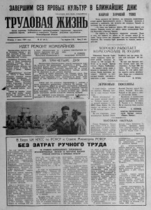 ЗАВЕРШИМ СЕВ ЯРОВЫХ КУЛЬТУР В БЛИЖАЙШИЕ ДНИ! Прол етарии всех стран, соединяйтесь! Т Р У Д О В А Я Ж И З Н Ь Орган парткома Куйбыш евского п р ои звод ств енн ого у правл ен ия , городского комитета партии, районного н городского Советов д е путатов т р у д ящ и х с я Новосибирской области В т о рн и к , 2 июня 1 9 6 4 года. № 87 ( 4 1 1 ) . Год издания 3 - й . Цена 2 ко п . НАБРАН ХОРОШИЙ ТЕМП Когда ко н чи л ся сев зерновых, мы попросили управляющего второй фермой Комсомольского совхоза т. Николаева по звонить в редакцию и расска зать , к а к начнется сев к у к у р у з ы . Просьбу он выполнил . Вот что он расска зал; — По плану нам предстоит посеять 3 0 0 ге ктаров . Двести уж е посеяно. Первыми начали эту работу звенья ку к у ру зо в о д ов Ни ка - лая Николаева и Виктора Чернова. Сев ведется на «Беларусях» навесными сеялками, Вчера за день они провели эту работу на 5 4 ге ктар ах вместо 31 по норме. Завтра начнет сев «королевы» еще один звеньевой— В ик тор Кириллов . Вся к у к у р у з а будет размещена на хо роших землях за день-два. ИДЕТ РЕМОНТ КОМБАЙНОВ Механизаторы колхоза имени Калинина наряду с другими горячими делами полным ходом ведут подготовку хлебоуборочной техники. Комбайнер Владимир Андронов со своим помощником Алексеем Рудовым уже отремонтировали два «СК-3». Алексей весной закончил при колхозе курсы и теперь готовится к своему первому сезону. Отремонтировал по-хозяйски «СК-3» и Петр Осипов. Большую, хорошую помощь оказывают комбайнерам токарь Михаил Владимиров, сварщик Павел Стельмах, кузнец Александр Филиппов и другие. Каждый из них на .ремонте перевыполняет нормы, качество работы высокое. Сейчас на линейке готовности стоит восемь машин. Столько же находится в заделе. Ремонтники записали в своих обязательствах: закончись подготовку всех зер новых комбайнов к 15 июня. Приступили механизаторы и к ремонту сеноуборочной техники. Н. СИВЦЕВ, заведующий мастерской. З А Т Р И -Ч Е Т Ы Р Е ДНЯ Механизаторы Комсомольского совхоза повсеместно ведут ■ ■ сев кукурузы. Без промедления включилось в работу звено ■ ■ четвертой фермы, которое возглавляет Александр Иванович ■ ■ Бурматов. Выращивать «королеву» поручили ему не случай- ■ ■но. Он один из опытнейших механизаторов, полтора десятка ■ 5 лет не выпускает из рук рычагов трактора. Нынче за звеном закреплено 150 гектаров земли. Еще ; I зимой на участки было вывезено немало перегноя. Перед при- ; ■бивкой влаги удобрения слоем разровняли по всему полю. ! ! Почву до сева обработали в два следа лущильниками, забо- I яронили. Сейчас идет сев кукурузы. Одновременно с зернами в ; 5 землю высеваются минеральные удобрения. На каждый гек- 5 ■тар механизаторы вносят по двадцать килограммов карбамида, j Вместе с трактористом В. Ивановым звеньевой закончит ! ■сев на всей площади за 3 —4 дня. Дела показывают, что это ■ ■будет выполнено. Только за первую половину дня работы ■ ■двумя агрегатами засеяно кукурузой тридцать гектаров. НА СНИМКЕ: (слева направо) звеньевой А. Бурматов и ■ 5 тракторист В. Иванов на севе пропашных. ■ Фото В. ПОЛЯКОВА . * ХОРОШО РАБОТАЕТ КОМСОМОЛЕЦ Н. ХУДИН Комсомолец Нинолай Худин решил вырастить нынче в ы со кий ур ожай н у к у р у з ы на каждом из 12С ге ктаров . Работает он во второй бригаде колхоза «Память К у й бы ш ев а» . На наждый ге кт а р вывез в среднем по тринадцать тонн перегноя. Землю подготовил к а к следует. Законч