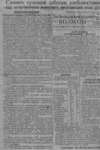 № 6 . 2. . З А Б О Л Ь Ш Е В И С Т С К И Н К О Л Х О З Ы “ „ Р А Б О Т А Т Ь Ч Е С Т Н О В К О Л Х О З Е И Б Е Р ЕЧ Ь К О Л Х О З Н О Е Д О Б Р О “ (с™™.) Р А З В А Л И В А Ю Т Д И С Ц И П Л И Н У тя В цк к о о го лх с о е з л е ьс „ о К з р е а т с а на п я олн з ыве й зд р а“ аз Ова с л дисциплины. Больше того бригадир д 2 т т - а а е й ц й т и т б в ю е р с и жп в г е о р а н е д о щ й ы ти и б в н Мр ы и и к х г о в а а л д л х е е к о в о з к и л о у ч х в л о : а Ф з ц а е . к п х д у , о о ю р р д а а о б г в ж и о е дались облегчения, тут сколько не работай все равно голодом б у д еш ь “ В колхозе ежедневно не выходят нш а е р в аб 1 о б т р у и 1 г 2 а - д 1 е 5 ч б е р л и о г в а е д к и . р Н Г е ла л м у а ч з- д х и о н до п в отМ в а о к р с с и т м вуе и т з е л г о о ды б р р я и м г . а С дык о р н о е выходил на работу два дня и мер к нему не принято. Пред, колхоза т. Ш зуркин делает вид, что не заме чает всех этих безобразий, Не при х р о о д чни а г я ся у у н д а и с вл с я о т р ь в э а я н , а, ч ( т н о а 2 с 0 ено и у ю б л о я план выполнен на 41 проц,), а к хлебоуборке колхоз не готов: 2 са мре о м сб о р н о т с и к р и ов д а о ны с . его времен С и О С н Е е Д о . т О П О Ш Л Я Ю Т С О Ц С О Р Е В Н О В А Н И Е У нас в Федоровском сельсовете колхоз „Красный Коммунар“ (пред седатель Сорокин) посевную про- з н с е а и л х ли х б у л н ж а а г е о од д в н а с р и е я х р : э я с т д е о , я м л н у и а х м р л н е е д о б к г о и н ' х , е п б о у о л р р о о о дился. М е ж д у тем премия за посев иую присуждены пред, сельсовета т. Зайцевым Сорокину—200 рублей. Ему же тов. Зайцев выдал премию 50 рублей якобы _за у с п еш ую моби лм и ом зап д к е юле с э р т е о д т ст к в ол т х о о г з да и , м к е а е к т с н т а ар с о а й задолженности за 1934 г о д -1800 д р е у н б а ле в й. к Пол а х р о о з в е спа п шло к х а о: то пж а е ха п л р и ов н е а 7-8 сантиметров, боронование не п ро р к о и и н зв а о в ди п л р и и , м а ер З . ай С ц к е а в за с т т ь ави н т ич С ег о о н ти ел к ь у зя н , е т л а юк б к и а т к . т. За О й Ч це Е в В И са Д м Е ок Ц р . иК П Р И ЕМ К Е Х Л Е Б А ИЕ Г О Т О В Ы Лодыри пытаются дискредитировать Андронову х к о р з П е а д о и д „ т к Н и у о р л в о а ы ч в й н ат и ь п к у и з т н ь и а “ т л н п о у ыд ю ыта р юи вя т з с и а я з ль д к щ о и и л сцу Андронову, навязывающую по 900 снопов в день. Они говорят, что она навязывает по 900 снопов потому, что ей помогает ее сын. На самом деле сыну Андроновой работа начисляется отдельно- Надо решительно пресечь эти д п р оп о ыно т в к у и . дискредитиро П в А а Н ь И то Ч в Е , В А , нПризвать к порядку Вязальщица Л у к о м с к а я В а р в а ра в к о л х о з е им. Во рош и л о в а Б и а з и н с к о г о с -с о в е т а си стема тически не выполняет нормы. П редупреждения бригадира не слушает и всячески ди скредитирует . Правлению нужно при звать к порядку э т у недисцип лип ирован пую кол х о з ни ц у . Л . Кого обманывают? Председатель правления ар- тел СЦ \ ,П ро гре сс “ Л а в р о в и бри гадир Г р у е н к о в А л е к с е й , чтобы показать с в о ю артель передо в ой в с е н о у б о р к е сознательно преувеличивают количество з а готовленного сена. Например около стога № 92, на касыш- ке записано 22 центнера, а на самом деле в с т о г у будет не более 12 центнеров, также с другими стогами . П - Ж И Й . П Р Е С Е Ч Ь И З В Р А Щ Е Н И Я шну а Пм е о а т с с т я Ц а К н ос о В т в а Кл в е П л н ( я и б т е ) ь м д к и л о ю я лх н о о ь з б с а к р м о аз г о о р в а а п з н р л и е е я семенных фондов сначала молотьбы л р и ст о н в в в о а и п в и н р а р о а м а ц н з е о к м с л у е е о р р ч а х е е т л н н е 2 н о