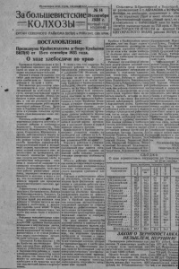П р о л е т а р и и в с е х с т р а н , с о е д и н я е т е с ь ? З а больш евистские —колхозы— № 14 20сентября 1935 г. П Е Р В Ы Й Г О Д И З Д А Н И Я О Р Г А Н С Е В Е Р Н О Г О Р А Й К О М А В Щ б ) и Р И К а ЗАП. СИБ. КРАЯ. С е л ь с о в е т ы : В -К р а с н о я р с к н й и Би а зл й ски й , нх руковод ителей т. т. А Б Р А М О В А и Ф У Ф Ы Ч 1 Сентября по хл ебосдаче , с ки рдованию и обм< ов из п еред овы х с таю т в х в о с т о б о з н ы х сел К раснознаменный к о л х о з „ Н о в ы й п у т ь * , во I р } к о в о д и т е л с м т . Н И Ч К О В Ы М план по хлебо сентября выполнил то льк о на 73,8 нроц . т. Нич п р а в о Г О Р Д О С Т И И Ч Е С Т И на хранение П1 Щ Е Г О К Р А С Н О Г О З Н А М Я райкома В К П ( б ) и П О С Т А Н О В Л Е Н И Е Президиума Крайисполкома и бю ро Крайкома ВКП(б) от 15-го сентября 1935 года . О ходе хлебосдачи по краю П р е з и д и у м К р а й и с п о л к о м а п б ю - | р с ш д о е а н ч К н и р о а п й н о к е о у к м д р о а а в ю л п е р з т и а в з о н с р а е и юн т т т е я л х б ь о р н д ь ы м х с л о и в е . б е р о • П е р в а я и в т о р а я п ятидневки сен т м я п б о р в я х д л а е л б и о с п д о а з ч о и р н п о о е с б н о и л ж ь е ш н е и н е с т т в е у р а й о н о в и по Краю в ц е л ом . у с Э п о т к о о я е н в л н я о е с т т с и я в р е р з у я л д ь е т а п т а о р м т и с й а н м ы о х о р г а н и е а ц и й пр х л е б о с д а ч е в а з - г у с т е , о п п о р т у н и с т и ч е с к о й практн к е п р о т н в о п о с т а в л е н н я у б о р к и х л е б н ле о а н с х д и , а я а ч е р т у а в к к о р в я ж о д д е е я щр к е и о з м л у х и л о ь з т р о а а в т б о о м т и н п и р р к а о а й я м в о и н е к о т о р ы х рай он о в : ( С у з у н , К олы вань н З ы р я н к а ) п о л и т и ч е с к о й еле поты к кул ацким попыткам орглни з б о о в Р с а д а т а й ь ч к и о с . м ры ы в , р в а ы й п и о с л п н о е л н к и о я ь п ^ л Р а й на у п х о л л е н ом о ч ен ны е к о м и т е т а з а г о т о в о к от с т а ю щ и х район ов в о с о б е н н о с т и З ы р я н с к о г о , К о л ы в а н с к о г о , Т а л ь м е н с к о г о , И с к и т и м с к о г о , Р е б р и х н н с к о г о , С у з у н с к о г о , Ю р г и н с к о г о и д р у г и х , д е й с т в и т е л ь н у ю б о р ь б у за в к ы а х п , о в л о н з е в н р и а я т з с а с к у о д н ы а и о з с е д р а н ч у о п н о а с т т у а р в - о п л а А л подменили к а н ц е л я р с к о й , б ю р о к р а т и ч е с к о й игрой в пятидне вны'е з ад ан и я , выполнения п ятидне вн ы х заданий к о л х о з а м и в с ч е т зе р н о п о с т а в о к не п р о в е р я ю т с я , д о с - - н т а ы т х о ч с н р о е г д о с т в к о д л л и я ч в е ы с т в в о а з к и т р а х л н е с п б а о р т в с о о т в е т с т в и и пятидневным ниям в к о л х о з а х не в ы д е л я ю т з с а я д , а и сры в щ и к и п ятидневных заданий о с т а ю т с я безнаказанными , такая прак п ти л к и а н у р , а п б о о р ты о ж д р а а е с т ш э а л т е ы м в е а н е т т ы р д а и С с х ц л и п б н м о о у н в , н я ч т о т с с о я т н п шя в т и и к р д о м н л о е х й в о н з ы а д х е ля и з а в д п е а р д н и е и к т я ры к с т т т и о а я о б п о Р о с а д р й т а и ч у н с е п . и о с л т - к и о ч м е ы с к о и г о ра с й а к м о о м т ы е к Г а о р х н л о е - | ш е р с к о г о , К ы т м а н о в с к о г о , З а л е с к о г о , К о ж е в н и к о в с к о г о , Т о м с к о ю , Т я ж н н с к о г о , А с и н о в с к о г о , р а й он о в д о п у с т и л и целый ряд к о л х о з о в э т и х с р р т ы а у й е п о и н к л о о и л в х к о в З т ы х е л ч с е е д б н а о и л с и и д а а ч м в е е г , н у е с а е т а н 5 н е е п к п р о р о т ц и о . г о д о в о г о плана з е р н о п о с т а в о к , там т г р а в у к б а о х . н а р уш и л и з а к он о з е р н о п о с 1 т е Р т ы а й , о н н ра ы й е ко и м с ып о , л н у и п т о е л л н ь о н м ы о е ч е к н о н м ы и е к о м з а г С 