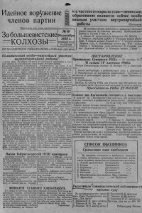 т 16. З А Б О Л Ь Ш Е В И С Т С К И Е К О Л Х О З Ы 2. гМЕДЛ Е Н Н О И С П Р А В И Т Ь О Ш И Б К И Зерно с о б р а т ь с т о к о в - р И в о вр е м я уборки, не в е д е т упор ной настойчивой б орьбы сп о т ер я ми, т о т примеренчески относится к расхищению социалистнчекой с о б с твенности, то т вольно или не воль- пом о тынком вора и о л х о з е „Красный Коммунар* р о в с к о го с-со в . доп ускаю т ся пне потери хл еб а на ток у . Во- т о к а з е р н о р а з б ро сан о , после занин молодьбы е го не убирад с е д а т е л ь к о л х о з а Сорокин н ; к т о р по к а ч е с т в у Карло вич не щают на э г о внимапя. Онн при лись. Ревизионная комнсия в не вы е зж а е т . эта компания т о ч ь в т о ч ь н а п о е г т е х типов, о ко т оры х т . Эй с а з а л : „ т о т к^о д о п у с к а е т поте | В 14 номере г а з е т ы „ З а б о л ьш е вистские к о л х о з ы * в напечатанном постановлении президиума Крайне полкоыа и бюро крайкома ВКП(б) о т 15 сен тября допущены ошибки по вине приемщица радиста. В первом сто л б ц е 3 аб за ц с т р о ки 0-11 напечатано: э т о я вл я е т с я р е з ультатом самоуспокоенности в ряде партийных организаций по 0 п оп р а в к а но-ст ановится ж у л и к о в , ра с хищ аю щ и х к олх о зно е д о б р о * | и кшчлпи.г.« ..*■ П р е д с е д а т е л ю Ф е д о р о в с к о г о с-сов 1хл еб с с д ач н в авГу Сте. С л ед уе т чи- т. З а й ц е в у надо пр инят ь все меры х а ; ьТ э т о я вл я е т с я р е з у л ь т а т о м са к т о м у , чтобы р а зги л ьдяи иемедлс 1моуспок о енно сти в ряде партийных допущенные ош и б - 1 0 рганнуаций итогами хлебосдачи в Е. А. 1 а в г у с т е . С т о л б е ц первый абзац 5 стр ок и 55-59 н апечатано ; А н еко торы е кол нно исправили ки Е л ен а не вы ращ и в ает телят, ГФ кол хо за „КиняцГ При ' “ ..... ~ ” ‘1Г'А р Iхозы сдали менее 5 процентов гошского сельсовета) оярка <а,ча-жс поярка Сеые з Елена не выходит на ра- |Г. Коров и телят бросила фОИЗБОЛредседатель кол хо за Ссме- , этот антиколхозный пос эк Елены не замечает. ► н не замечает, что Елена выращивает колхозных те- , а к ор и т их; не повышает й ко р о в , а понижает; он не / 1М1П1 а М О р И Т д о в о г о плана з е р н оп о с т а в о к тем видит, что йена, став на саботажа играет на руку т о л ь ри е к0ЛХОЗы сдали менее 5 проц. ко кулацким шептунам. год о во го плана з е р н оп о с т а в о к чем Наличие разгильдяйского от грубЬ н арушили закон о зернопос- ношениЯ к колхозному живот- та вк а х . н о в о с тп у 'с о стороны Сечено С т о л б е ц первый, а б з а ц Г, стр ок и НОВОДСТ } ь и т п !б С С6 н апечатано : Не применения ва привело кол хо з к тему, ] этнм колхо зам санкции вытекаю- ю д о в о й план в о сп рои зво д ств а ) ии кз заиона 0 з е р н о п о с т а в к а х , выполнен только на 62 проц. С л е д у е т ч и та ть : Не прнменир Дворы к стойловому верно-1 к этим колхозам санкции вытекаюду на. зиму не готовятсяи. кор иа к дворам не подво. я т е зу напеч а хано: выполнению колхоШ И Ш А . | заы;1 о б я з а т е л ь с т в по н а т у р о п л а т е _ и в о з в р а т у семссуды . С л е д у е т чкГ П г А ' ’Г 5 *а 1 т а т ь : выполнение колхозами об л з а Г д е Ь Ш и О П С Ч А 1 О ] т е л ь с т в 1Ю н ату роп л ат е и в о з з р а - i m y на призывном пункте не п р и н и м а ю т 16 строишь подписку на г а з е т ы и ^ р н а л ы ___ 15 с е н т я б р я по 2 октября С-г., ;одит призыв г р а ж д а н 1913 г. рн писка гр аж д а н рождения -1915 г г . Где еж едневно пребы > на пункт по 150 человек, рн проведений ра бо т а г и тп о с т а ’зы внкхи и допризывники жела по д ни с а т ь т я на г а з е т у , но ра бо сою зпечати сидит у с е б я в оре г р ы з е т орехи г т а м у л ^ т т