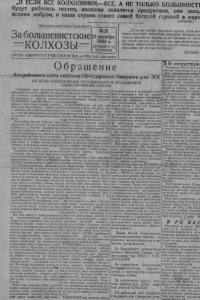 „И ЕСЛИ ВСЕ КОЛ ХО ЗНИКИ ,— ВСЕ, А НЕ ТОЛЬКО БОЛЬШИНСТ! б у д у т работать честно, колхозы завалятся продуктами, они - зава* цепким добром , и наша страна станет самой богатой страной в мире ________ ______________ _ (СТАЛИН.) Проле т арии в с е х с т р а н , с о е д и н я й т е с ь ! . З а б о л ь ш е в и с т с к и е = К О Л Х О З Ы = № 2 1 2 7 октября *1935 г . ПЕРВЫЙ Г О Д ИЗДАНИЯ О Р Г А Н С Е В Е Р Н О Г О РАЙКОМА В КП (б ) и РИКа ЗАП. СИБ. КРАЯ „ Е с л и . в ы хотите укрепить артель, если вы иметь массовое колхозное движение, к о т о р о е дс в а т н т ь миллионы дворов, а не единицы и соти вы э т о го хо ти те добиться,— вы при ныне шних 1 должны обязательно учесть, кроме общих ннтер' х о з н н к о в , их личные интересы“ . (Сталин ) О б р а щ е н и е 3 - г о районного с л е т а к о л х о з н и к о в — у д а р н и к о в С е в е р н о г о р.на З С К КО В С Е М КОЛ ХО ЗНИКАМ , КОЛ ХО ЗН ИЦ АМ И Т Р У Д Я Щ И М С Я ЕДИНОЛИЧНИКАМ РАЙОНА 1 о з ари щм! под р у к о в о д с т в о м к о м му н и с т и ч е с к о й партии, в о г л а в е с в ожд е м т р у д я щ и х с я в с е г о ми ра у ч и т е ле м и д р у г о м великим ( Л АЛИНЫМ рабочий Аяасс и т ру д я щи е с я к р е с т ь я н е с т р а ны с о в е т о в д о б и л и с ь крупне йших побед, к а к в о б л а с ти инду с т риа лиз ации с т р а ны, а т а к - ж е п е ре с т р о йк и с е л ь с к о г о х о з я й с т в а по с о ц и а л и с т ич е с к о му п у т и . П о с т р о е н ы з а в о д ы г и г а н т ы : Дн е прос т рой, М з г н ч т о с т р о й , Кузиецк- с т р о й и т. д . М е л к о е р а з д р о б л е н н о е к р е с т ь я н с к о е х о з я й с т в о в о с новном п е р е в е д е н о на р е л ь с у кру и но г о с о ц и а л и с т и ч е с к о г о х о з я й с т в а с о в х о з ы и к о л х о з ы , с оц и а л к с т и ч е с кий с г р о й в с т р а н е о к о н ч а т е л ь н о победил и на о с н о в е э т о г о разгром д е н о к у л а ч е с т в о к ак к л а с с . Западная с иб и р ь из края к а т ор г и и с сы л к и , под р у к о в о д с т в о м к р а е в о ю к омит е т а партии в о г л а в е ор д е н о н о с ц е в т. т . Э Й Х Е и Г Р Я Д И Н С К О Г О , п р е в р а т ил а с ь в край ф а б рик, з а в о д о в , с о в х о з о в , к о л х о з ов и р о с т а к у л ь т у р ы , на полях края ра б о т а ю т с от ни комбайно в н тыс ячи т р а к т о р о в и ав т омашин . Э т и ре зу- т ь т а т ы не могли не- о к а з а т ь влия пня на раз витие с е л ь с к о г о х о з я й с т в а , т а к о г о о т с т а л о г о района как наш Се в е рный , За последние 2 г о д а в районе, по с е в ны е площади вы росли а полтора раза, к о л и ч е с т в о К Т Ф у в е л и ч и л о с ь в ч е т ы р е раза, в райоп в в е з е н о 17 д в и г а т е л е й и ло к омо б ил е й и 11 ав т омашин , к о л л е к т и в и з а ц и я в о с н о в но м з а в е р ш а е т с я , р а с т е т число у д а р н и к о в , о р га низ ационно х о з я й с т в е н н о к р е п н у т к о л х о з ы . В с е это, в м е с т е с р а з в е р т ы в а н и ем с о ц со р е в но в а н и я о б е с п е ч и л о л у ч ш е чем в прошлом г о д у и з н а ч и т е л ь н о раньше к о н ч и т ь у б о р к у х л е б о в , а с л е д о в а т е л ь н о кол хо з ы и мн о г и е т р у д о в ы е е д ин о л и ч н ые х о з я й с т в а раньше выполнили с с н о в - ь у ю г о с у д а р с т в е н н у ю з а д а ч у — хле б о и о с т а в к и ; по району с ократили падеж ыолодяяка п о ’ отношению к прошлому г о д у в д в а раза, но вы с н л а с ь т я г а к к у л ь т у р е , а в ме с т е с этим у в е л и ч и л а с ь з а б о т а о школ е , у в е ли ч ил а с ь с т о и м о с т ь т р у д о д ня, В м е с т е с этим мы не можем з а б ы в а т ь , ч т о н е к о т о р ы е кол хо з ы „ Пр о л е т а р и й “, „ Се в е р ный п у т ь * им. М о л о т о в а б е з о б р а з но з а т ян у ли у б о р к у х л е б о в , д о п у