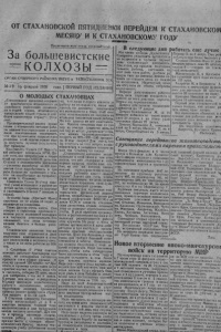 ОТ СТ А Х А Ь О В СК О Й ПЯТИДНЕВКИ ПЕРЕЙДЕМ К СТАХАНОВСКОМ МЕСЯЦУ И К _СТА ХА К О В СК ОМ У Г О Д У За Пролетария всех стран, соединяйтесь! большевистские К О Л Х О З Ы = О Р Г А Н С Е В Е Р Н О Г О Р А Й К О М А ВКП (б ) н Р А Й И С П О Л К О М А З С К № 3 9 I9 февраля 1936 года . | П Е Р В Ы Й Г О Д И З Д А Н И Я О МОЛОДЫХ СТАХАНО ВЦ А Х »Стахановское движение открыла — — ет практическую возможность да мль а н в ей к шашег е о й у с к т р р е а п н л е е , ни в я озм со о ц ж и н а о л с и т з ь превращения кашей страны в паи лб ио П нл ) р е . е ед з в а а ж р и и т т о е ч л н ьн ую ый с а т н р а а л н и у з * . п ( р С и т м а е п ты енн н и аш с и т м а и ха к н о о м в с с о к ми о х л м ьц е а т мод и ов н р м а о б л о о дымп колхозниками показывает, что при правильном подходе к раз решению этой задачи можно всег да получить нужные результаты. Вот примеры: Комсомолец Кулага (17 П э р г с * е 8д) сле р т а о б г о о т , а к е а т к п с р е о н р о а в б о о з т о а м ли М Т в Ф п . ер П е о н мной организации В Л К С М ре ч ьто в . Сталина о стахановском движении —цен ув т е о л в и ( ч с и т л ал вывыра р б а о б т а к ты у ва н т а ь 200 в п т р р о и раза больше по сравнению с тем, чк т а С о а р и е о ч р н и е . н в к ыт о . р в а С б т С а а е т л м ыи е в н н а а л ) (6 до с “ п е р зд ора с б о о в т е тов) умело использует в работе же ребмх маток, сохраняя их здоровье н упитанность (сделал 7 поездок в город). А гусьева Анни (Красный Маяк) получила от 10 коров 13 телят и полностью нх сохранила. Таких фактов очень много. Онн г в о ен во н р омит р о ос с т е е -р к ь о сз л н х о о м зно п й р мои ол зв о о д д еж ст и и в частности комсомольцев. Э г о показывает, что люди начинают меньше болтать и больше рабо та С ть т . ахановское движение так-же получило свое отражение в деле подготовки комсомольцев н мело дых колхозников к весеннему се в у , а также и ко всем работам на 1936 год 1 . СзтДёйкнн (7 с*еэд советов комсорг, работает бригадиром кол хоза, по стахановски готовится провести сев и уборку у р о ж а я . ,Я получу урожай 120 пудов с га* Для »того, я провож у сл ед ующ и е меро приятия: изучил массивы, знаю что и где сеять, собираю 25 цент, золы для удобрения, а так же и навоз. Бригада моя изучит агроправила Н алажу массовую политическую работу с колхозниками, хорошо подготовлю л ош адей , правильно проведу ремонт инвентаря н сбруи . С е в закончу в 13— 14 дней. 2 Стариков (директор Потюкано вск ого масло-завода) „я в 3 м квартале выполню годовой план молокопоставки и дам продукцию завода высшего качества* . Д ля это го я ческую про р в а е б д о у ту ма с ссо к в о у л ю хозн п и ол к и ам ти и , н н п о и р в ч е о ж е д с д к ч е у е ю с - к »с и у е х ч го е б б р у с иг р ч а а л д б е , о н т а н н м и а и к л о а в ж ж у м и а т в с е о л х т о завода._____________________________________ ет, что люди в с е р ь е з взятнсь за р а о о г у по с т а х а н о в с к и , люди кон кретно, по деловому подсчитали все возможности к тому, чтоб наос ново использования их получить на нбольшне показатели своей работы. Нцыо . эт Мо но д г а и л е ек т о ова н р е и в щ с и е к ещом е со д мо о с л и ь х пор не поняли сущ е с т в о д е л а , д о сих пор не могут „смириться* с тем, что можно производительность о п в о . днВ ят Ч ь ем на с 2 е 0 к 0 р —ёт 3 ? 00 Д —л я 500 т п ог ро о ц , е ч н т т о бы ответить на этот вопрос нужно обратиться к указаниям нашего во ждя тов Сталина, он сказал: на „ т С е т л а ь х н а о н о я в э с т к о о й е с д в в я и з жи е в ни т е ом зн о а т м н е о шепни, что оно содержит в себе первы