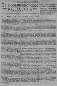 iT p ^ T C i а р и и BLc a ч р с Ш , соединяйтесь! 3a большевистские КОЛХОЗЫ О Р Г А Н С Е В Е Р Н О Г О Р А Й К О М А В К П ( б ) и Р А Й И С П О Л К О М А З С К № 4 2 5 м а р т а 1936 года. | П Е Р Е Ы Й Г О Д И З Д А Н И Я П р и р а й з о органа зован. справочный стол по вопросам полеводства,живо тноводства и про мыслов р а й о н а . Д о стойн о встретить лучших людей колхозного строительства К р а е в ы е партийные и с о в е т с к и е ! Новый о т р я д партийных руководителей получают колхозы организации , по инициативе р у л е - с е в е р н ы х р гй оно з . Ко гда Краево.й комитет партии объявил- на в о г о большевиков Западной С и б н | б о р п а р т о р г о в для поездки ид север , десятки и сотии к о м м у н и с n u rx,', v r i тов выразили готовность борЪться за преобразование С е в е р а . Д е сяти д н евны е к у р сы , проведенные. Крайкомом о тк ры л и пе ред парторгами грандиозные задачи, грандиозные возможности т д с л т я в К п С а а е ж р в д т е и ы р й й а н . о и - з ма е с д с у о щ во и й х и р м з^ е о е т т ы од в но бо ж р е ь л б а е н з и з е, и о с д п н ол у ь м зо ы в с а , л н ь и — е о б ' п о р г а а в дать великое доверие , к о т о р о е оказала партия о т р я д у коммуние тов, посылаемых парторгами крайкома партии в колхозы с е з е р пых районов, каждый из парторгов крайкома имеет немалый опыт партийной работы, но все они понимают, что о б с т а н о в к а новой работы б у д е т с л ож н а , что предстоит решение самых т р у дных з а д а ч . И сознание важности порученного дела , ' с о з н а н и е грандиоз ности поставленных за д а ч , правильное представление о том , что нужно д ел ат ь—залог у с п е ш н о г о выполнения поручений партии. Новый о*тряд посланцев партии вольет новую с т р у ю в к о л х о з ную &изиь С е в е р а , поднимет на более вы сокую с т у п е н ь парти- йную р а б о т у . Привет б о л ь ш е в и с т с к о м у о т р я д у— парторгам Кра йкома В К П ( б ) колхозов С е в е р а ! ри орденоносца тов. Р , И . Э И Х Е про водят о гр о м и ую -р а б о т у по о с в о е нию З ап адн о—ЗнОмрского С е в е р а . С е в е р -бы вш и й при царе местом ссы лки и каторги пр ев р ащ а ет с я ру ками большевиков в богатейший и цветущий С е в е р . « П о инициативе тов , Э И Х Е про водится огромнейшая работа по механизации С ев е р ны х районов. О р г а н и з у ю т с я новые машнко тр ак т с а е р вн н оы й е к с а т м ан па ц н и и и и , в о т р о г м а н ч и и з с у л е е т с к я п о о д на . М Т С в С е в е р н ом районе . В связи с освоением богатств С е в е р а , в том числе и н аш е г о района, а ^ к ж £ - м е х а н и э а ц и я : введение и с — х пр ои з в о д ст в о т р а к т о р о в , ком байнов и др. сложных машин пред я б н в о а л в и а я н е в т ия н п о к е в о р ы в в е у с , юе б м ол о р е ч а е б е р о в т е ын д и с ь о к к к а и м е р р а б а т й о р т о е никам к ол хо зов , т р е б у е т от них пе н р и е ю с т р м о а й шк и н н, вс п е о й в ры а п б о о л т н ы ен п и о ю у у с 4 в а о за е - ннй тов. С Т А Л И Н А о .повышении у р о ж а й н о с т и в ближайшие 3-4 года до 7-8 миллиардов п у д о в , по разве ртыванию с т а х а н о в с к о г о движения . Н а днях прибывают в район посланные партией из п е р е д о вы х к о а х о з о з кр ]я для работы в наших к о л х о з а х в к ач е ст ве парторгов Крайкома В К П ( б ) , п р ед сед ат ели к о л хо з о в и бригадиры . Э т о новое пополнение рядов нашей парторга низации и к о л х о з о в ,& т о отряд пар тийных и не партийных большеви к о в , призванный вм есте с нашей парторганизацией з а ж е ч ь энтузна зм и поднять всю ма ссу колхозни к о в на исключительно боль