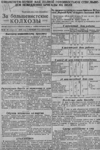 О З Н А М Е Н У Е М П Е Р В О Е М А Я П О Л Н О Й Г О Т О В Н О С Т Ь Ю К С Е В У , В Ы В Е - \ Д Е М Н Е М Е Д Л Е Н Н О Б Р И Г А Д Ы Н А П О Л Я З а П ролетарии всех стран соеденхйтесу б о л ь ш е в и с т с к и е колхозы — О Р Г А Н С Е В Е Р Н О Г О Р А Й К О М А ВКП (б ) и Р А Й И С П О Л К О М А З С К О»* " 1_ - I • & № 49 25 а п р е л я 1936 год а . | П Е Р В Ы Й Г О Д И З Д А Н И Я Из прои зводственного плана бригады № 2 ко; х о з а „В ер ны й П у т ь ” еп период по се вн ой 1936 В с е г о посева 425 га, рабочей силы 92 чел; из них 2~ му> 38 женщин. (см* примечание) Тягло: р абочи х лошадей 36, в о ю в — к о р о в 27. Д о начала м а с с о в о г о с ева , зО апреля пр онзводи т ся пахот на выборочных у ч а с т к а х . 3 мая-первый день работы Навстречу п е р т о ш й с к о м у празднику Накануне велтткого меяедународ иого праздника трудящ ихся— 1-ое мая развернулась большая работа & колхозах по подготовке к прове дению стахановского сев а . Стахановская декада проходящая в колхозах по завершению подго з т т а а о лмв а к , к н о ч л к т х о в о е к з с о о е л в н х н о и и з м н к и о п к л о и х с о е в з в н н э и т ы к о мо м в р п г а о о б к д о а у впервые за время существования б н к о о о л в т с у х к о а з в я о п в од р д г а е о з с в т я е о т р в и н к д у е н л е и к вк с б а е о в л у ь п . ш ок у С а ю т з а а х р л а а а , что колхозники с огромным трудо вым подъемом встречают междуна родный праздник 1-ое мая. В стахановскую декаду призыв к труду прокатился по всем кол хознмкам, они с горячей радостью и любовью принимают на себя о м к б о ы я н з ч в а и ыт т е р ь л а ь б е с г о т о т в к н а и а п в е .о р в т е е л в с ы е и н ч п н н о и л о й н * я с т е в ь в 1 н и 0 о з -1 р а 2 д Пне о й. инициативе колхозников . 6 ой съезд советов* * развернулась боль ‘ шан массово-политическая работа с в у с ж ех де к н о и л юхо п з и н с и ь к м о а в на ра и й м о я на т.т. п Э о И Х о Е б , Г Р Я Д И Н С К О Г О н С Е Р Г Е Е ? А , н ко тором очи за /еряют лучших боль шевикоп Западной С к б н р и , что зад а ч у , поставленную вождем наро дж а ай т ш . е С м Т А б Л уд И у Нщ ЫемМ : 7 д -8 оби м т и ь л с л я и в ар б д л о и в пудов зерна, они выполнят с чес тью,и у ж е в этом году обеспечат урожай не менее 100 пудов зерна с га. Письмо подписано лучшими людьми колхоза—Стаханов нами, го В се к л о ь л с х о о в з е е т н а м. п Т и е с л ь ь м м о ана по С д е п в и е с р а н л о и 75 колхозников и колхозниц, им. Максима Горьк ого—75 человек, .К расный коммунар*—34, „Нацмен пролетарий*—72, .С еверный п у т ь“ з —н а ы и 6 й м 7, к н и „ а П ц У у м ш т е ь н ак “ о—С в т 9 а а 4 ) л — , и „ н 3 В а 4 - * , Т ’— „ а У р 6 д т 5 а а , р с н “ „ и—К к р ( * и а 4—з с 109, „П о б е д и т е л ь * '—44, „С е сер ны й Т а р т а с “ — 35 „Красный охотник“ — 34 человека. При подписывании писем между колхозниками шла оживленная борь ба за право первой подписи, и как правило подписывалнсь п е р е довые люди колхозов. ды Раз с в о е ц р и н а у л в и шст е и е ч с е я ск за ое пер со и р о е д вн д о е в к а а _ - ние между колхозами, бригадами и колхозниками в день обсуждения письма к п о д п и с и е г о е щ е большей с б и е л дыой к и ол у х в о е з р н е и н к н и ост п ь о юдни в м с а в юои т э п т о о соревнование на высшую ступень стахановского движения. Наименование работы Рабоч сил! Тягло Дневная норм; ■........... - - - ■ ■ . . — — — ■ 1 Д Г . С О П б И п и р |М Уж |Ж ек ; Лощ> Вол Кср| выработки Пахота на Е ы б о р о ч . у част 14 ' 5 36 2 ! 1,71 га Стилка льна 15 4 75. га Подвозка фур аж а <■ > 4 12 иентн Подвозка горючего 3 Г 8 8 ц е н т н Заготовка лесоматериала 1 1 8 1б кубм 