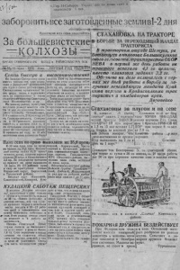 № 55 3 А Б О Л Ь Ш Е В И С Т С К И Е К О Л Х О З Ы П о - б о л ь ш е в и с т с к и р а з в е р н у т ь социалистическое соревнование в севе О х о д е социалист ического соревнова ния на лучш ее проведение весеннего сева (Постановление президиума Северного Р И К а 14 мая) З а рубежей Присоединение Абиссинии к Италии 1. За со в е рш е н н о слабый " р з эв о р о т в е с е н н е г о сева в колхозе „ У к р а и н е ц * , Ичин ск о го с совета и в П р и б е л и н ском .с - с о в е т э , которые хра нят переходящие Красные зна мена р айисполкома предло жить последним Красные зиа мена райисполкома свернуть и предупредить т . т . Т о М А — Щ У К А и В А С И Л Ь Е В А , что если о н и не улучшат раб оту сева переходящие Красные знамена у них будут отобраны и переданы д р у го м у с е л ь с о в е т у и к о л х о з . О к о н ч а т е л ь н о е прнсужде— ние знамени решить по о к о н чанию сева. 2. Установить следующие премии за выполнение и перевыполнение плана сева в сжатые с р о к и с лучшим качеством работы: в). 3 пр мии председателям к о л х о з о в по 100 р у б .— тех к о л х о з о в , которые з а вою ю т право держ а ть пер еходящ ее К р а с н о е знамя р а й и с п о л к о ма а) 4 премии лучшим паха рям, сеяльщ и кам , б о р о н о в о локам , бригадирам, р у к о — водителям секций и д е п у т атских групп по--75 рубв) 10 премий лучшим паха рям, сеяльщикам, б о р о н о в о локам, бригадирам, р у к о водителям секций и депу татских г р у п п - п о 50 р у б . г ) . О б я з а т ь председателей с— с о в е т о в п р о р а б о т а т ь э т о решение среди ш и р о к и х к о л х о з ны х м а с с , мобилизуя их активность на выполне ние и перевыполнение норм в ы р а б о т к и , д о ср очн о е вы пш о и л м не П к н а р и ч е е е д с Р т п в И л о а К м н а а р Д с а е е б в м о а т и ы д с о . л в у ч С е к р е т а р ь К о р о т а е в , А ВОЗ И И ЫНЕ • П о л - м с с я ц а том у назад прицеп к т р а к т о р у — д в у х лемешный п л у г С е в е р н о й М Т С . какими то судьбами оказался сбр ош ен ны м н а д о рогу у деревни П о т ю к ан о в о , в 80 километрах о т централь н й усадьбы М Т С . Д и р е к тор М Т С т о в . П о л я к о в предназначил его для трактор н о г о отряда, р аб о таю щ е го в Б — К у л и к о в с к о м сельсове те, при к о л х о з е „Верный м у т ь " , и предложил председателю э т о г о к о л х о з а т о в . ' Саботажник посев— ной осужден Единоличник по селка М о р о з о в ка , Б и а з и н с к о г о с е л ь совета, П л а т о н о в отказался от уплаты налогов , от плана посева в 193$ году н вал агитацию среди е д и н о личников о б отказе их от посева. Н а р с у д С е в е р н о г о района приговорил г р . Платонова к I году принуд , р а б о т . Ф е д о р о в Ш а л а м о в у его вывезти. Ш а л а м о в отказался, м о т и в и р у я тем, что начался сев и заявил: „вывезу тогда, к о т и кончу с е в “. С л о в о п р е ния по телефону между П о ляковым н Ш ал ам овым , про должаются, яА во з и ныне т а м - . За десять дней посевной э т о т пл у г дал бы минимум 80 га пахоты; но что иоде лаешь , коль тут принцип п р е в о зм о г всякий р а с с у д о к и разум . ____________ 0 школы Л о б а н о в развалил С У Д Ь Б А О Д Н О Й Раб0ТУ ШК0ЛЫ- зан явш и сь , * ' “ ЛПРТОМ Т Е Т Р А Д И ку В л п п е р р е и п о о д да я в н а в т а е р л с ь ки и х ст к о а р н и и и , С е в е р н о й Н С Ш , Я к у б о в ская А . Ф . взяла у ученицы 5 класса З у б о в о й тетрадь по истории для п роверки . П р о ш л о более 4 -х месяцев , но тетрадь по истории д с и х п о р З у б о в о й не возвра щена О . НЕМО. Итальянское правительство приняло решение о пригоедп нении Абиссинии к Италии. Ти