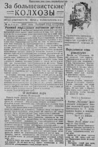 К? 6> З А Б О Л Ь Ш Е В И С Т С К ц Р К О Л X 0 3 ы ПО Б О Е В О М У ПР О В Е Д Е М С Т А Х А Н 0 В С *П Е Р Е В Ы Б О Р Ы В К У Ю Д Е К А Д У М А С Л О Д Е Л И Я Основной задачей прозоли мой стахановской декады по молочной промышленности яв ляется; борьба за досрочное вы полнение и перевыполнение плана молокопоставок, внепла нового закупа молока по кон венцнонным ценам и за даль нейшее укрепление молочной н маслодельной промышлеи мо Р с а т й и маслопром >м на декаду даны следу о и п я задания,: за готовить планового м>ю<а 2709 ц. закупить молок" по конвенционным ценам 900 цеп г.« выробатать масла 1Ы) ц „ с на чеством не ниже 95 баллов., снизнтыютерю жира в обраге до 0,02 проц. Дл я выполнения этой задачи в период декады и на иисзе дующие время МТФ. колхо зов должны для мо юч ног о ско отвести лучи не пастбищные участки, водопои и оргзнию вать к ^ .т л о с у г о ч |ую пас "ь бу молочного с к о т а , приме нить юицент[ мрованнье кор I ма и перейти на трехкратную дойку. Директора м —заводов дат жиы донести д о МТф. с у т о ч ные задзчия молокосд;ча Сводкз Г ыполнения молокопос таиок по с-советам на I ию ия 36 г. в процент? -. I Путем развертывания маг со вой работы довести до созна I ния каждого кглхозняка, зад:) чн постачленны; т. Микояном, в е т о п р г г а э е и мобилизовать колхозников на борьбу за вы полиенис этих задач. Налимов Грлкдз щевскьй 42,4 Н-Елязаровсюгй 37,8 Ь-Куликовсккй 34,5 П гкульекчй 4 1 Тычннсхий 33,7 Северный 23,2 ПрибелннсккЙ 32,9 Назаро.вский о. ,8 Н-Троинкнй 31,3 ЧувашннскиЙ 31,1 Федоровский 29.6 Остяцкий 29,5 ОстанккскпА 28,2 Потюкановскнй 27,2 Бмаэинский 25,5 ЧебакоаскпЙ 24,1 П*Красковрский и , 2 М-КарагзевскиА 15 Дуплипский и И т о г о 29,6 Малолеткин нарушает устав с -х о з артели Председатель с-х артели им, Сталина, Остяцкого с-совета, Малолеткин А . Е . грубо пару— шает устав с-х артели, а зав. Мга Т е М Фт о . л К ол он ет д к р и а н шк б и е н з е в м ед у ом п а о , м о о б щего собрания колхозников променял своему родственнику Букареву из колхозного стада корову. Причем отда У л под м л о и л т о о — дую, более лучшую, а взял ста рую. Кроме этого,не зная как снабдить Букарева карто фелем из колхоза, Малолеткин дал в придачу 1 центнер кар гофеля. Ревкомнссия должна с в т м а е в ши а т т ь ьс М я ал в ол э е т т о кин д а ел с о нро и си з т а ь разрешение общего собрания на подобного род абмены и . Ж А Н - О С О Х В И А Х И М Е По ре я е ы ю краевого кода тета ВКП(б) по краю проходи? отчетно—-перевыборная кампа кня осовских организаций. По нашему райо<у огчетно-гтнре- выборная кампания проходила с 25 мая но ! е ию м 36 г.,а районнаг конференция созывает ся на 25 июн я .36 г . К этой важнейшей полить ческой к а т а н и и все член)* осоавиахима и трудящиеся ко.? хозннкн нашего района дол ж ны отнестись но серьезному: Очистить осоавняхнмовскне организации от нсеспособиых руководителей,заменить их л у ч цими членами осоаэиахима. Сейчас развернуть широко мае совую работу военных к р у ж — к° вгто*аннзоиать САачи ииР* Провести посев га фонда обороны в каждом кол козе, Ли квидировать задолженность по членским взносам, и пол нять работу в районе по осов нахимовским первичным орга низациям на уровень эалач политики парти и правитель ства и быть готовыми в лю бую минуту стать на защиту социалистической Мо р с о п д а и н н о ы в Письмо в редакцию С меня за 1935 год сняли 1и* трудодней и куда я не обращался нигде не могу добиться по какой причине их сняли, а это г с о дел к 