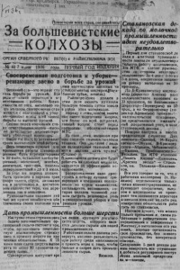 изпятРп1р0 , , Р |К‘ ¿правлению но делам издательств * 1 экз э ■ j . '■ ♦ . л iH , к , * П р олетарии в с е х с т р а н , с о е дяняйтесь! За большевистские К О Л Х О З Ы ■■■и ■ О Р Г А Н С Е В Е Р Н О Г О Р К ВКП(б) и Р А Й И С П О Л К О М А З С К № 62 Ги^ня' 1936 года. ПГРВЫЙ Своевременная подготовка к уборке— решающее звено в бор ьбе за урожай \иым количеством запасных ча Весенний сев— зто первая с т у 1стей(ссгменты| шестеркиДбара- т:ень борьбы за ур о ж а й . В л е ’ банные з у б ь я , железо .) р ели—-■ самая серьезная и от* Райпотребсоюз ветственная работа. Взвей- этом доле с шн имо к с о т л и хо о з т ы то с г в о о , ев н р а е с м к е о н л н ь о ко сп н р а а вляются с подготовкой* к убор* чке~*зависит исход всей нашей борьбы за высокий у р о ж а й . и в к т а о ( т Э о ь Д т к в а ч у е ч б а т е о с с с р т т п о в в е ч е е р н н н е ы н н д й а о я ко и з о л а н т * д в р и а е е в ч н м а а т о м— а н р и в т ь ыи . с т р с о о о Б ю р о К \ БлМ^О) установило сроки выполнения этой р а б о т у . В е с ь инвентарь нужный для проведения работы (сенокоса) д олж ен Лить огреягслглфоваи к ро 2 ч 0 ныиюй; ня, м о о с л т о а т л и ь л н к о и й , х л ж е н б е о й у к б и о , д ви г ат ел и , т р а к т о р а , поделка зерноуловителей и др к ) июля. За этот ж е период доджей быть приведен в порядок тран £порт телеги, сбруи , автомашн в к н я ыо н Р м н у и к а к о я о з л в а и о т г д ч а о к т е и с о т т и в е в л л м е е я н е м т ш а а к к р в о о а л в , а х д к я о о а . з к с о т в д а т е с о р е ч е й ч а с ж е нужно позаботится обе ‘свечением с в о и х колхозов нуж должен в оказать к олх о з ам большую помошь путей завоза в район этих материалов. Нвр сд у с э т и м ,о с о б о е знааче пие имеет подготовка кадров , тем более с о всей о с т р о т о й , данный вопрос стоит перед колхозами обслуживаемыми М ТН С а . ноля этих колхозов при шла сложная с о з н а л л с г и ч е с к з я техника. Она „во главе с людь жми ет о я вла д де а в т ш ; н и а ми д т а е т хн ь ик ч о у й д е с м а о * (Сталин) Щ В зависимости от того кто будет работать на сложных нашли а х , находится их эффект ивное нс* пользование. т в у е В р п е и с н с т п н ь р ы о к х м о е и т д б н л о о е р е н д у и а я л н у н ч н ы ша х д и о к х ол п п х р р о и о з с ников на курсы машинистов, т н ж о о н р с ы иы л е с ь ы що г в и р л к а а о т д в ь е , в в р е е т с ш е о х а в ню щ и щ и к к у о о юй в, д р о о к л л о ь в ра с н в е о н е и в и ре у м р е о н жн а о я й . уб о р к е и с о х Д а т ь промышленности больше шерсти Наступил сезон стрижки овец ~ ------- Задача заготовительных ор ганизаний с ельпо состоит в том, ч т т н о у б ю ы к о о р л га л н ек и т з и ов в а н т у ь ю п с о т в р с и емж е к с у Овец и приемку шерсти по вру чеиным обязательствам. К 15 нюня план сдачи шерсти вымол д н о и О в ть о д г н н о о е в п р м л е е а м н н е е а н е . н 8 о 0 н п а р с о т ц у е п н а т е о т в в г р о е Ст а ха н о в ск а я декада по молочной промышленности идет неудовлетворительно , Периые дчн стахан о в ской де кады в молочкой промышле » ности показали неудовлетворл тельную работу маслозаводов, Зав М Т Ф и слабое рукадод ство со стороны некоторые сельсоеетоп. За 4 дня с 1-Го п о 5-е июня, оперативное задание ио району выполнено на 34 процента. во Пду о ( Б д - и К р у е л к и т к о о р вс А к н ом ох у ин м ) асл п о л з л а .ч молокопоставок вы полней ка ЗЭ процентов, по Бназняскому (директор—Переверзев) на 5?> р п е р к оц го ., р а А п ф о ои Ф ас е ь д е о в р ) ов п с р к о о я м в у ля ( г д т и - наплевагельское отношение , (не представляется ежеднев , 