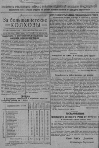 Е в ъ ^ * 1 ш ъ . « г ^ г 1 ь Е м м а а д о ^ ^ ОБЕСПЕЧИТЬ ПОСТУПЛЕНИЕ СРЕДСТВ ПО ЗАЙМУ ПЕ РВЫ Х ВЗНОСОВ ОТ КАЖДОГО ПОДПИСЧИКА Пролетарии всех стран,соединяйтесь! ¡ШИРЕ Р А З В Е Р Н У Т Ь М А ССОЗЗ-РАЗ ЙСНИТЕЛЬНУЮ РАБОТУ. За большевистские = К О Л Х О З Ы ~ О Р Г А Н С К В Е Р Н О Г О Р К ВКП(б) и Р А Й И С П О Л К О М А з е к № 68 20 июля 1936 гола. В Т О Р О Й Г О Д И З Д А Н И Я покончить с отставанием,безусловно выполнить план сеноуборки Д о начала хлебоуборки остались I вет организовал действительно считанные дни. к этому времени должно б ь г ь закончена сеноуборка с ] 00 проц. выполнением плана, каждым -колхозоми единоличным хозяйством. Безобразно убийственные показа тели в сеноуборке, создали серьез ную угрозу для животноводства ш в е р Ч г я то д о е р д а у й к мо о ан л ю х а, о т зо р в уко и во с д - и со т в е е л т и ов кол н х а о •зов ; Прибелинского, Назаровского, Ч у ваши некого, Дуил инекого, Чебак овского и остяцкого с -со ветов , их руководители председатели с-сове тов , к ою ры е на* 15 июля посущес- ■тву к сеноуборке не приступили, выполнили план по сенокошению только на 13—17 проц. когда они начнут косить -по настоящему. Ко го с«н ж дут , что им не достает? Отдельные руководители колхо зов: пр ед сед а тел и , бригалиры ста ли на путь саботажа , выполнили план по сенокошению: им. Гридин ского 3,7 нроц. им. Крупской 11,4 прои., «Единый путь“ 10,3, „Сев- з ар я “ 12,7 проц.. „7 с ъ е з д ‘советов 14,4 проц. и др. . Н е лучше дело обстоит е уборкой скошейиого сена, из 10955 га выко шейной площади, застоговано толь нк н о оые с с к н5 о 9 а л 9 ч х 0 а о л з г а ы а с и и е л м н и . о Г к 5 р о 7 я с ,2 д а, и п н р а ск о о ц о г . о тд уб е „1 л р 6 ь а - рой« „Единый п у т ь“ Е л ди инни ст о в д енн но о го Н г - е Е к л т н а з р а а н р . е ов з ск ас и т й ог с о .- в со ал б п о ио л л с ь н т шиил ч е е в п с и к л с а о т н с е ку пж „ о юив р о с а т е б нн о о о т в к у о о дш з с а е т н в и с о о ю , ц в и ын а а 43,8 проц. при средне-районном выполнении 20,5 проц, у них нет ни одного к-за выполнившего план менее 40 проц, Он дал прирост' зз пра я З й т а и онд Н нн —о е мв Е к л у п и р з 1 и а 5 р р о о п в ст р ск е о и ц м . 7 с п п е р р л и о ь ц с с . о р в е е д т н ом е подтягиваются колхозы „В -п ут ь “ выполнил план на 38 проц. и к „Яо О з в г с б о к р - о а с г з о о ц б ы а с н .- * с п . е н р а ед 7 о 2 вы п х роц к . ол Б х . о - К зо у з ли е частности Н-ЕлизаровскогоС.-с. не оставляют для оппортунистов ш. какого козыря в оправдание про вала сеноуборки. Партийные,советские организа цин; руководители колхозов, РА Й 3 0 должны сделать для себя вы вод; если они дальше будут про должать, провяливать сеноуборк\ то вышестоящие руководящие ор г пи е мя н т ы п д е а р и л с ь о с ша н м а е и ль т н к а о к о о л п г х р о о и з р н д у е и т к к с о и я во н о д е т с в т п е в о ч а т а е т р ь за исход сеноуборочной, ва соцна диетическое животноводство. Каждый руководитель колхоз и колхозник должны знать, что он;, обязаны обеспечить скот кормам? на весь стойловый период, н. только общественно—колхозный, »о и весь скот личного пользова ння колхозников. н за и ц и ия е И р с з е к а д й л с м ют а в чи д п т о о е л л з ж ч а н н й а о му б п ны о а з т шо ь р е н го з о а е к р о о а н й т ч с о т е н а н а в а . а , Пн о и м - е с ы о в с ж т р е о е я а н в л ыи и юп за о ц л н и н а и ил 1 и 5 и з и а пюд о л а с я н т и у р е п еа л л е н и а 65 проц. и последняя пятидневка дала рост только 24 прок, работа по поступлении средств на заем совершенно не развернута. др. в нд е е о н