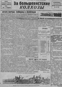 л 1 ООСЛ х г ш и и п , О и е и и Н Н Ш П е С Ь 1 Г а з е т а С е в е р н о г о Р а й н о к а В К П ( б ) и Р а й и с п о л к о м а . З С К с. С е в е р н о е За большевистские В О С К Р Е С Е Н Ь Е 23 а в г у с т а 1536 г В т о р о й г о д и з д а н и я № 44 (74) В Р А Г И НАРОД А ПОЙМАНЫ С ПОЛИЧНЫМ М ы п у б л и к у е м с е годня сообщение п рок урат уры С С С Р о передаче на рассмотрени е военной ко ллеги и В е р л овного с у д а С С С Р дела Зиновьева , К а м е н е в а , Ев до ким ов а , См ирнова И . П . , Б а к а е в а , М р а ч к с в с к о г о , Тер- - Ч а г а м я ц а , Г о л ь ц м а к а , Р е и н г ол ь о а , * Н и к е л я и д р у г и х п о обвинению в о р г а н и з а ци и р я д а террористических кактов против р уководителей В К П ( б ) ‘ и советского государства . Следствием у с т а н о в л е н о , что в 1932 г. п о у к а з а н и я м Л . Тройного, н а х о д ящ е г о с я заграниц ей , и З ц н о в ь ва был организован т р о ц к и ш с к о— зиновьевский б л о к . Е г о единственн о й о сновой п о с л уж и л индивидуаль н и й террор. В его состав вошли р у ководители ра збит ой вдребезги бывшей т р о цкист ской и зиновьевс- к о й о пп о з ици и , в том числе З и н о в ь ев, Кам енев , Евдокимов , Бакаев , И . Н . С м ир н о в , М р а ч к о в с к и й , Тер-Ваган я н , и др . П о д р уководством обведи н енного центра этого блока был подготовл ен р я д террорист ических актов. П о непосредственным у к а з а ниям Троцкого и Зиновьева было п одготовл ено и осуществлено 1 декабря 1 9 4 г. з лодейское уб ий ст во С е р г е я М и р о н о в и ч а К и р о ва , л Троцчистско -зиновьесские террори стические г р у п пы , действующие в С С С Р п о прямым у к а з а н и я м Троц кого , были в 1916 г о д у раскрыты Н а р о д ны м комиссариатом внутрен | н и х дел С С С Р . Г С ледствие выяснило всю картину чудовищного заговора против жиз- . ни р уководит ел ей коммунистичес ’ к о й партии и советской страны. В открытом зас еда ни и с у д а перед всем миром, п р ест упники да д ут ответ з а свои подлые дела и п о н е сут з а с л уж е н н у ю к а р у . ' С гл убоким , яростным негодованием у з н а е т вся С о вет ск а я страна, весь международный пролетариат о н о вы х п р е с т у п л е н и я х п о д л ы х вы р о дк о в , чьи имена давн о вкушают отвращение всем честным трудящи. мис.я. К о л и ч е ст ве н н о о н и ничтожны. Э т о — п р ез р е н н а я горсть о б ан к р о т ивш и хся , и з о л г а вш и х ся , опустив ш и х с я н а (а м о е д н о лю д ей , не имеющей н и к а к о й опоры в стране, не п р ед ст а вл яющ и х ник о го , кроме с а м и х себя . Э т о в п ол н ом смысле ело ва мразь. П о о н и о п а с н ы , к а к гады, которые не знают н и к а к и х пределов в п ол ь зовании самыми подлыми средствами н а п а д е н и я из-за у г л а , гн уснейшего двуруш ничества, отвратитель ной маскировки. Э т о м у политичес к ом у ничтож е-тву, вооруженному средствами террора, у д а л о с ь у б и т ь о дн о г о из л у ч ш и х люд ей страны, п л ам е н н о го больш евика , обаятельн о го человека, любим ого всеми С е р ' гея М и р о н о в и ч а К и р о ва . Н и т и п о д л о г о заговора т я н у л и с ь от у б и й ц ы к З и н о в ь е в у . Кам ен ев у , Б а к а ев у и др . из эт о й же презренной банды. О н и были в течение р я да лет источник ом в с е х п о д п о л ь н ы х по к уш е н и й н а единство партии и на ее р у к о в о д ст в о . О н и е сли не у ст ан н у ю травлю вождей, воспитывая и разж и гая лю т ую з л о б у к ним сред и всего троцкистско -зиновьевского о х в о ст ь я . О н и насаж дали в своей среде методы и приемы провдкатор с к о й игры, п о д л о г о двурушничества, маскиров